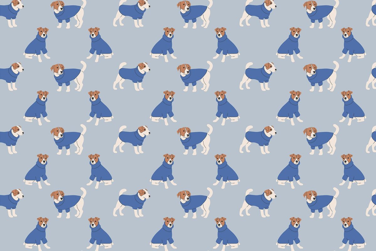 Fototapete: Niedliche Welpen auf blauem Hintergrund Kindermuster