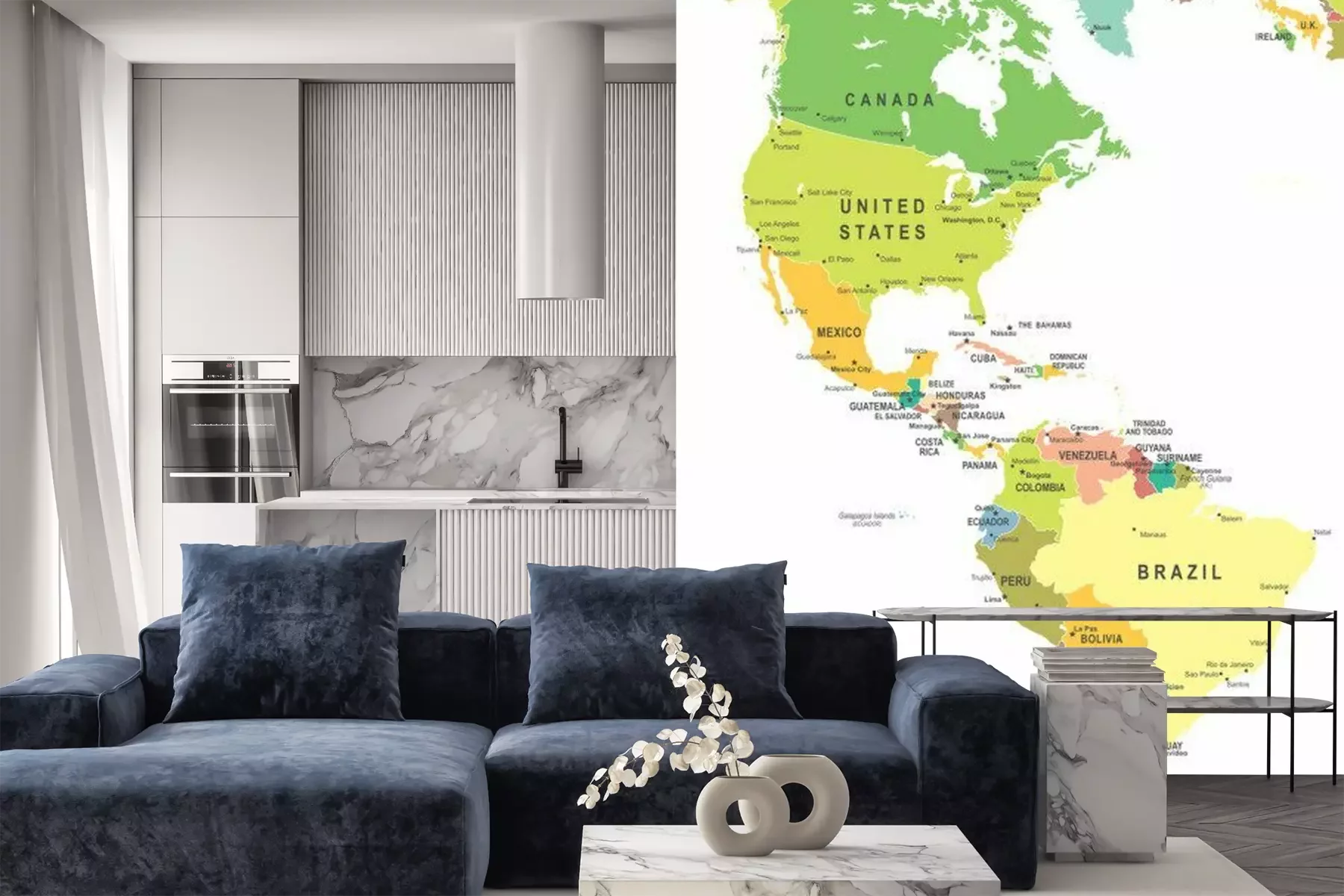 Weltkarte mit Ländernamen in PastellfarbenFototapete