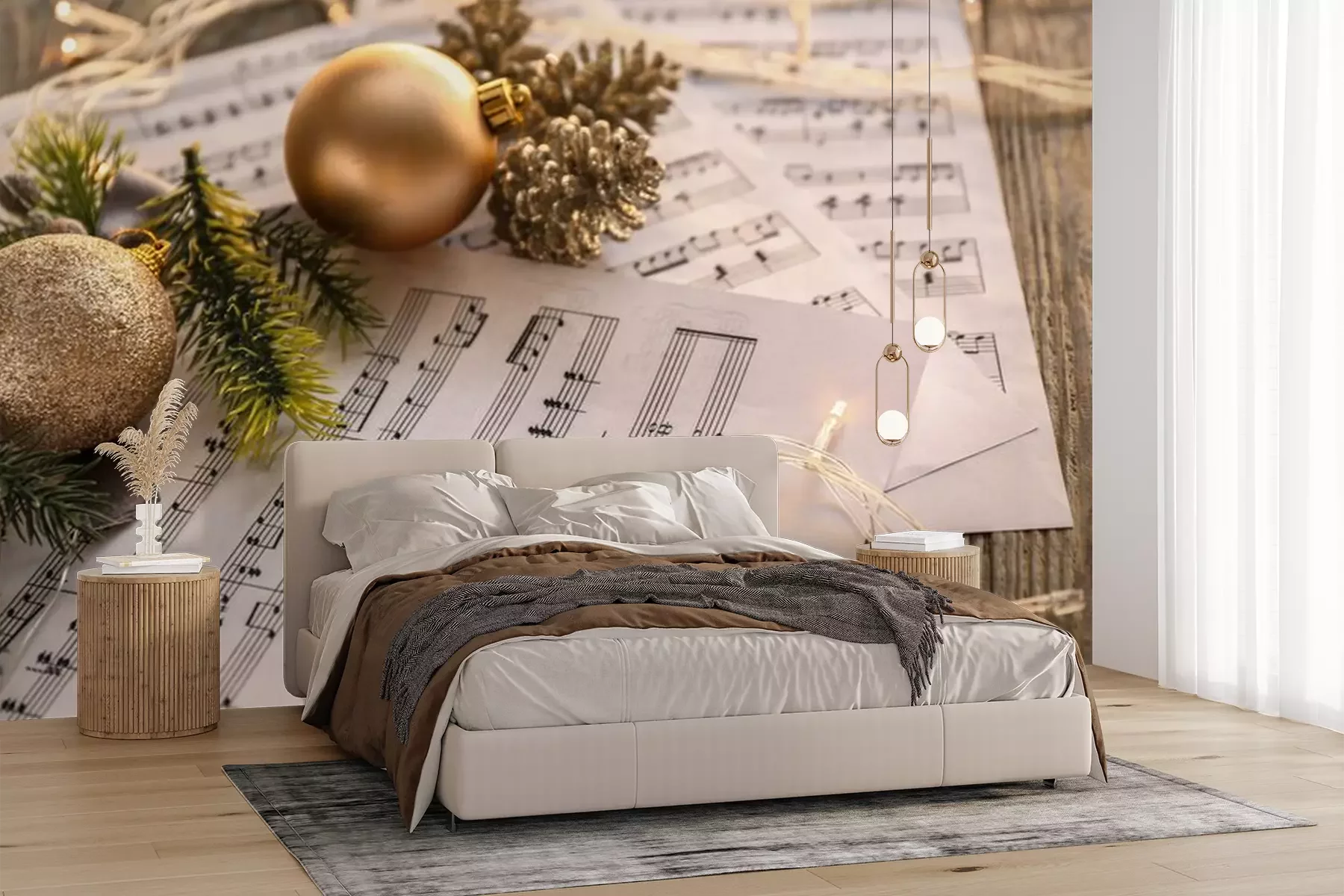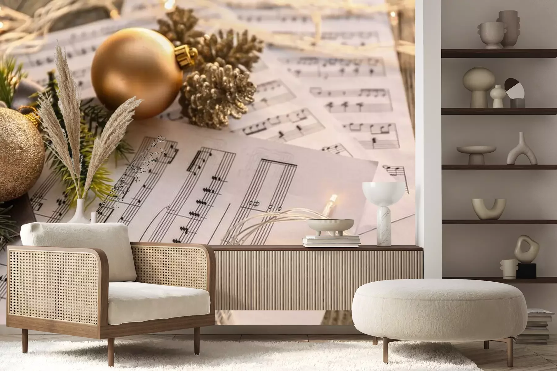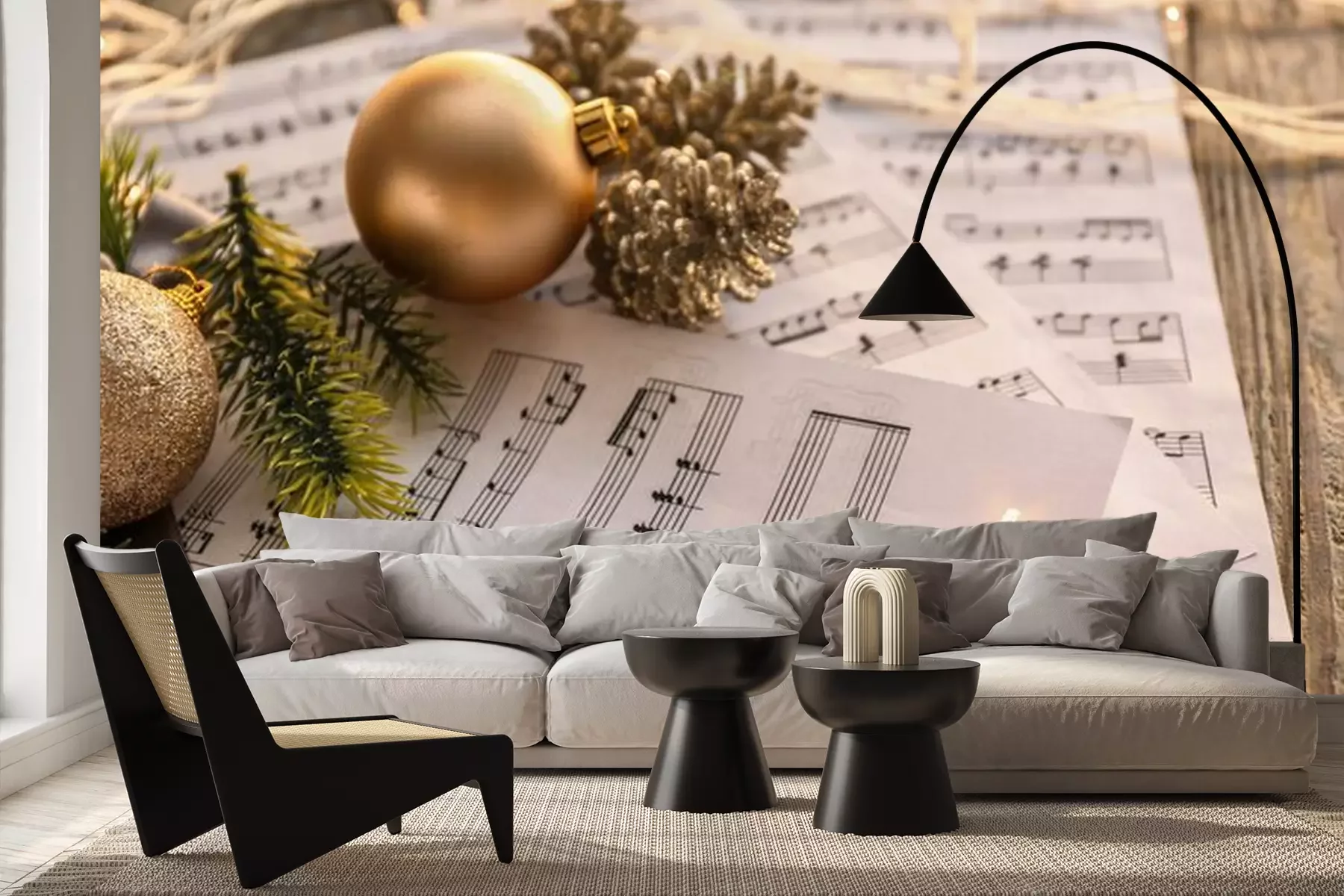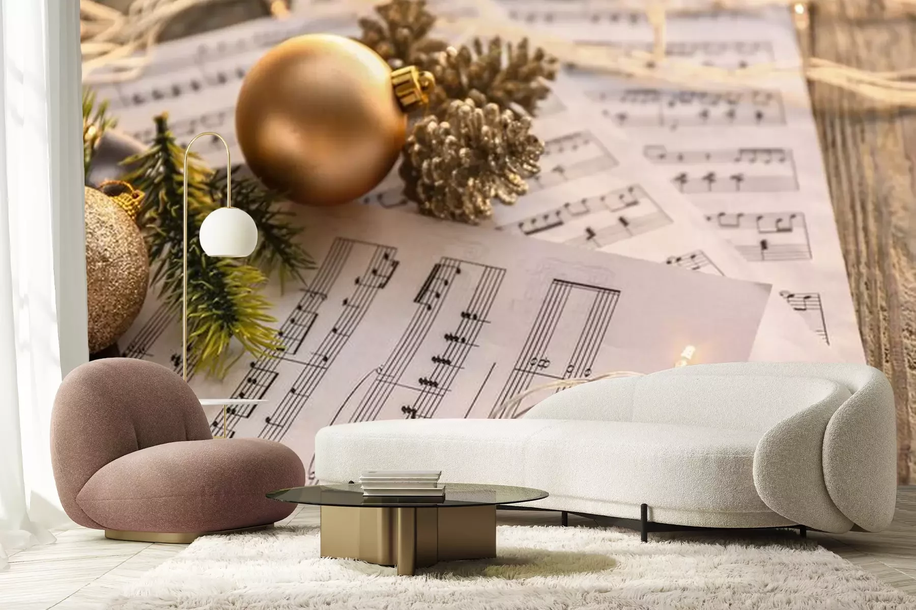 Fototapete Noten und Weihnachtsschmuck