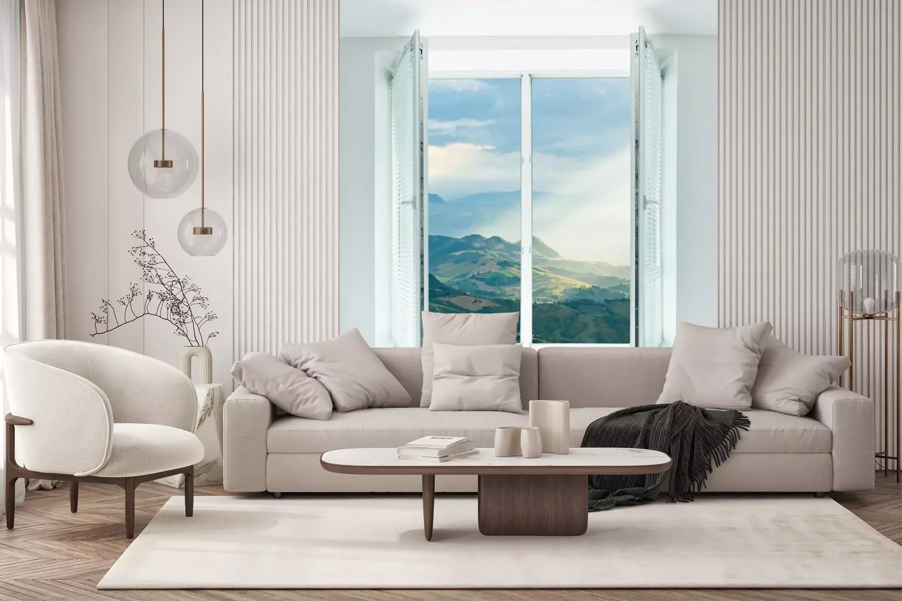 Die Fototapeten werden in Bahnen geliefert. Die Größe und die Anzahl der Bahnen, aus denen die gesamte Fototapete besteht, hängen vom gewählten Material ab. Wenn die Größe die maximale Breite des Materials überschreitet, besteht der Ausdruck aus mehreren gleich großen Bahnen.