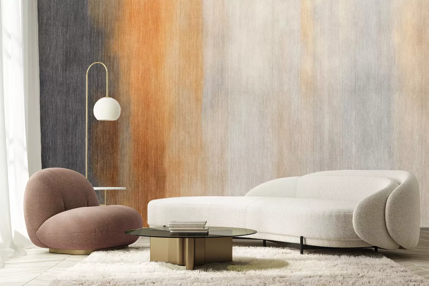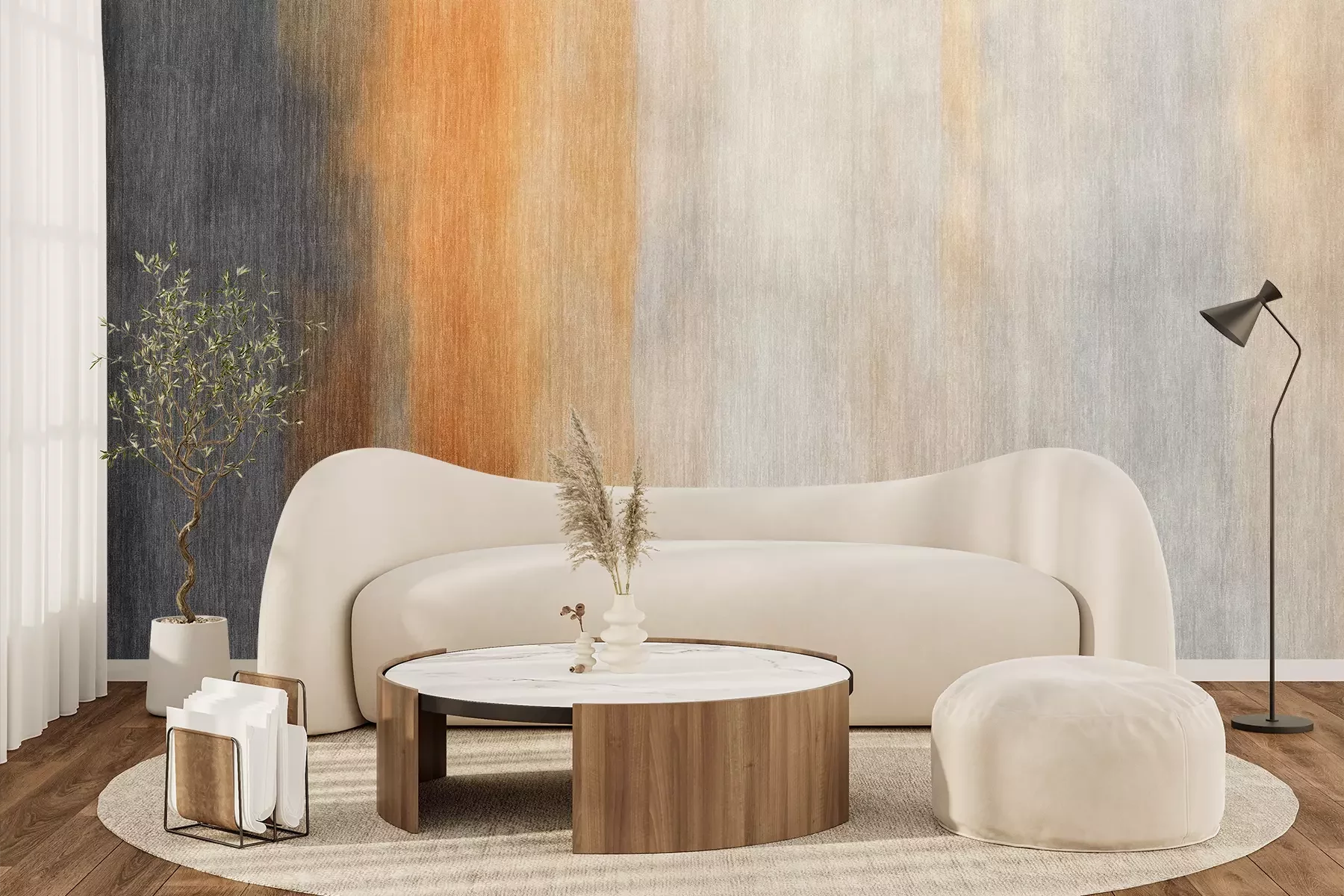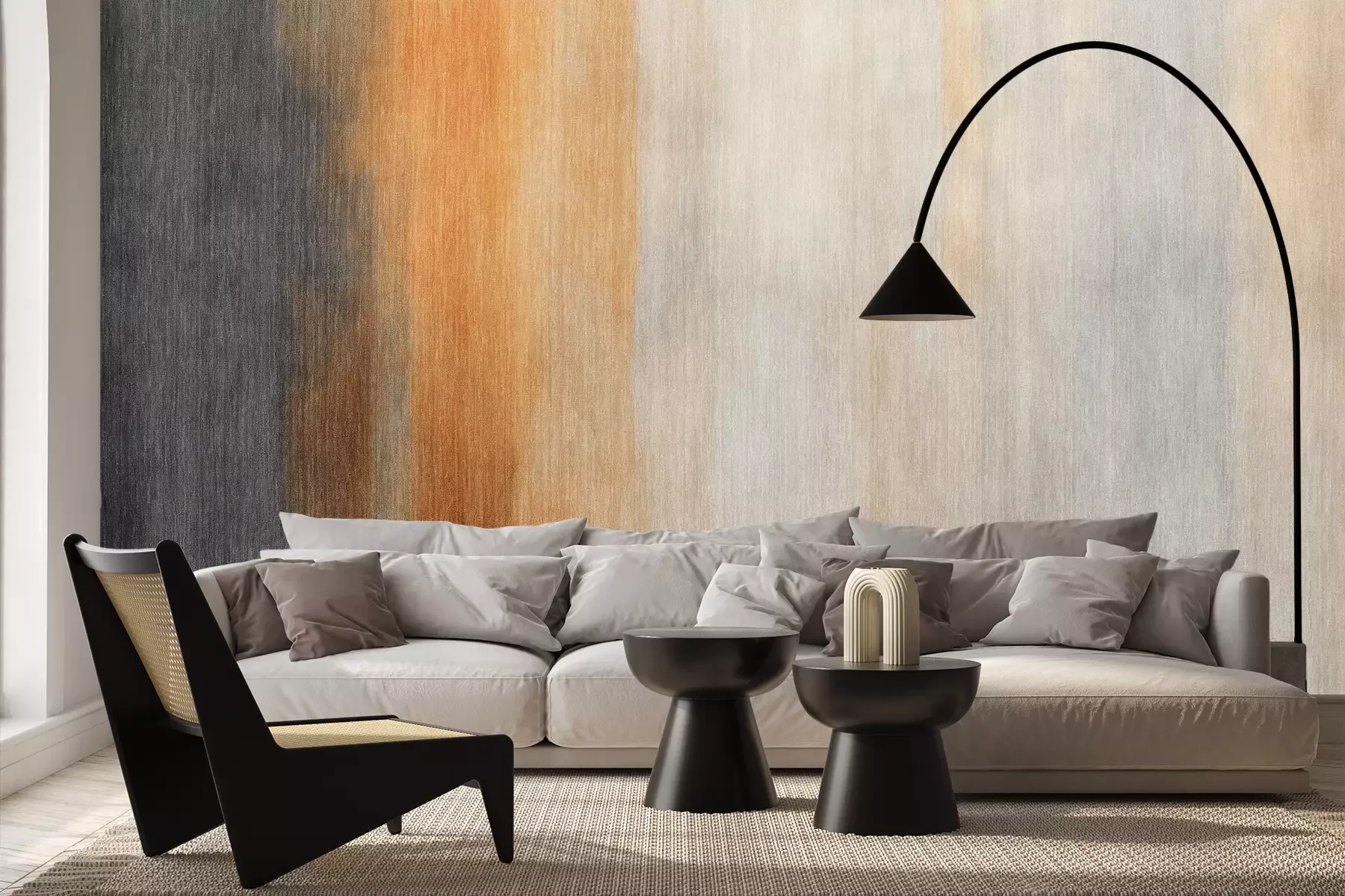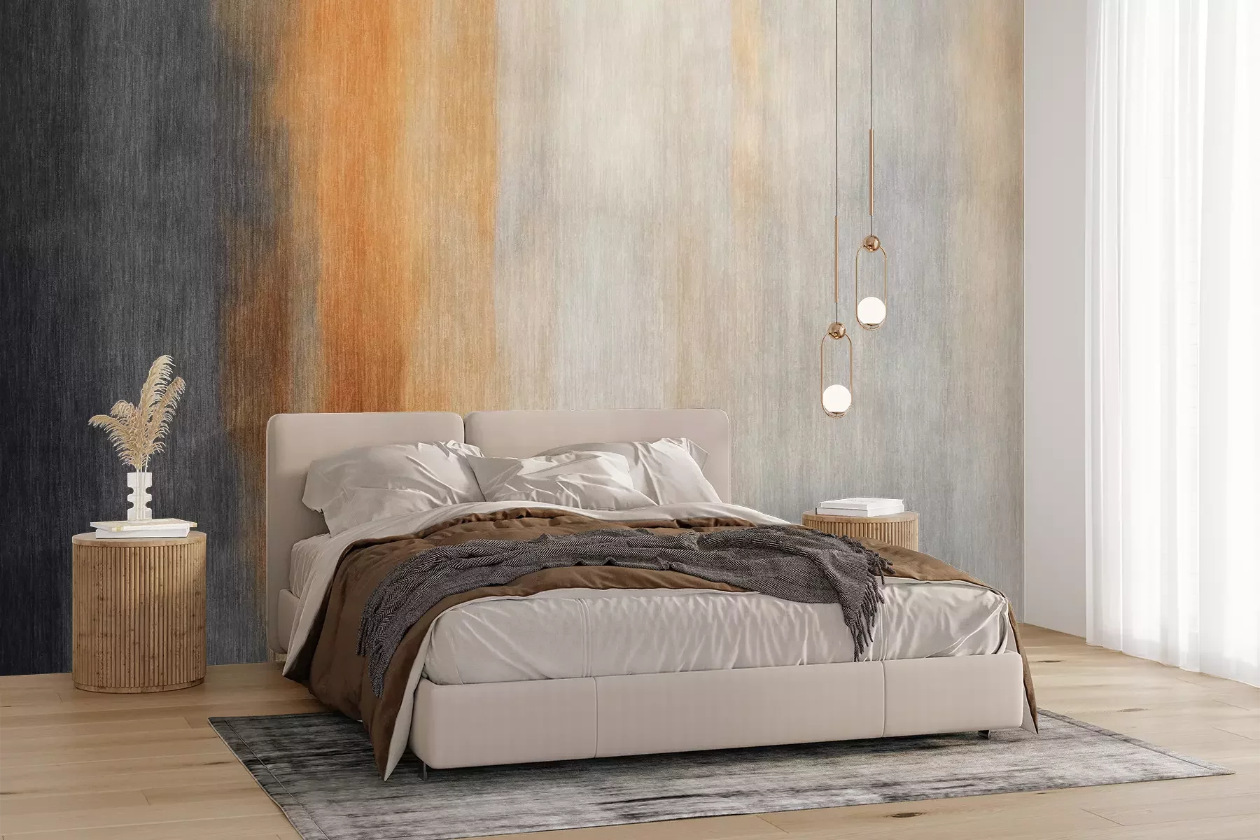 Das Material Premium+ besteht aus einer strukturierten Vinyl-Oberschicht und einem Trägermaterial (Vlies) mit einer Grammatur von 255 g/m², das kleine Unebenheiten der Wand zuverlässig kaschiert. Die feine Sandstruktur verleiht der Oberfläche eine luxuriöse Haptik, während das halbmatte Finish die Tiefe der Farben betont. Das Material ist dampfdurchlässig – so kann diese Fototapete auch in Küchen und Badezimmern eingesetzt werden. Die maximale Breite einer Tapetenbahn beträgt 100 cm. Bei größeren Abmessungen besteht die Fototapete aus mehreren gleich großen Bahnen. Der Kleber wird direkt auf die Wand aufgetragen, und die Fototapete wird auf Stoß angebracht, was für einen ästhetischen Effekt ohne sichtbare Fugen sorgt. Die Oberfläche ist pflegeleicht und kann bei Bedarf sanft mit einem feuchten Tuch abgewischt werden.