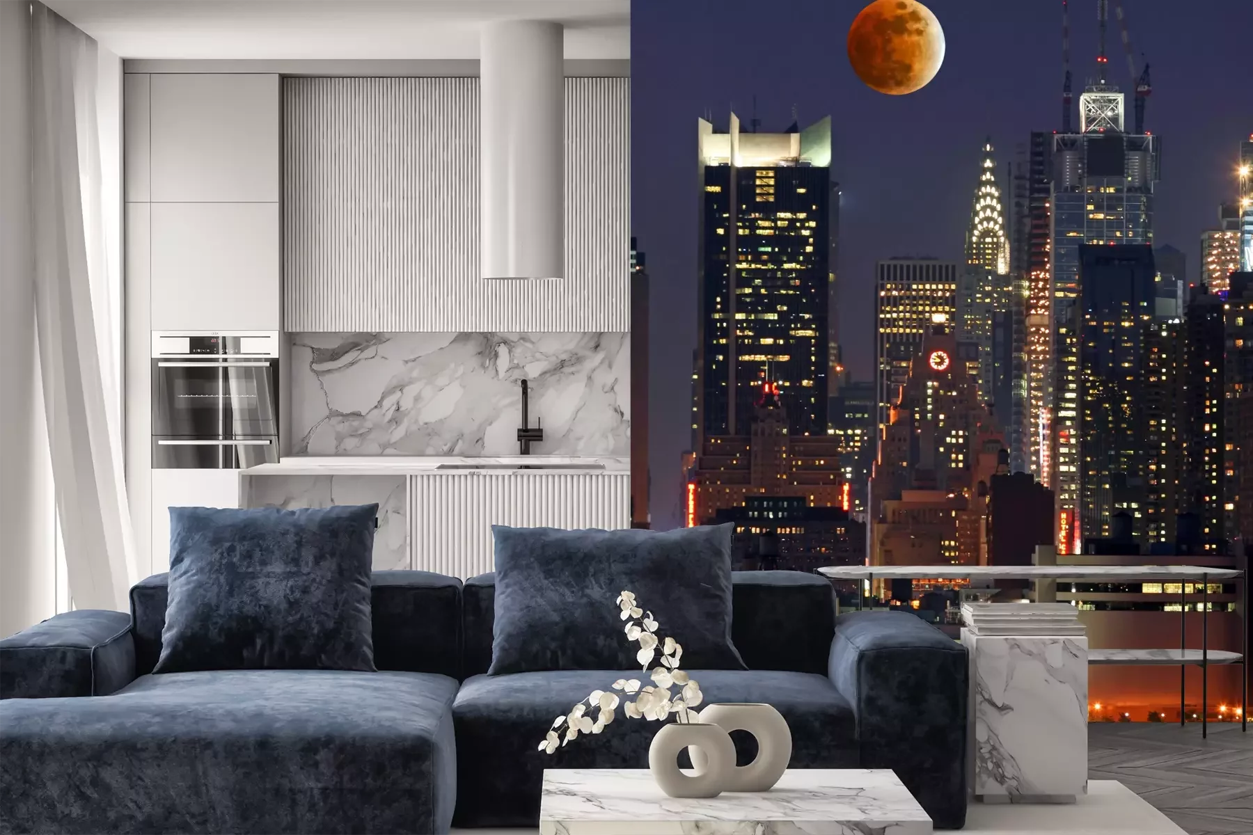 Das Material Premium besteht aus einer glatten Vinyl-Oberschicht und einem Trägermaterial (Vlies), das dehnungsfest und verformungsbeständig ist. Es ist dampfdurchlässig und atmungsaktiv. So können solche Fototapeten in Küchen und Badezimmern verwendet werden. Bei Verschmutzung kann das Material mit einem feuchten Tuch abgewischt werden. Die maximale Breite einer Tapetenbahn beträgt 95 cm oder 105 cm – je nach Verfügbarkeit. Unsere Fototapeten sind für die Tapeziermethode auf Stoß konzipiert. So erzielen Sie einen ästhetischen Effekt ohne sichtbare Fugen. Das Auftragen des Klebers auf die Wand macht die Anbringung der Fototapete schnell und bequem.