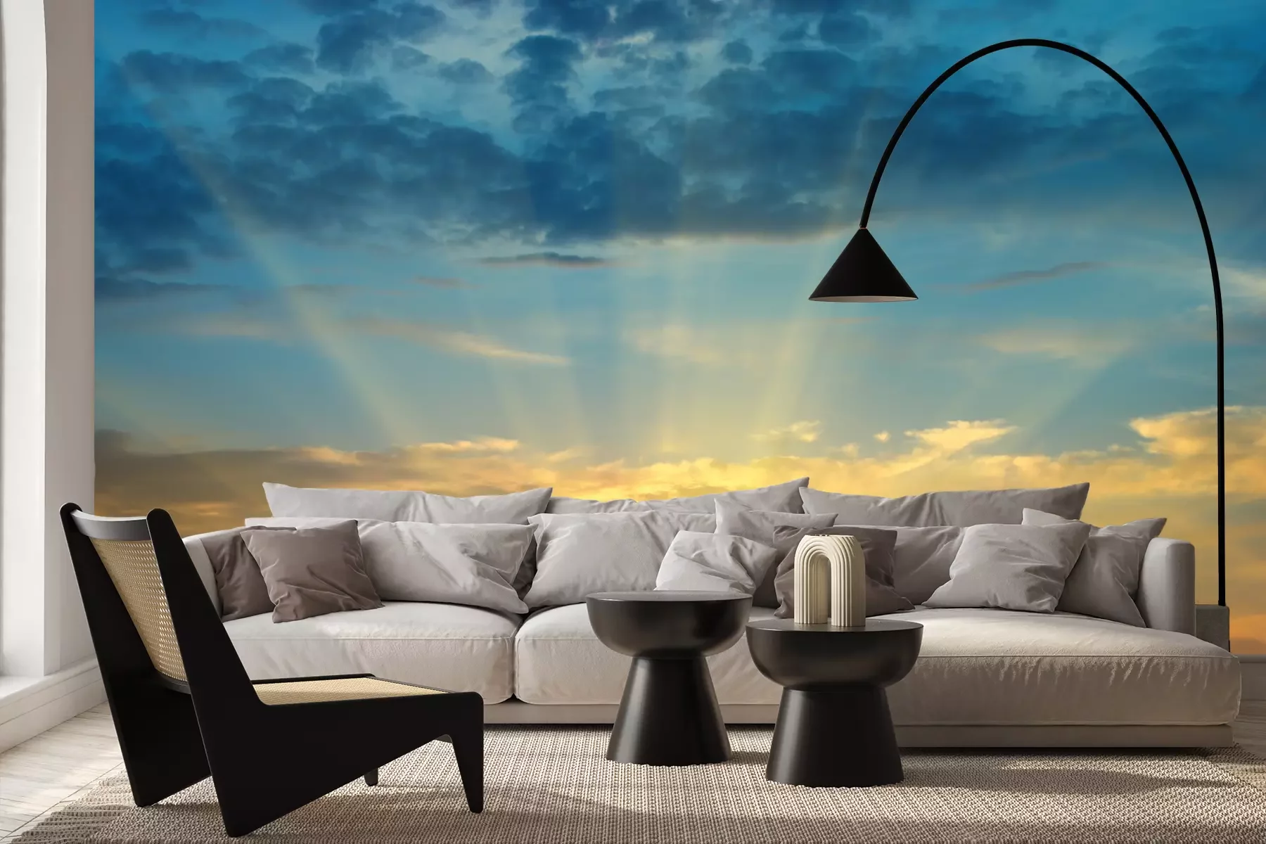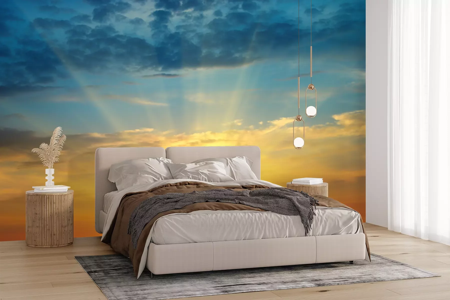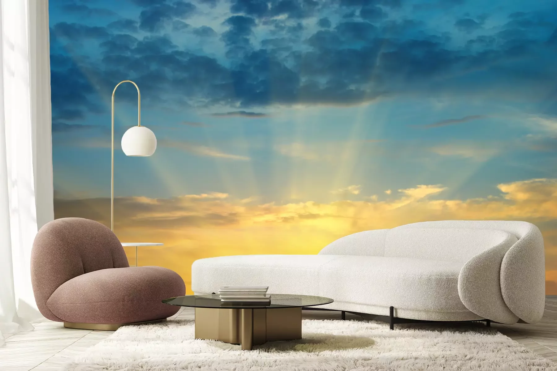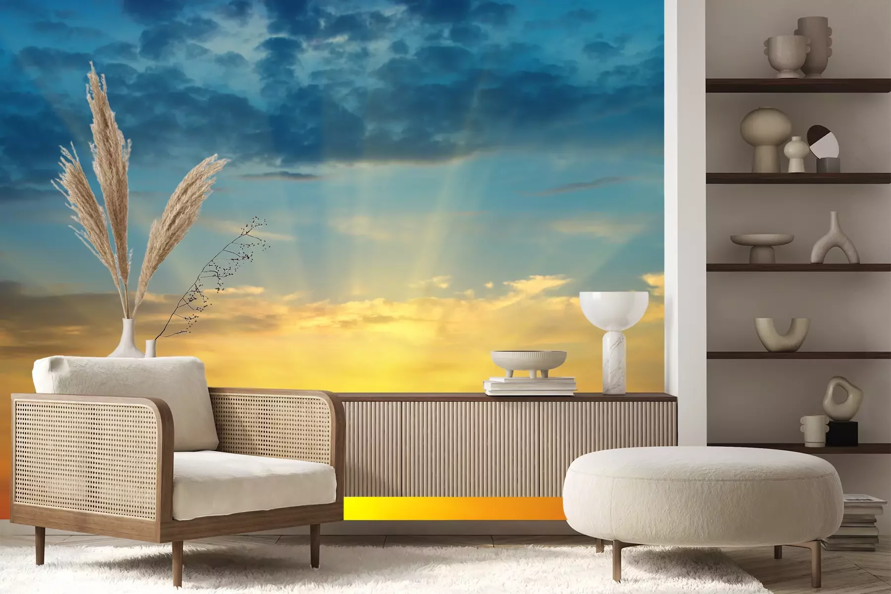 Fototapete Orangefarbener Sonnenuntergang am Himmel