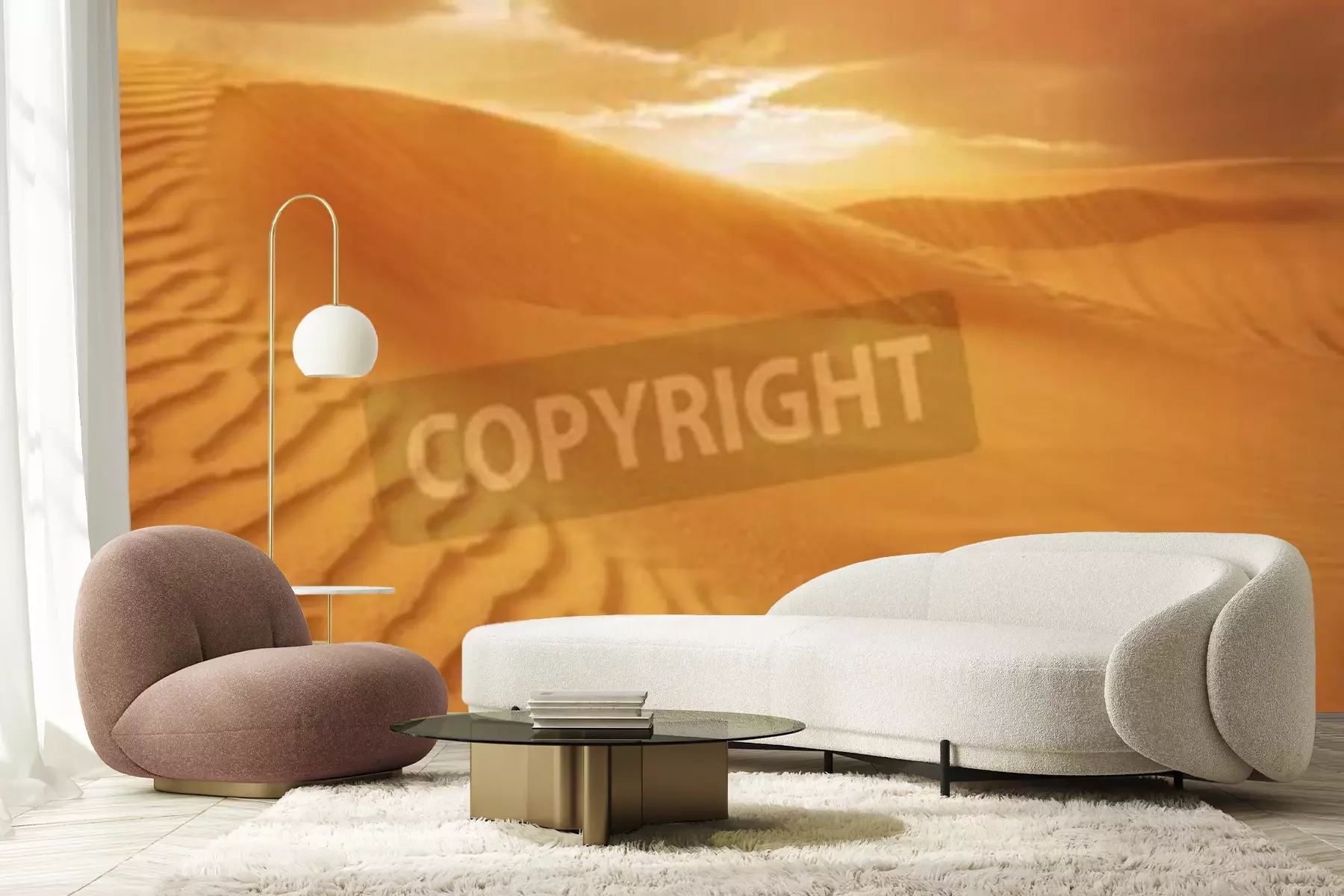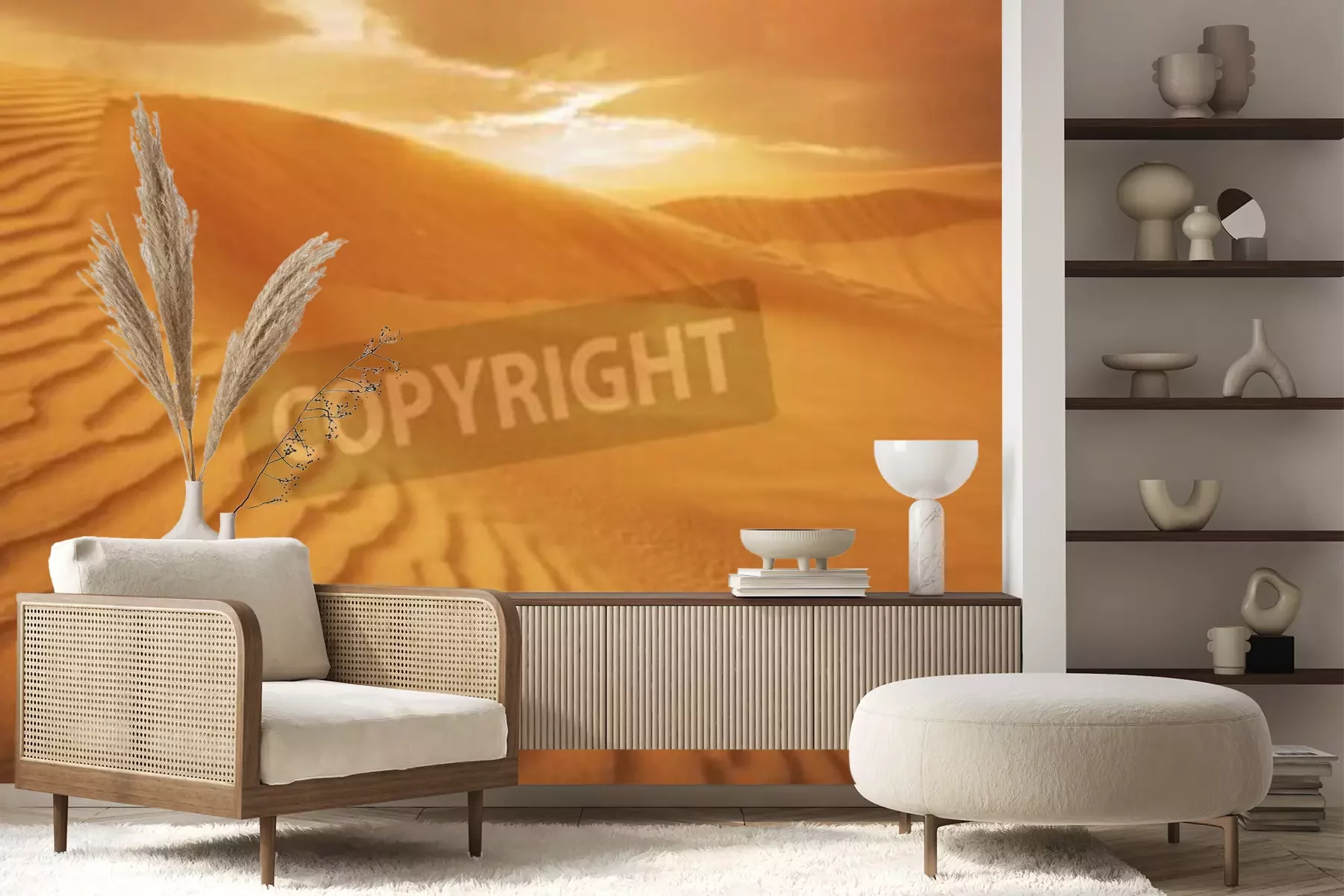 Fototapete Orangefarbener Sonnenuntergang über Wüste