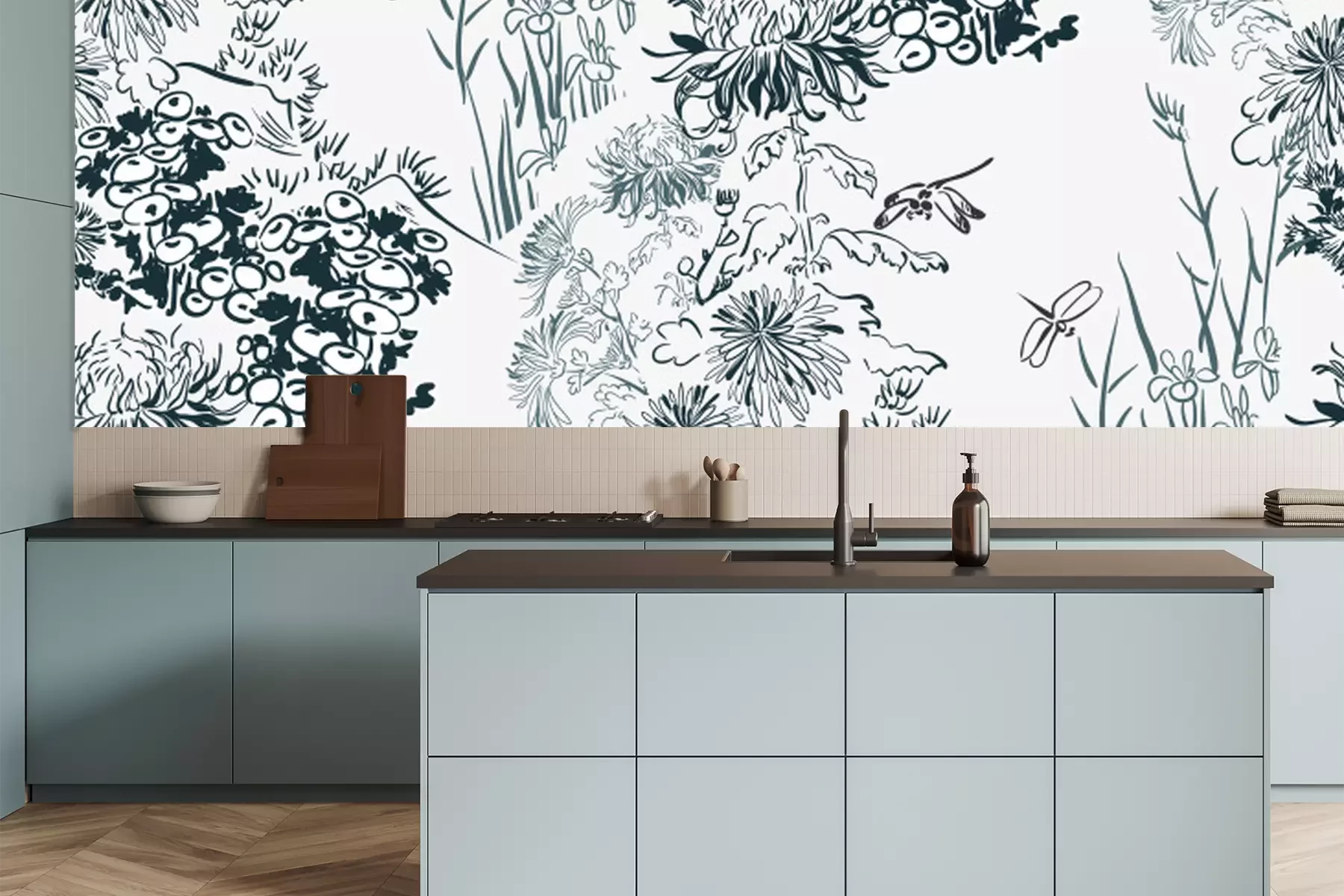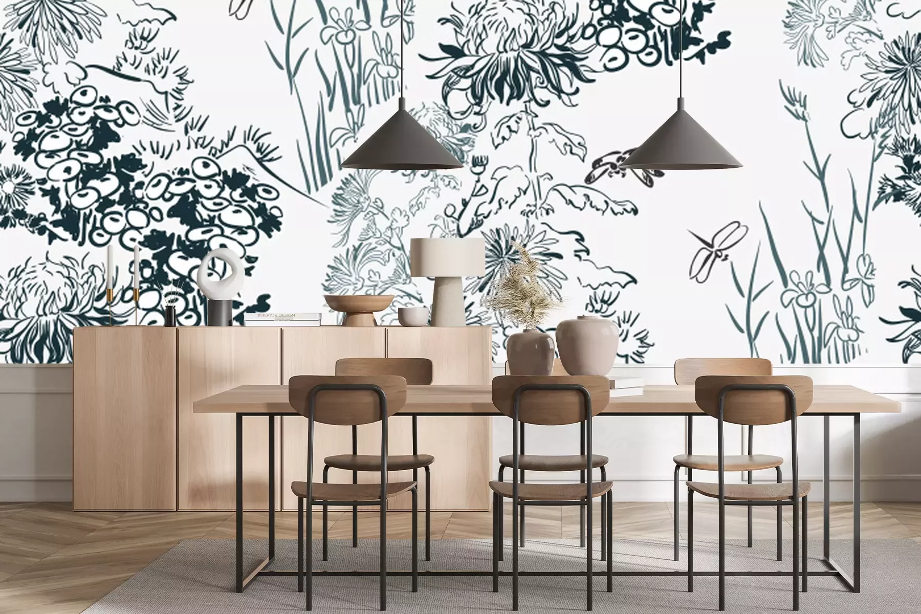 Fototapete Orientalische Wiese mit Chrysanthemen