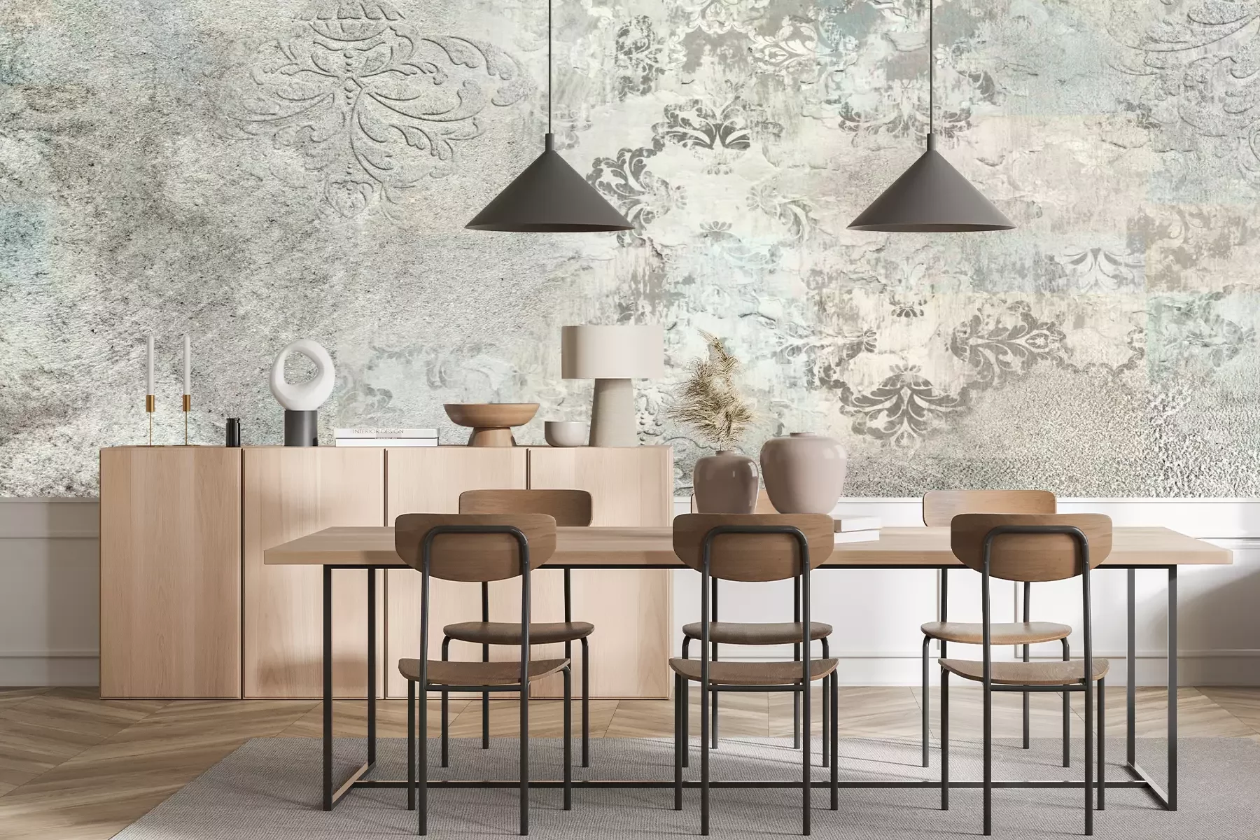 Das Material Premium+ besteht aus einer strukturierten Vinyl-Oberschicht und einem Trägermaterial (Vlies) mit einer Grammatur von 255 g/m², das kleine Unebenheiten der Wand zuverlässig kaschiert. Die feine Sandstruktur verleiht der Oberfläche eine luxuriöse Haptik, während das halbmatte Finish die Tiefe der Farben betont. Das Material ist dampfdurchlässig – so kann diese Fototapete auch in Küchen und Badezimmern eingesetzt werden. Die maximale Breite einer Tapetenbahn beträgt 100 cm. Bei größeren Abmessungen besteht die Fototapete aus mehreren gleich großen Bahnen. Der Kleber wird direkt auf die Wand aufgetragen, und die Fototapete wird auf Stoß angebracht, was für einen ästhetischen Effekt ohne sichtbare Fugen sorgt. Die Oberfläche ist pflegeleicht und kann bei Bedarf sanft mit einem feuchten Tuch abgewischt werden.