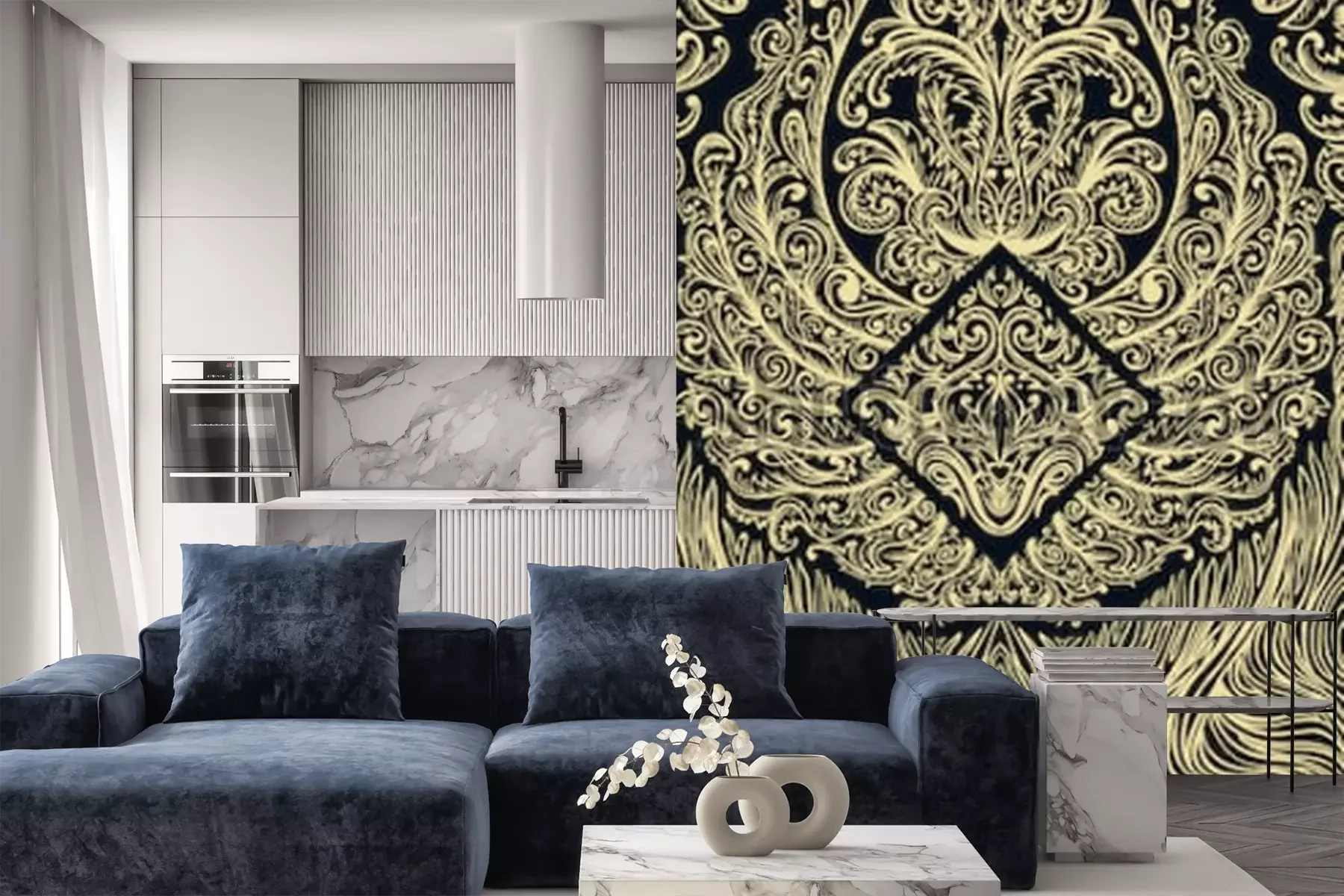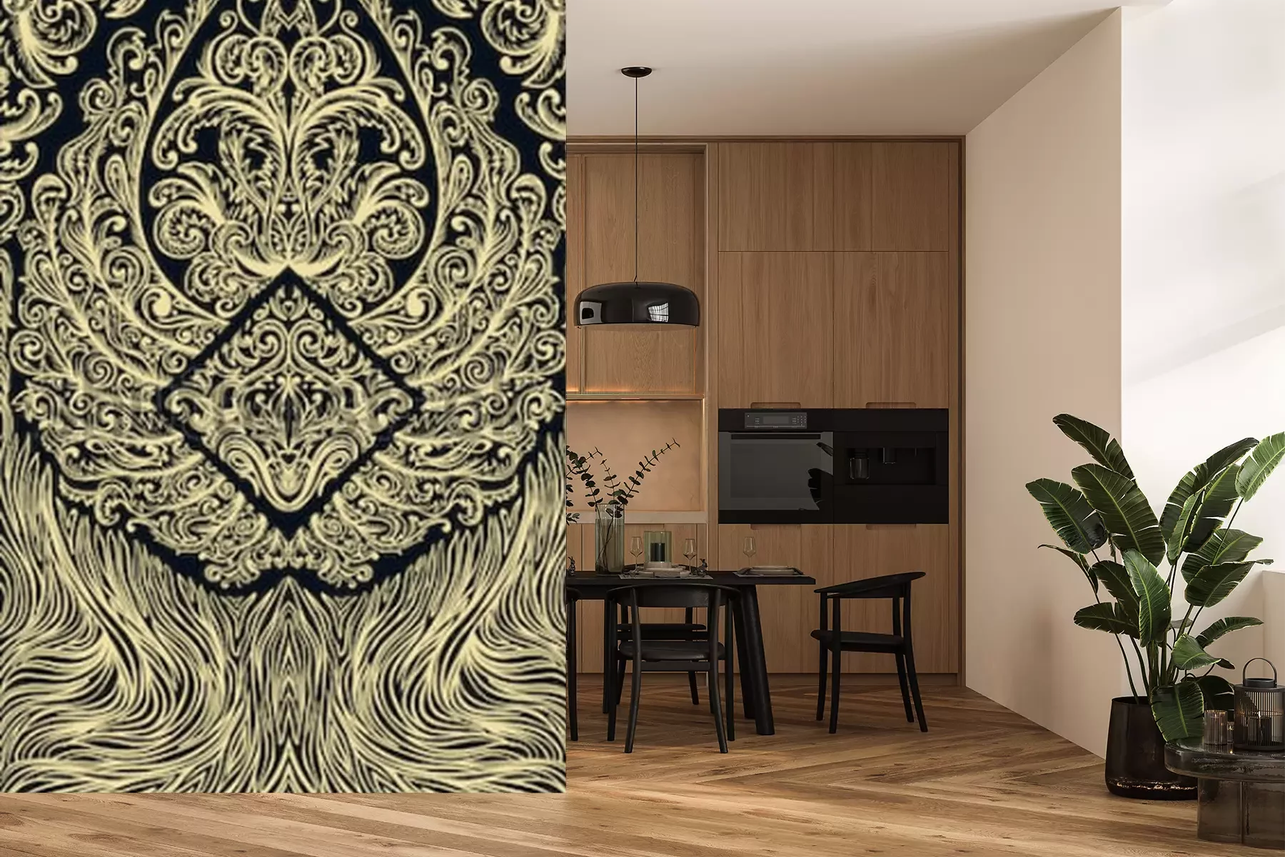 Fototapete Ornamentales Muster auf schwarzem Hintergrund