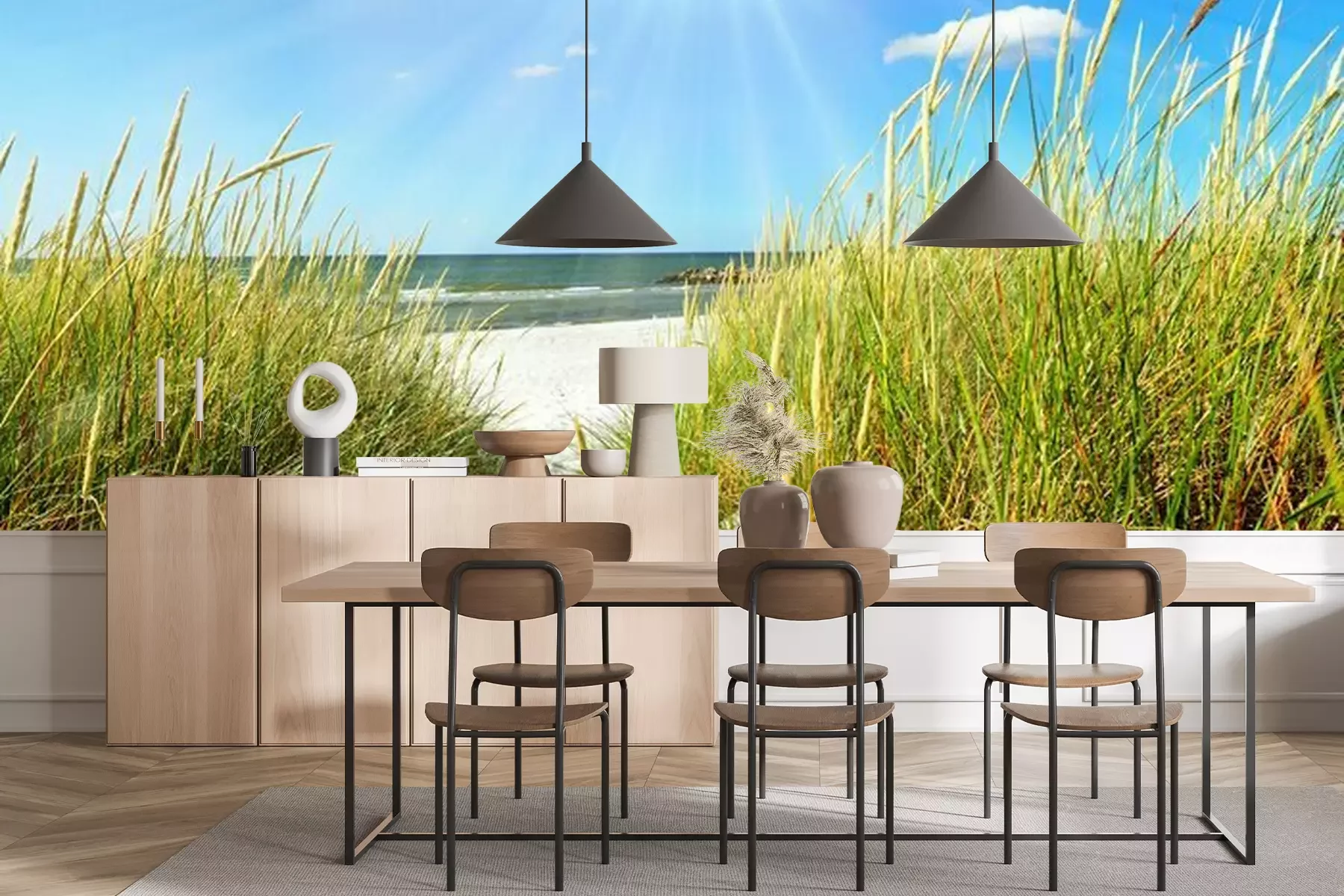 Das Material Standard ist ein hochwertiges Latexmaterial mit einer glatten, matten Oberfläche. Durch den Einsatz von HP-Latex-Drucktechnologie sind die Farben satt, langlebig und UV-beständig. So bleibt das Muster über Jahre hinweg makellos schön. Die verschmutzte Oberfläche dieses Materials kann sanft mit einem trockenen Tuch abgewischt werden. Die maximale Breite einer einzelnen Bahn beträgt 95 cm oder 105 cm – je nach Breite der bestellten Fototapete. Bei Fototapeten mit größeren Abmessungen besteht der Ausdruck aus mehreren gleich großen Tapetenbahnen. Die Fototapete wird auf Stoß angebracht, wodurch die Fugen nahezu unsichtbar sind.