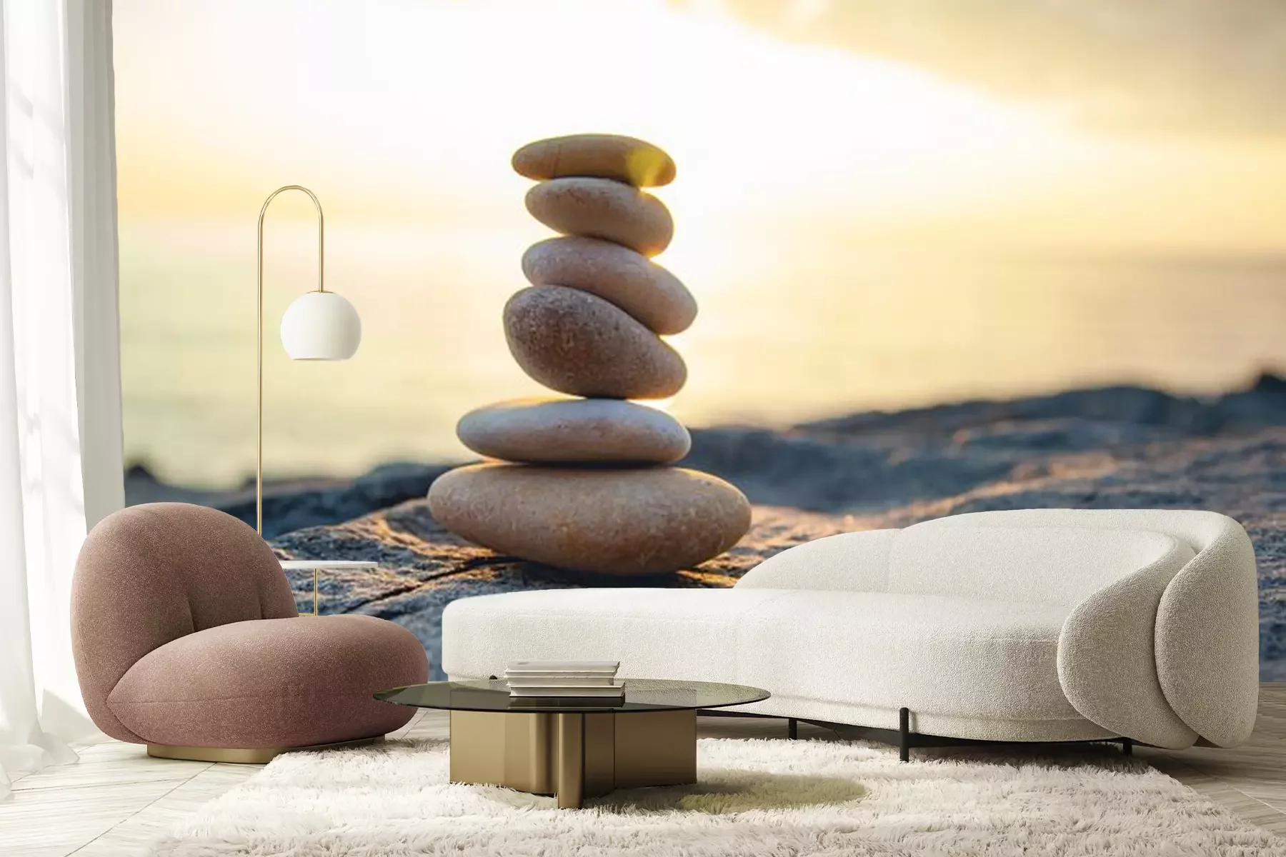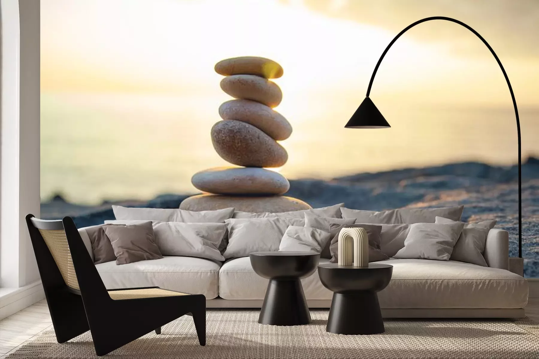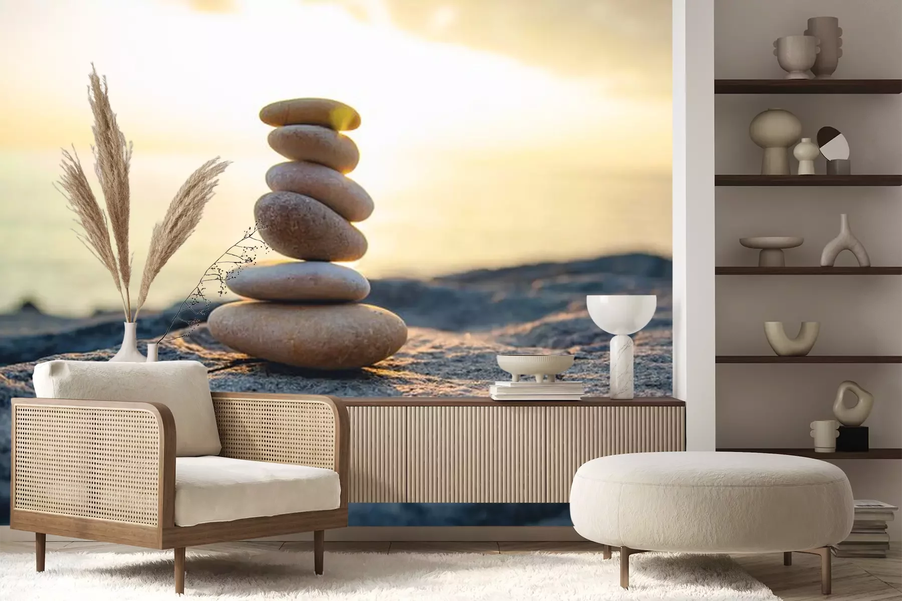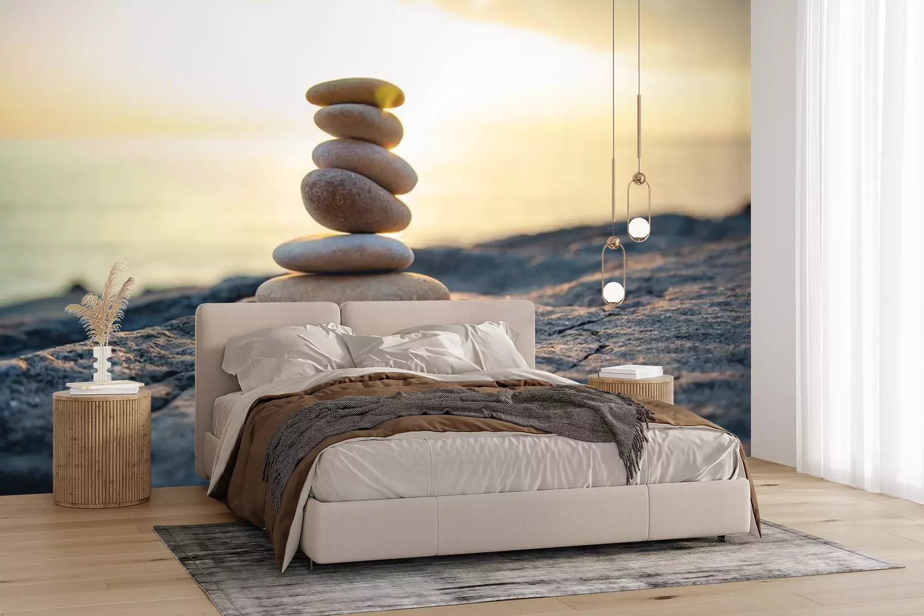 Fototapete Ovale Steine vor dem Hintergrund der Sonne