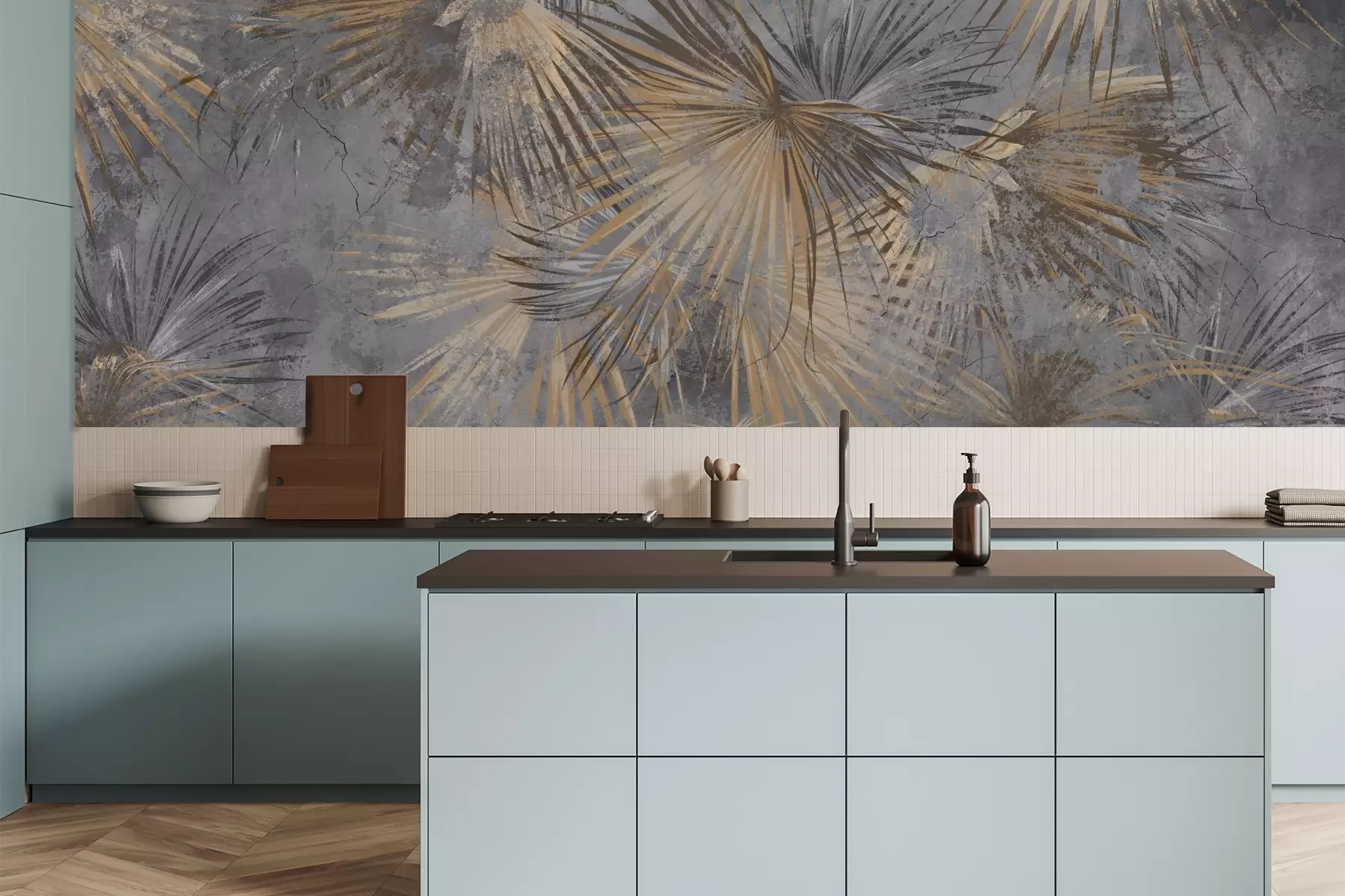 Das Material Premium+ besteht aus einer strukturierten Vinyl-Oberschicht und einem Trägermaterial (Vlies) mit einer Grammatur von 255 g/m², das kleine Unebenheiten der Wand zuverlässig kaschiert. Die feine Sandstruktur verleiht der Oberfläche eine luxuriöse Haptik, während das halbmatte Finish die Tiefe der Farben betont. Das Material ist dampfdurchlässig – so kann diese Fototapete auch in Küchen und Badezimmern eingesetzt werden. Die maximale Breite einer Tapetenbahn beträgt 100 cm. Bei größeren Abmessungen besteht die Fototapete aus mehreren gleich großen Bahnen. Der Kleber wird direkt auf die Wand aufgetragen, und die Fototapete wird auf Stoß angebracht, was für einen ästhetischen Effekt ohne sichtbare Fugen sorgt. Die Oberfläche ist pflegeleicht und kann bei Bedarf sanft mit einem feuchten Tuch abgewischt werden.