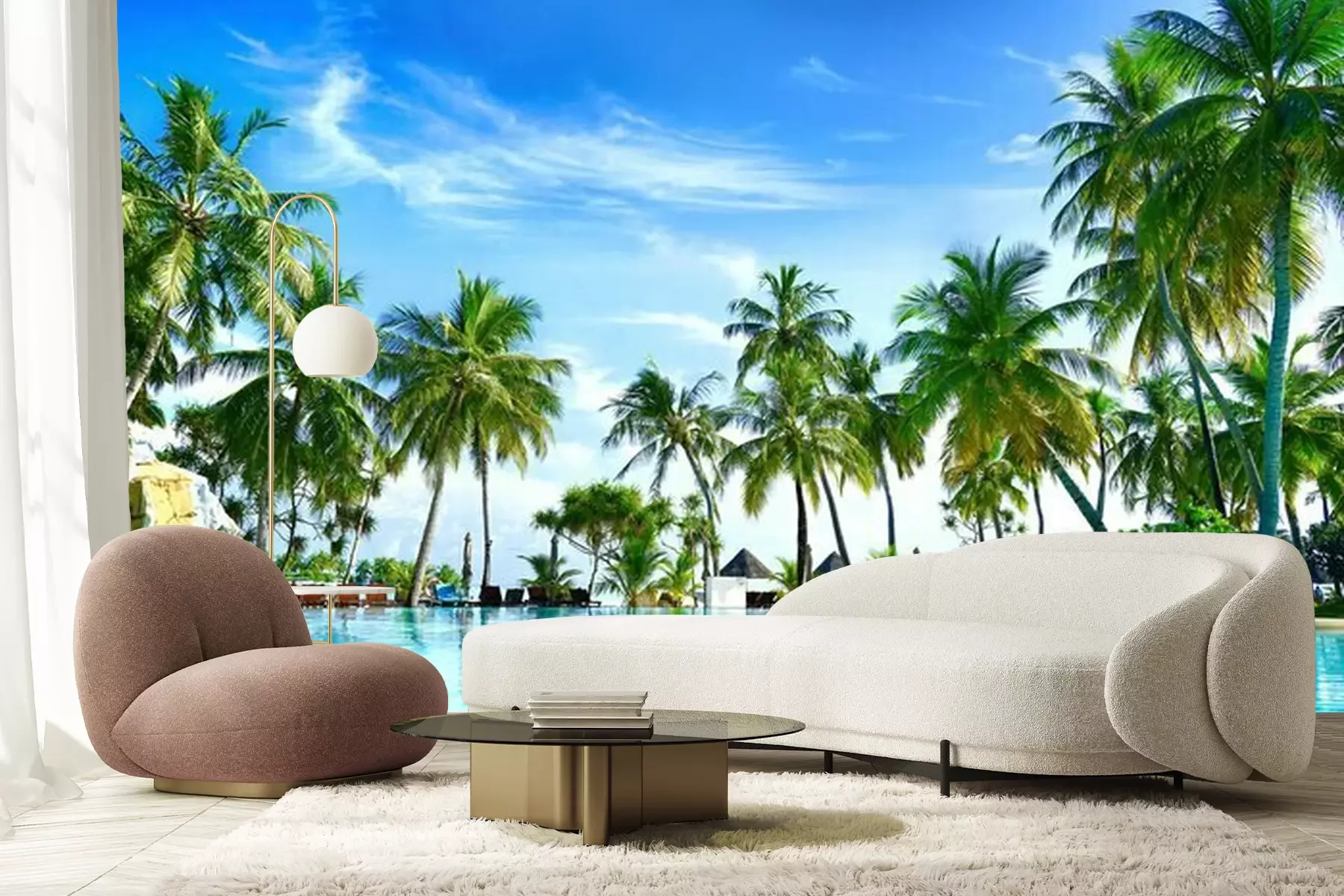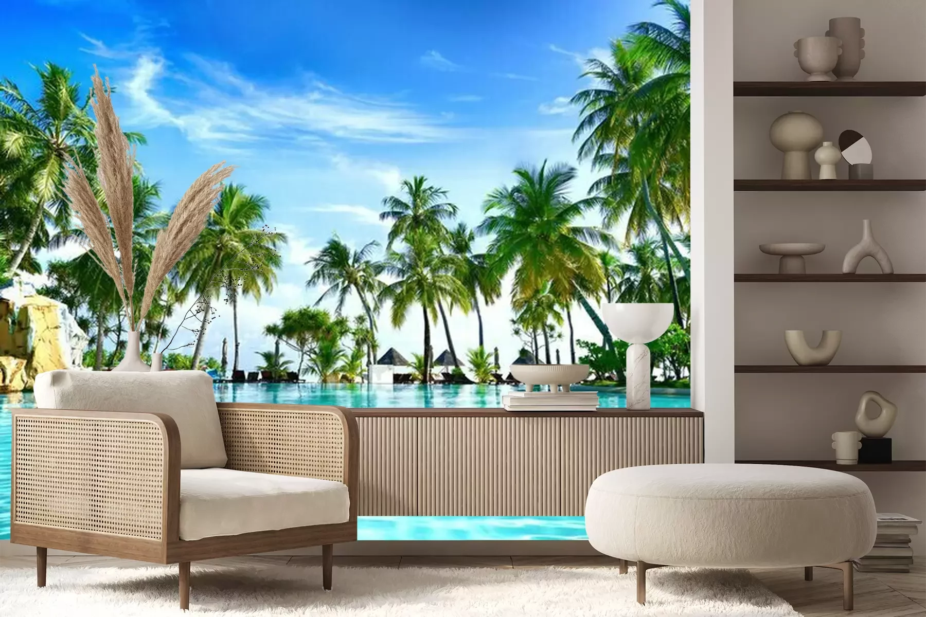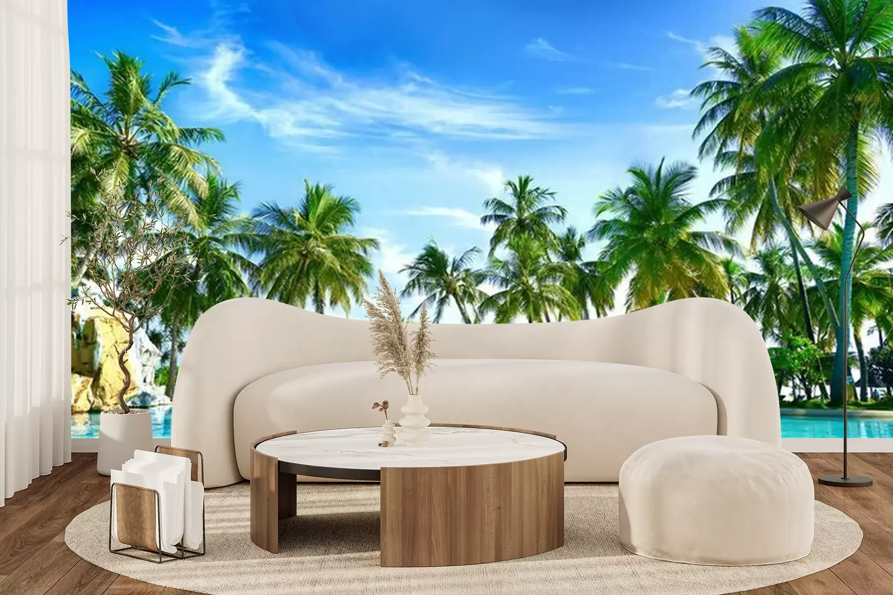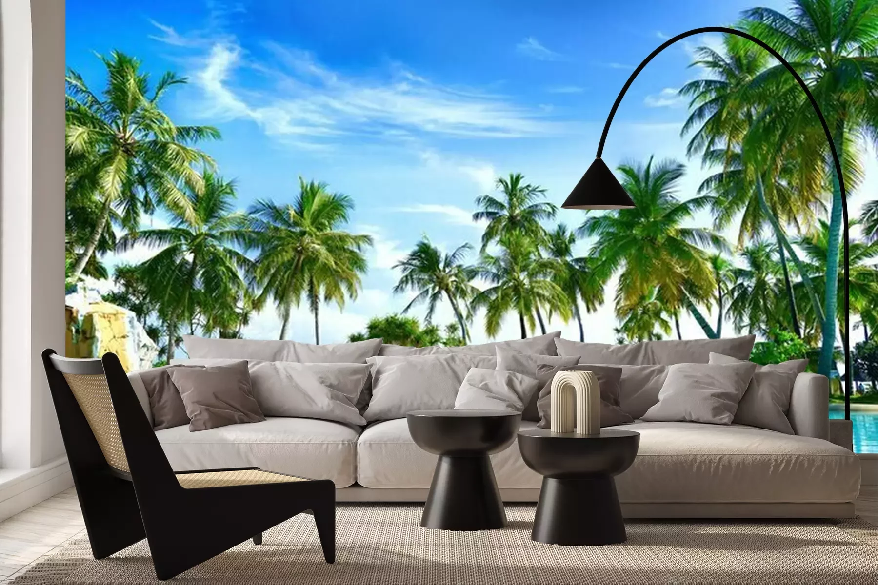 Panorama mit Palme am OzeanProblemlose Lieferung durch vertrauenswürdige Spediteure