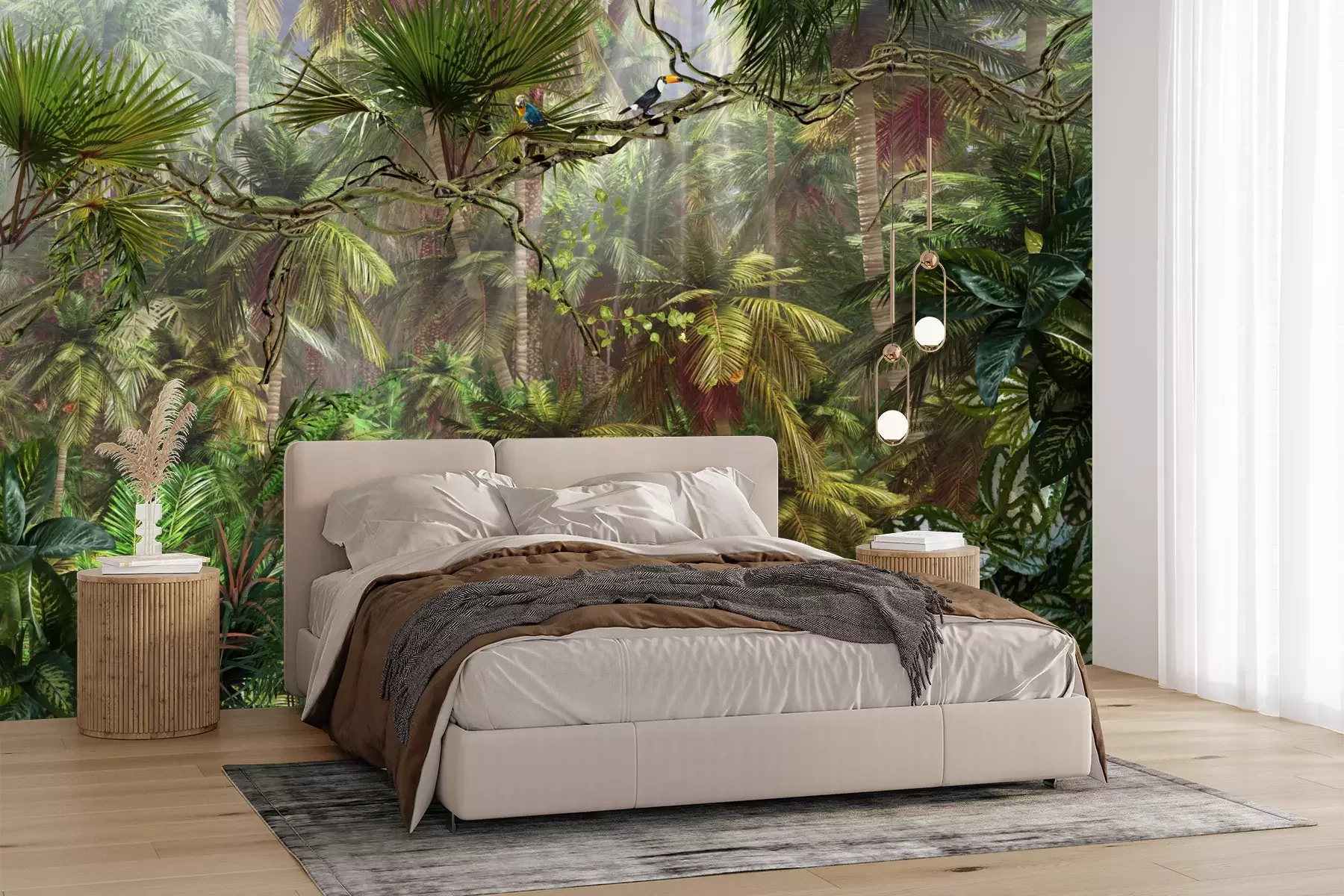 Die Fototapeten werden in Bahnen geliefert. Die Größe und die Anzahl der Bahnen, aus denen die gesamte Fototapete besteht, hängen vom gewählten Material ab. Wenn die Größe die maximale Breite des Materials überschreitet, besteht der Ausdruck aus mehreren gleich großen Bahnen.