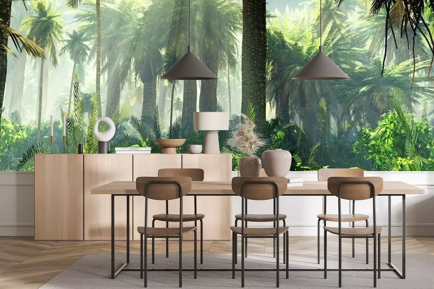 Das Material Premium+ besteht aus einer strukturierten Vinyl-Oberschicht und einem Trägermaterial (Vlies) mit einer Grammatur von 255 g/m², das kleine Unebenheiten der Wand zuverlässig kaschiert. Die feine Sandstruktur verleiht der Oberfläche eine luxuriöse Haptik, während das halbmatte Finish die Tiefe der Farben betont. Das Material ist dampfdurchlässig – so kann diese Fototapete auch in Küchen und Badezimmern eingesetzt werden. Die maximale Breite einer Tapetenbahn beträgt 100 cm. Bei größeren Abmessungen besteht die Fototapete aus mehreren gleich großen Bahnen. Der Kleber wird direkt auf die Wand aufgetragen, und die Fototapete wird auf Stoß angebracht, was für einen ästhetischen Effekt ohne sichtbare Fugen sorgt. Die Oberfläche ist pflegeleicht und kann bei Bedarf sanft mit einem feuchten Tuch abgewischt werden.