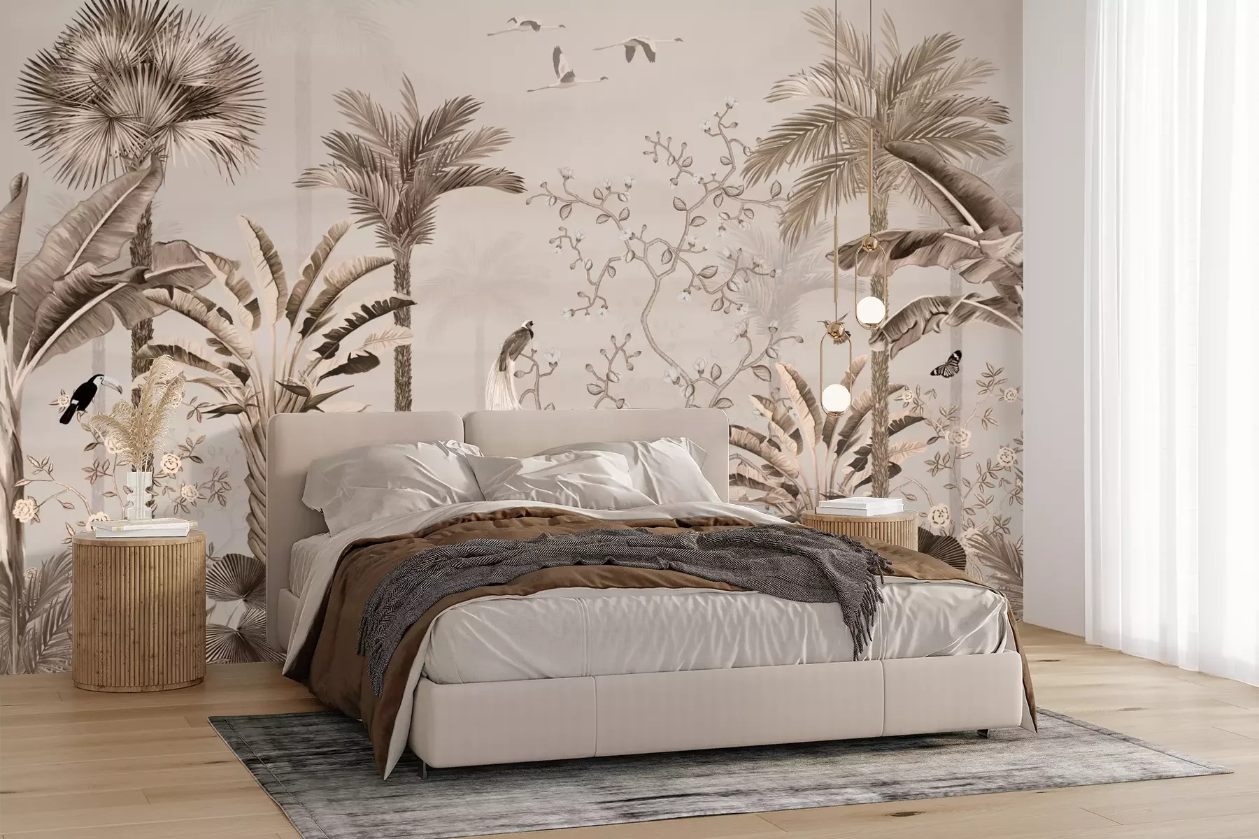 Das Material Premium+ besteht aus einer strukturierten Vinyl-Oberschicht und einem Trägermaterial (Vlies) mit einer Grammatur von 255 g/m², das kleine Unebenheiten der Wand zuverlässig kaschiert. Die feine Sandstruktur verleiht der Oberfläche eine luxuriöse Haptik, während das halbmatte Finish die Tiefe der Farben betont. Das Material ist dampfdurchlässig – so kann diese Fototapete auch in Küchen und Badezimmern eingesetzt werden. Die maximale Breite einer Tapetenbahn beträgt 100 cm. Bei größeren Abmessungen besteht die Fototapete aus mehreren gleich großen Bahnen. Der Kleber wird direkt auf die Wand aufgetragen, und die Fototapete wird auf Stoß angebracht, was für einen ästhetischen Effekt ohne sichtbare Fugen sorgt. Die Oberfläche ist pflegeleicht und kann bei Bedarf sanft mit einem feuchten Tuch abgewischt werden.