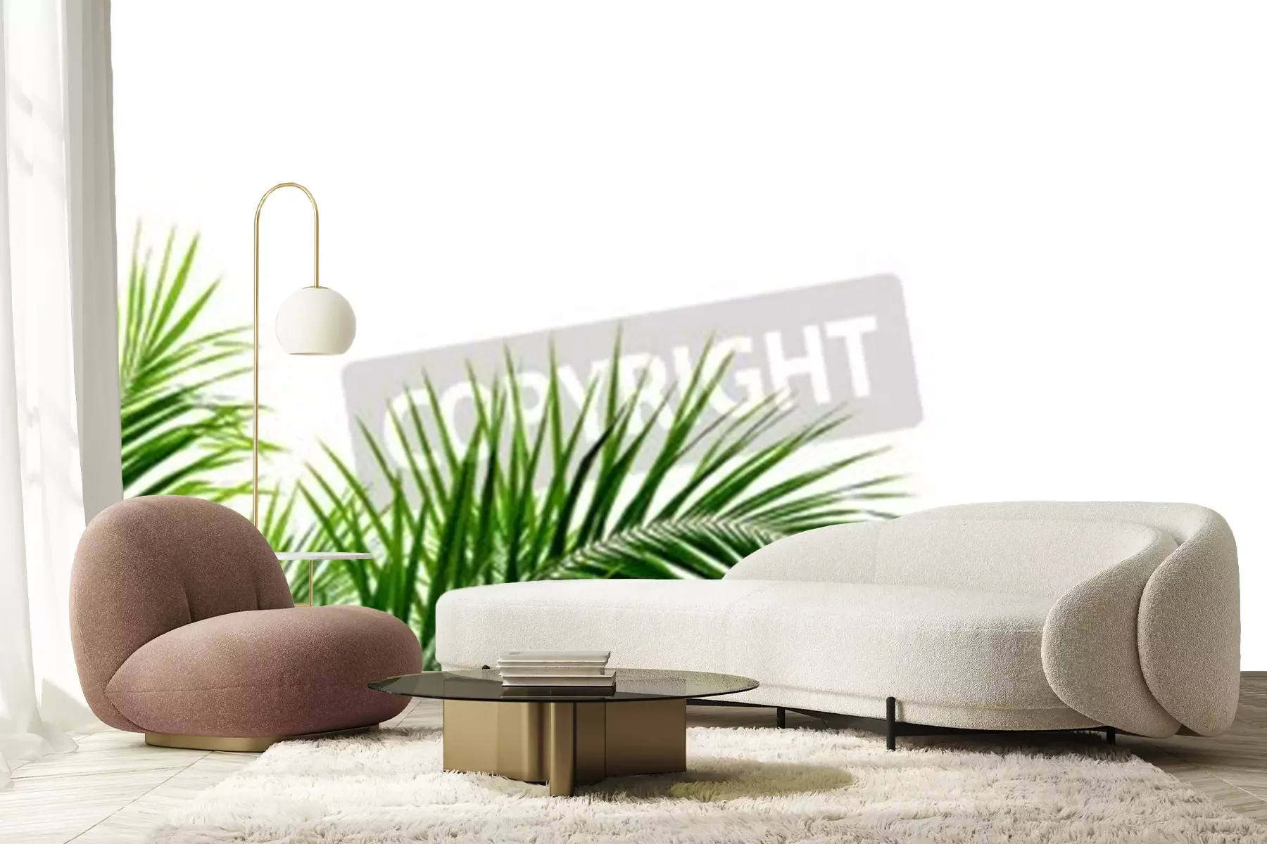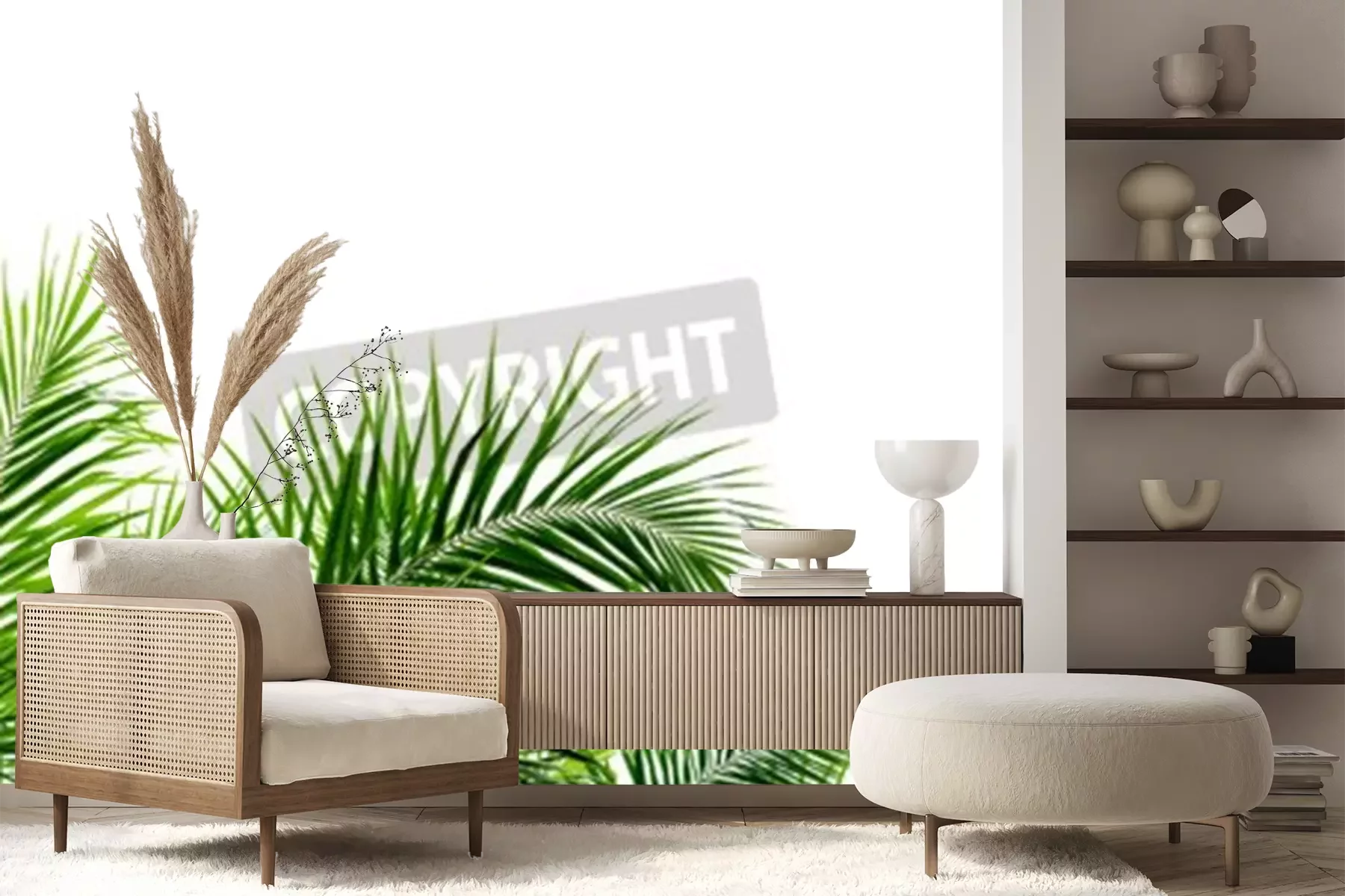 Fototapete Palmenblätter auf weißem Hintergrund