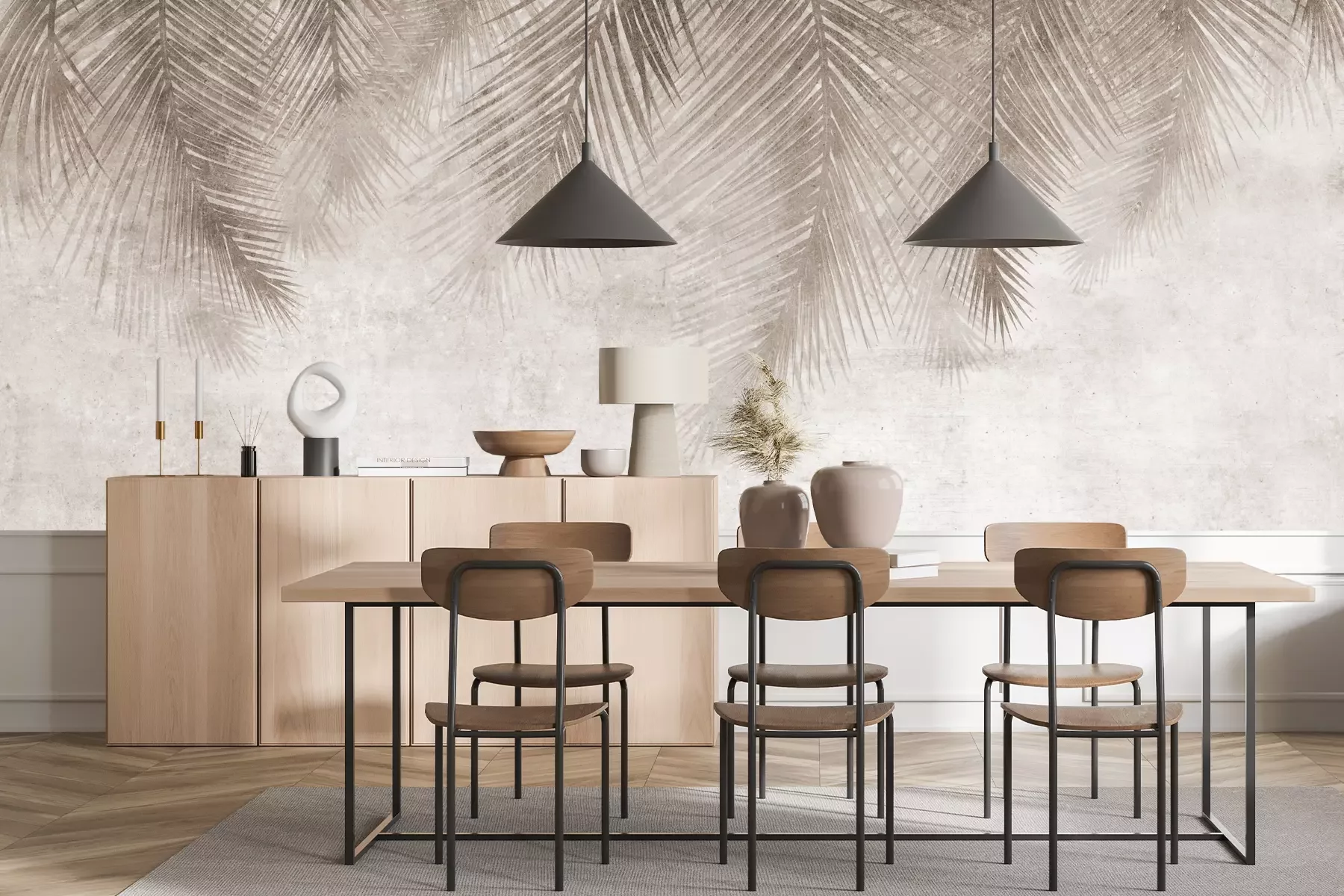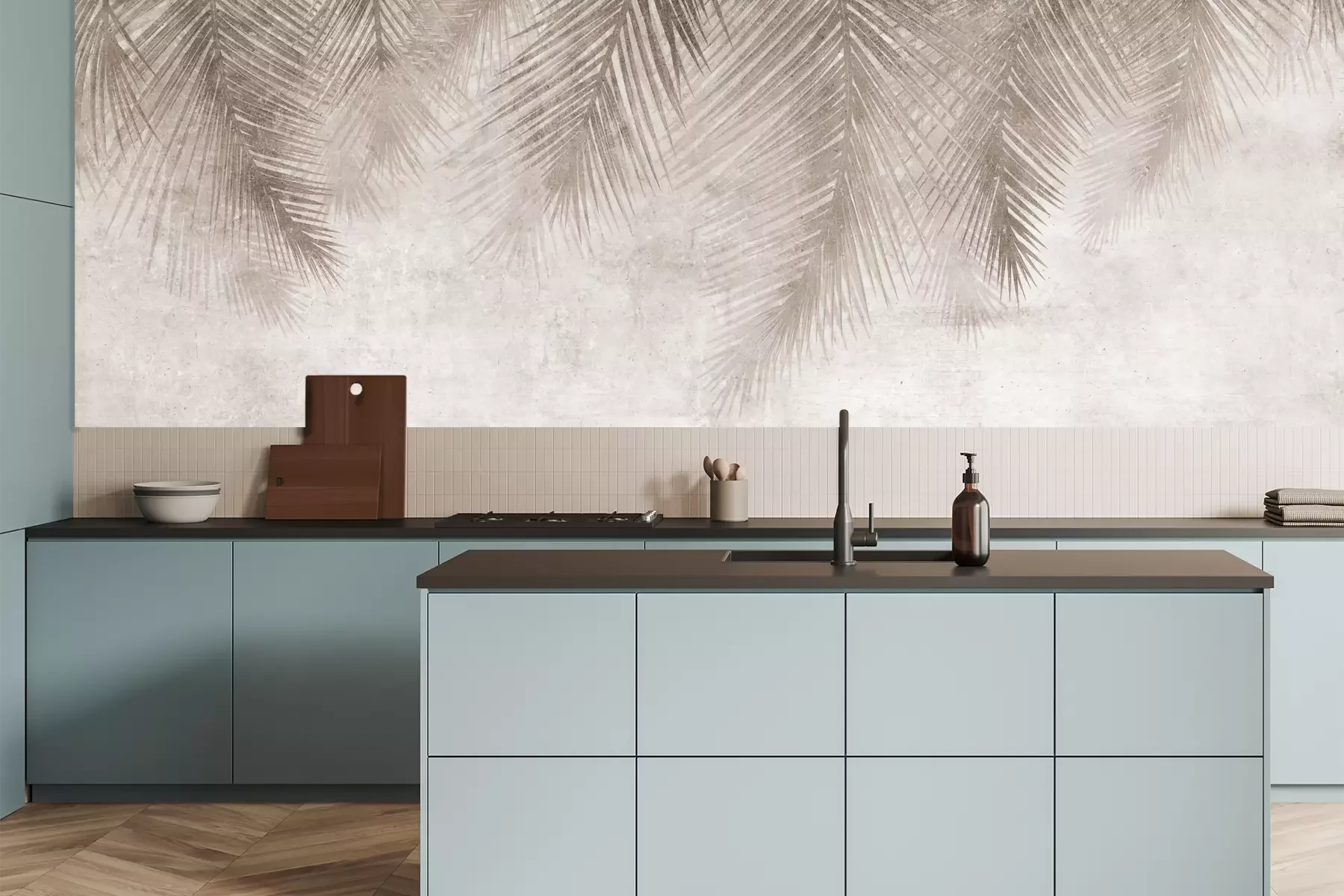 Das Material Premium+ besteht aus einer strukturierten Vinyl-Oberschicht und einem Trägermaterial (Vlies) mit einer Grammatur von 255 g/m², das kleine Unebenheiten der Wand zuverlässig kaschiert. Die feine Sandstruktur verleiht der Oberfläche eine luxuriöse Haptik, während das halbmatte Finish die Tiefe der Farben betont. Das Material ist dampfdurchlässig – so kann diese Fototapete auch in Küchen und Badezimmern eingesetzt werden. Die maximale Breite einer Tapetenbahn beträgt 100 cm. Bei größeren Abmessungen besteht die Fototapete aus mehreren gleich großen Bahnen. Der Kleber wird direkt auf die Wand aufgetragen, und die Fototapete wird auf Stoß angebracht, was für einen ästhetischen Effekt ohne sichtbare Fugen sorgt. Die Oberfläche ist pflegeleicht und kann bei Bedarf sanft mit einem feuchten Tuch abgewischt werden.