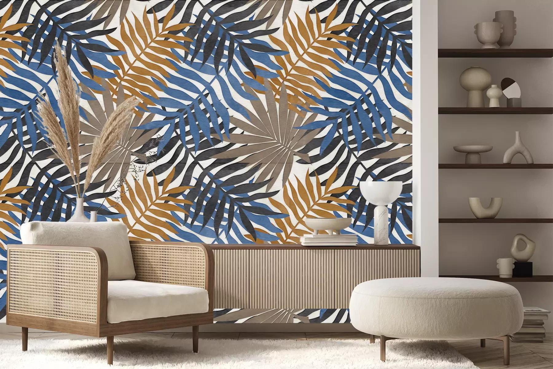 Das Material Premium+ besteht aus einer strukturierten Vinyl-Oberschicht und einem Trägermaterial (Vlies) mit einer Grammatur von 255 g/m², das kleine Unebenheiten der Wand zuverlässig kaschiert. Die feine Sandstruktur verleiht der Oberfläche eine luxuriöse Haptik, während das halbmatte Finish die Tiefe der Farben betont. Das Material ist dampfdurchlässig – so kann diese Fototapete auch in Küchen und Badezimmern eingesetzt werden. Die maximale Breite einer Tapetenbahn beträgt 100 cm. Bei größeren Abmessungen besteht die Fototapete aus mehreren gleich großen Bahnen. Der Kleber wird direkt auf die Wand aufgetragen, und die Fototapete wird auf Stoß angebracht, was für einen ästhetischen Effekt ohne sichtbare Fugen sorgt. Die Oberfläche ist pflegeleicht und kann bei Bedarf sanft mit einem feuchten Tuch abgewischt werden.