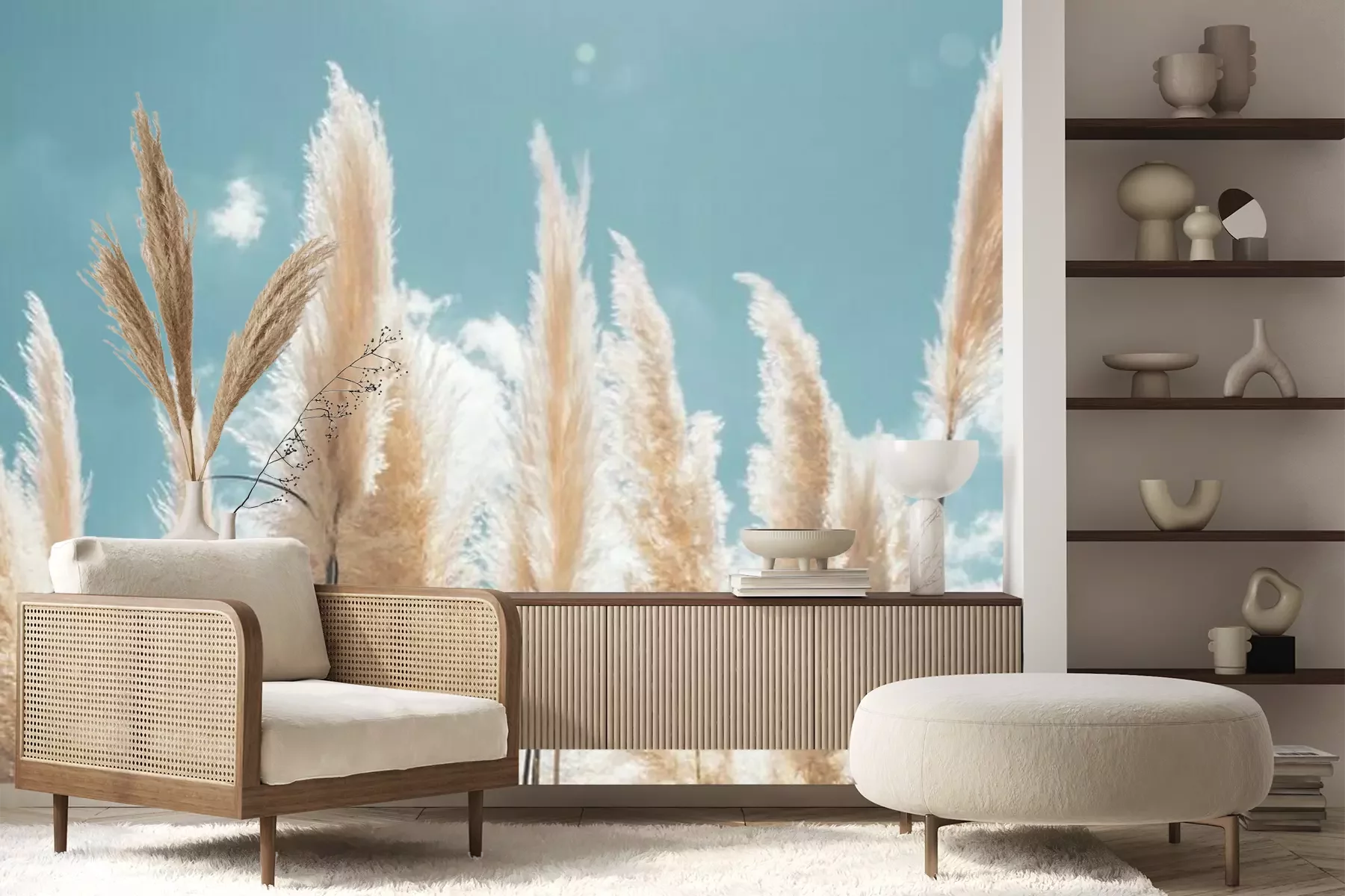 Das Material Premium+ besteht aus einer strukturierten Vinyl-Oberschicht und einem Trägermaterial (Vlies) mit einer Grammatur von 255 g/m², das kleine Unebenheiten der Wand zuverlässig kaschiert. Die feine Sandstruktur verleiht der Oberfläche eine luxuriöse Haptik, während das halbmatte Finish die Tiefe der Farben betont. Das Material ist dampfdurchlässig – so kann diese Fototapete auch in Küchen und Badezimmern eingesetzt werden. Die maximale Breite einer Tapetenbahn beträgt 100 cm. Bei größeren Abmessungen besteht die Fototapete aus mehreren gleich großen Bahnen. Der Kleber wird direkt auf die Wand aufgetragen, und die Fototapete wird auf Stoß angebracht, was für einen ästhetischen Effekt ohne sichtbare Fugen sorgt. Die Oberfläche ist pflegeleicht und kann bei Bedarf sanft mit einem feuchten Tuch abgewischt werden.