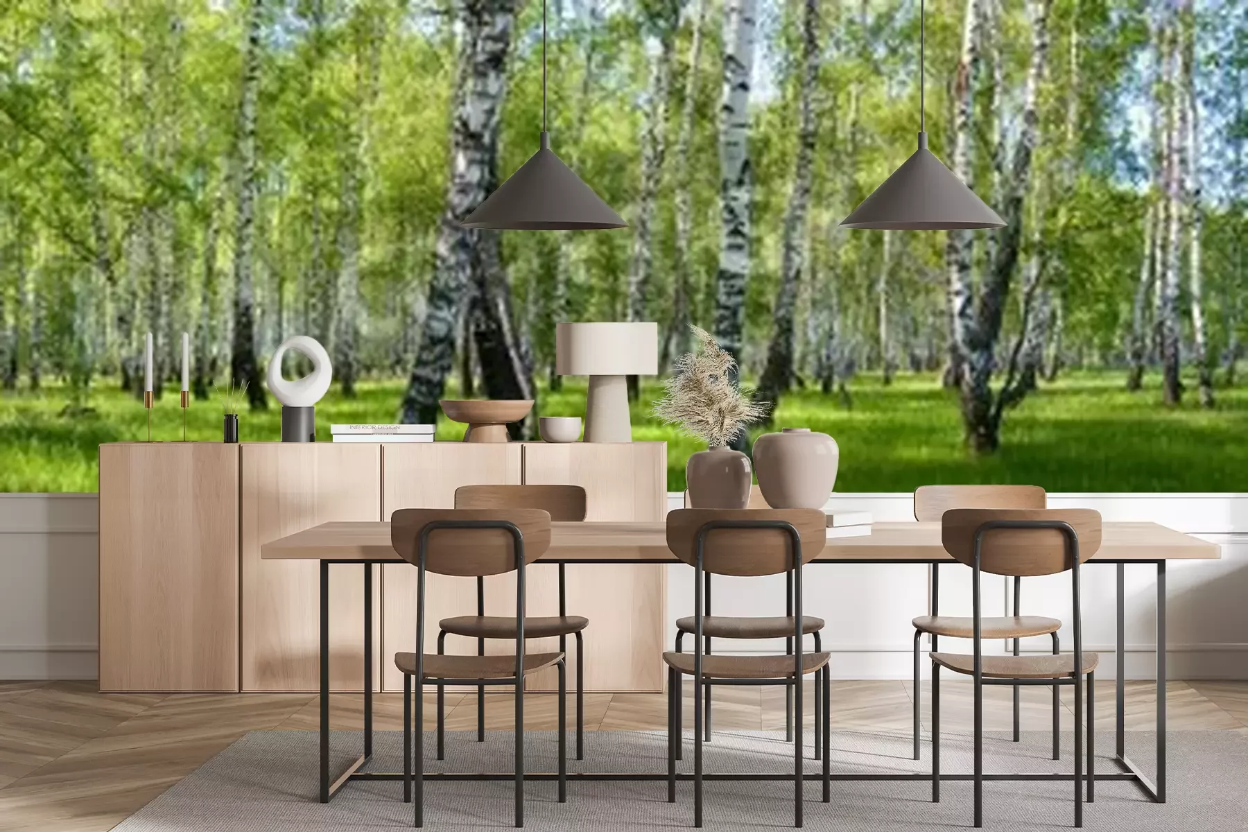 Fototapete Panorama des Birkenwaldes