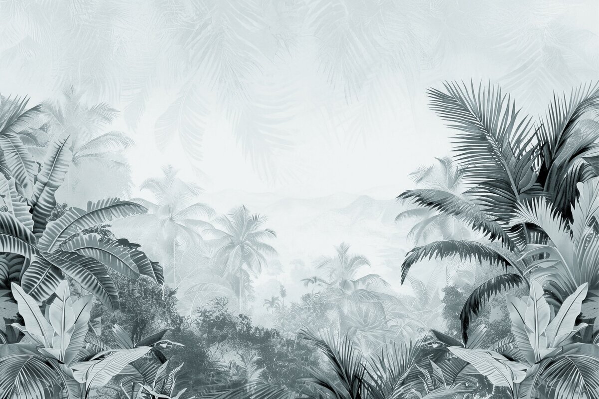 Fototapete: Panorama des üppigen Dschungels mit Palmen