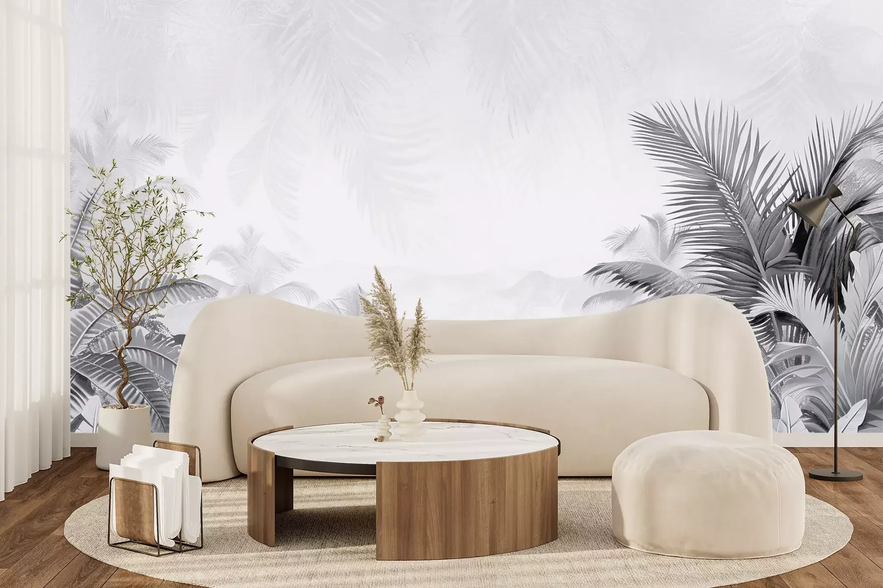 Die Fototapeten werden in Bahnen geliefert. Die Größe und die Anzahl der Bahnen, aus denen die gesamte Fototapete besteht, hängen vom gewählten Material ab. Wenn die Größe die maximale Breite des Materials überschreitet, besteht der Ausdruck aus mehreren gleich großen Bahnen.