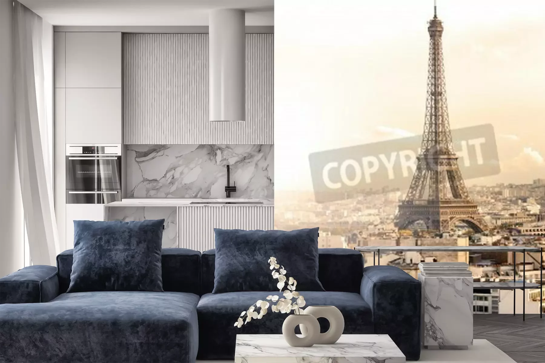 Fototapete Paris Eiffelturm am bewölkten Tag