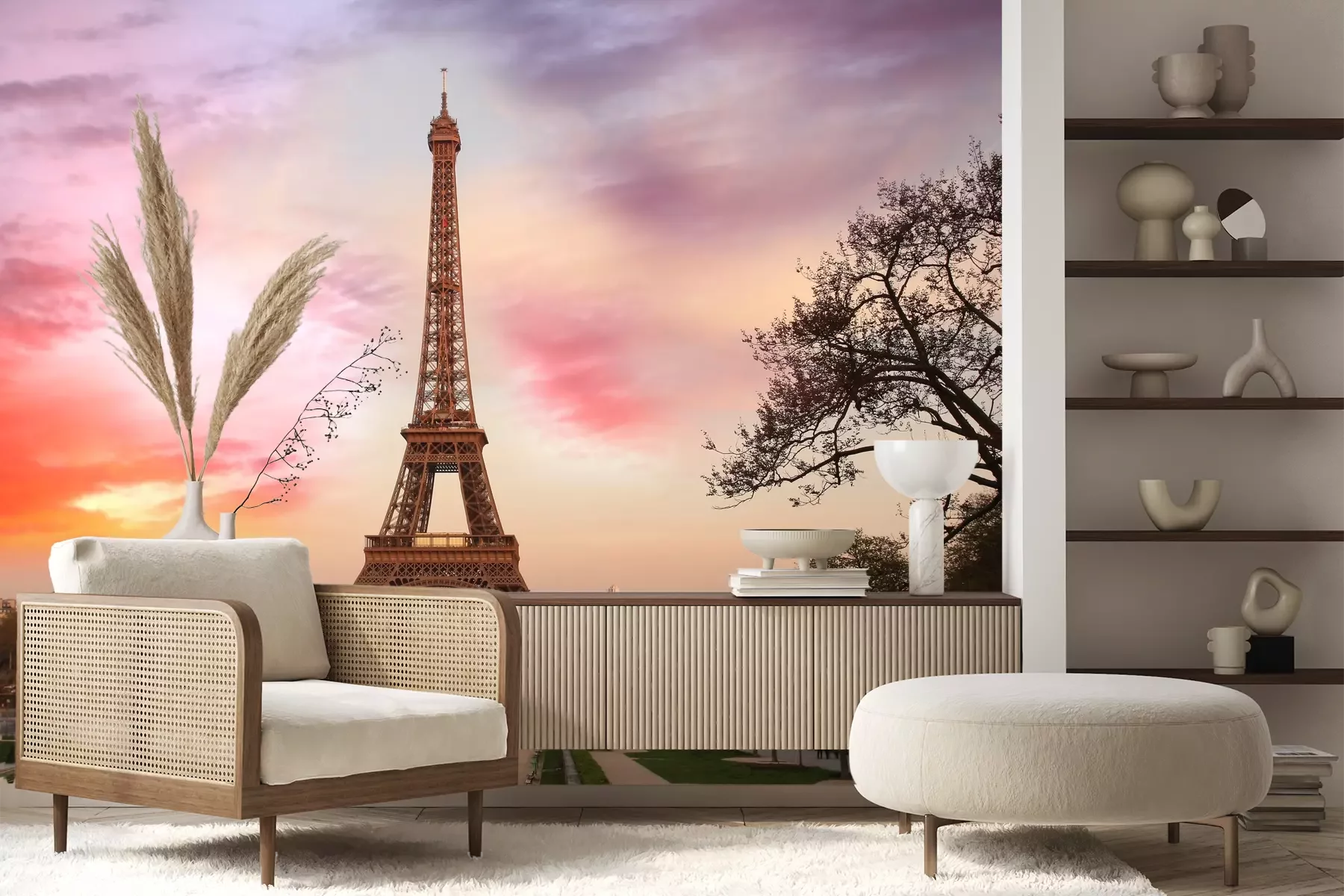 Fototapete Paris Eiffelturm bei Sonnenuntergang
