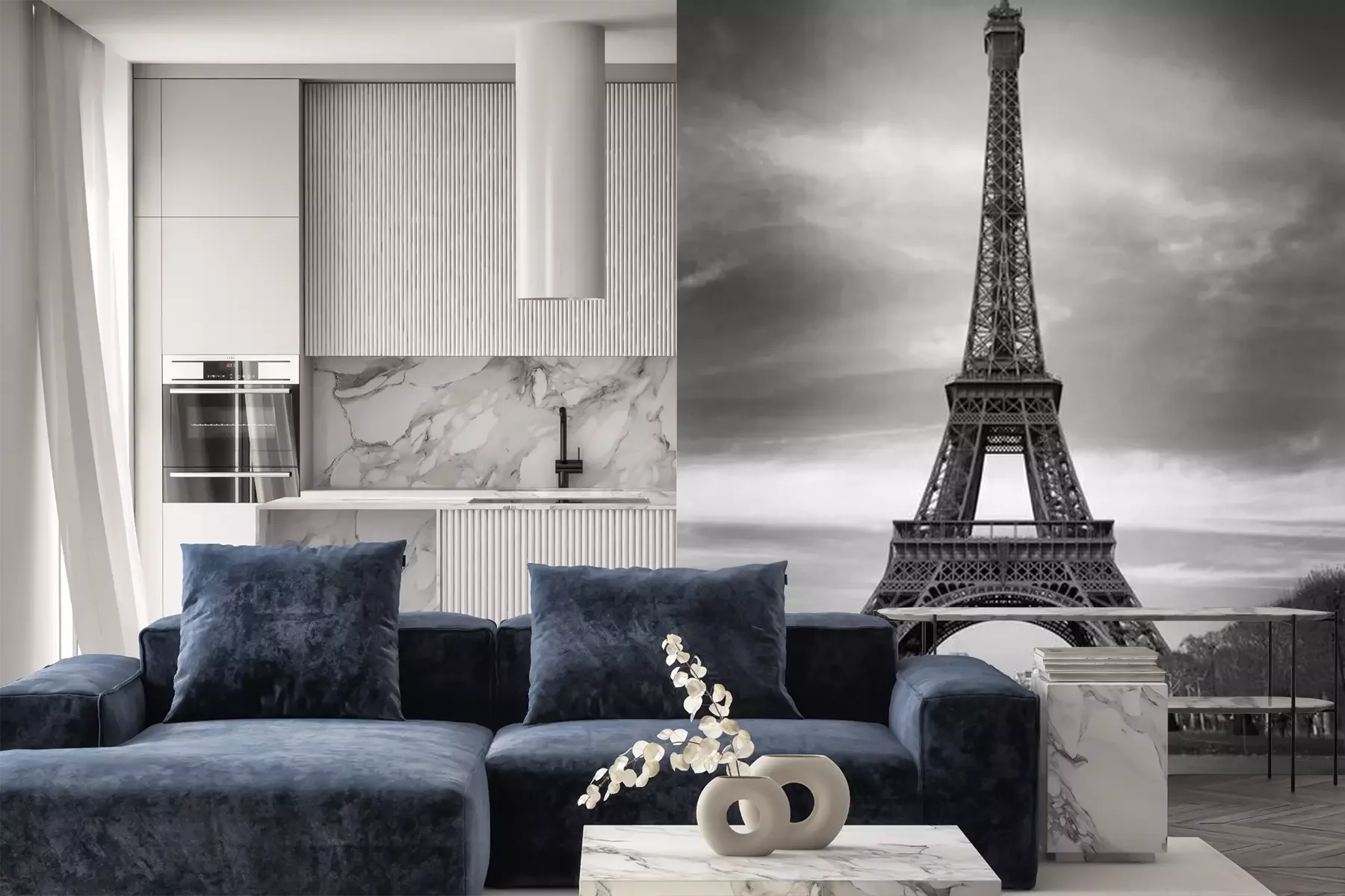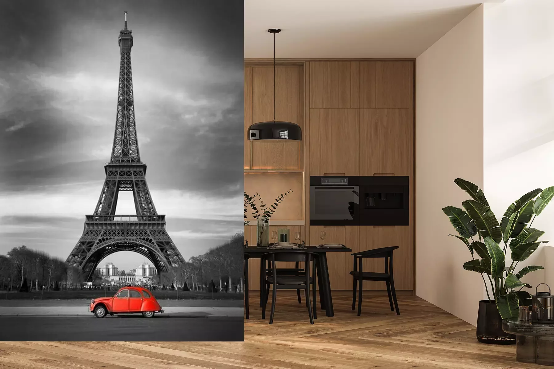 Fototapete Paris Eiffelturm und rotes Auto