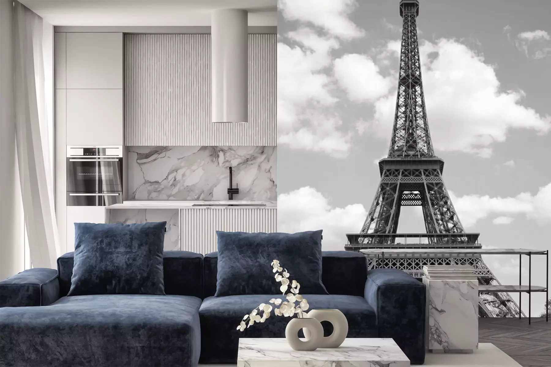 Schwarz-Weiß-Foto des EiffelturmsPoster