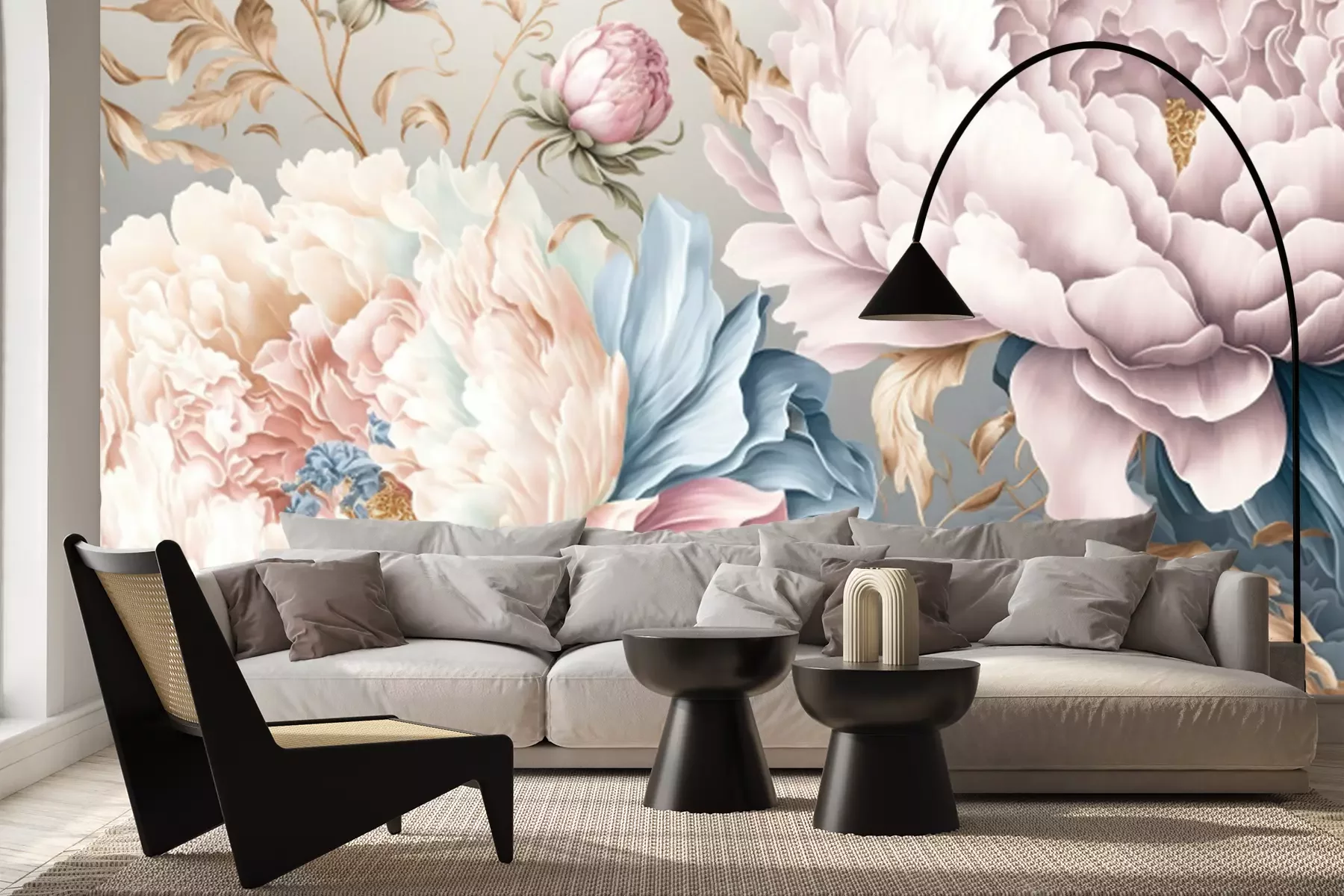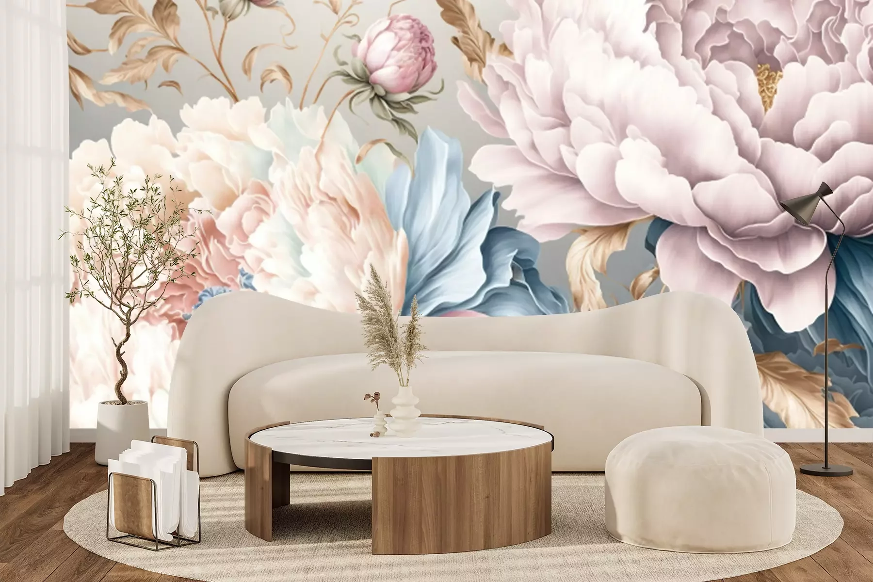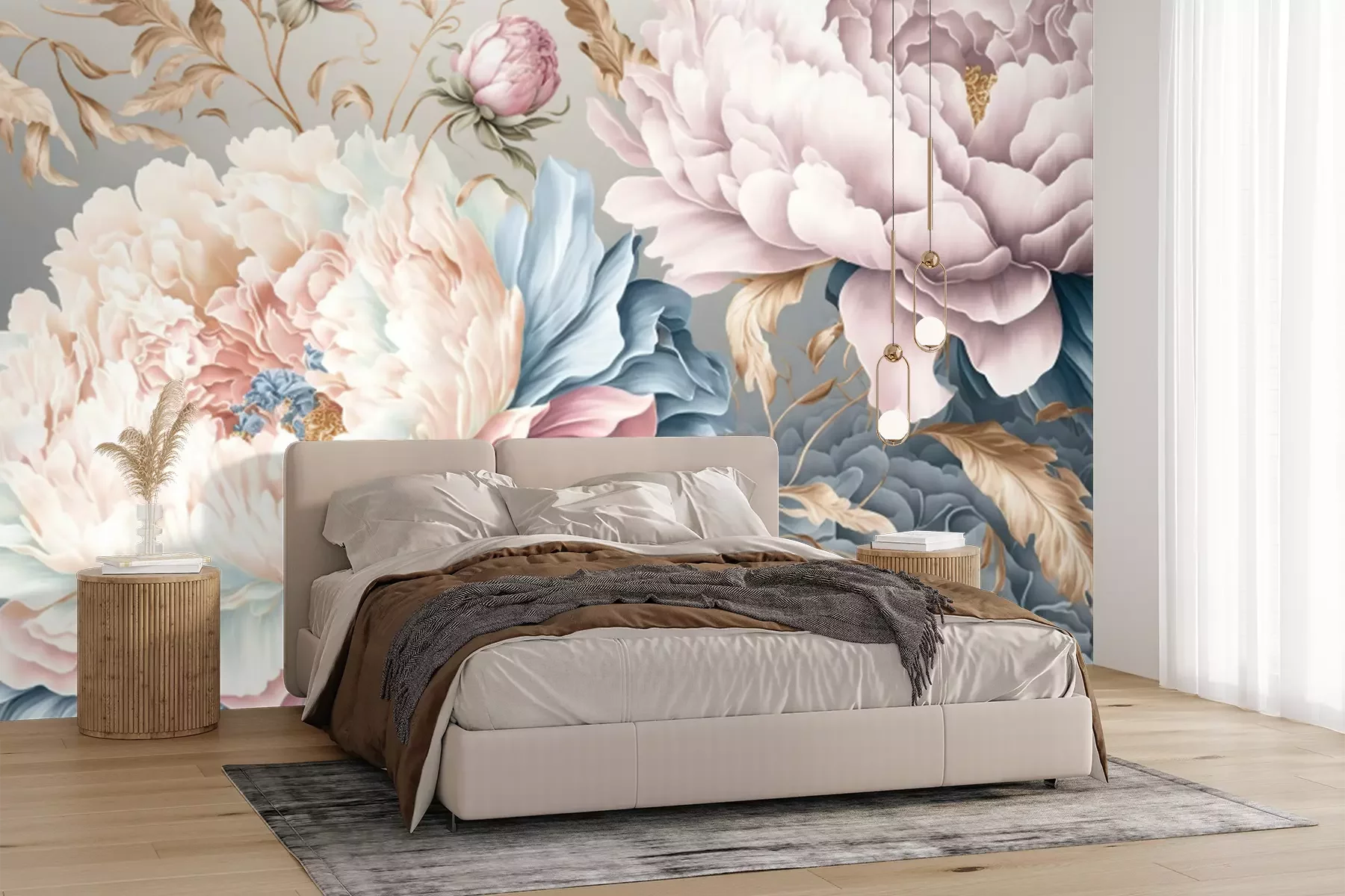 Fototapete Pastellbusch einer blühenden Pfingstrose