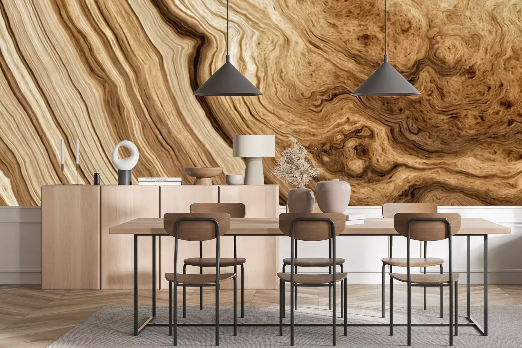 Das Material Premium+ besteht aus einer strukturierten Vinyl-Oberschicht und einem Trägermaterial (Vlies) mit einer Grammatur von 255 g/m², das kleine Unebenheiten der Wand zuverlässig kaschiert. Die feine Sandstruktur verleiht der Oberfläche eine luxuriöse Haptik, während das halbmatte Finish die Tiefe der Farben betont. Das Material ist dampfdurchlässig – so kann diese Fototapete auch in Küchen und Badezimmern eingesetzt werden. Die maximale Breite einer Tapetenbahn beträgt 100 cm. Bei größeren Abmessungen besteht die Fototapete aus mehreren gleich großen Bahnen. Der Kleber wird direkt auf die Wand aufgetragen, und die Fototapete wird auf Stoß angebracht, was für einen ästhetischen Effekt ohne sichtbare Fugen sorgt. Die Oberfläche ist pflegeleicht und kann bei Bedarf sanft mit einem feuchten Tuch abgewischt werden.