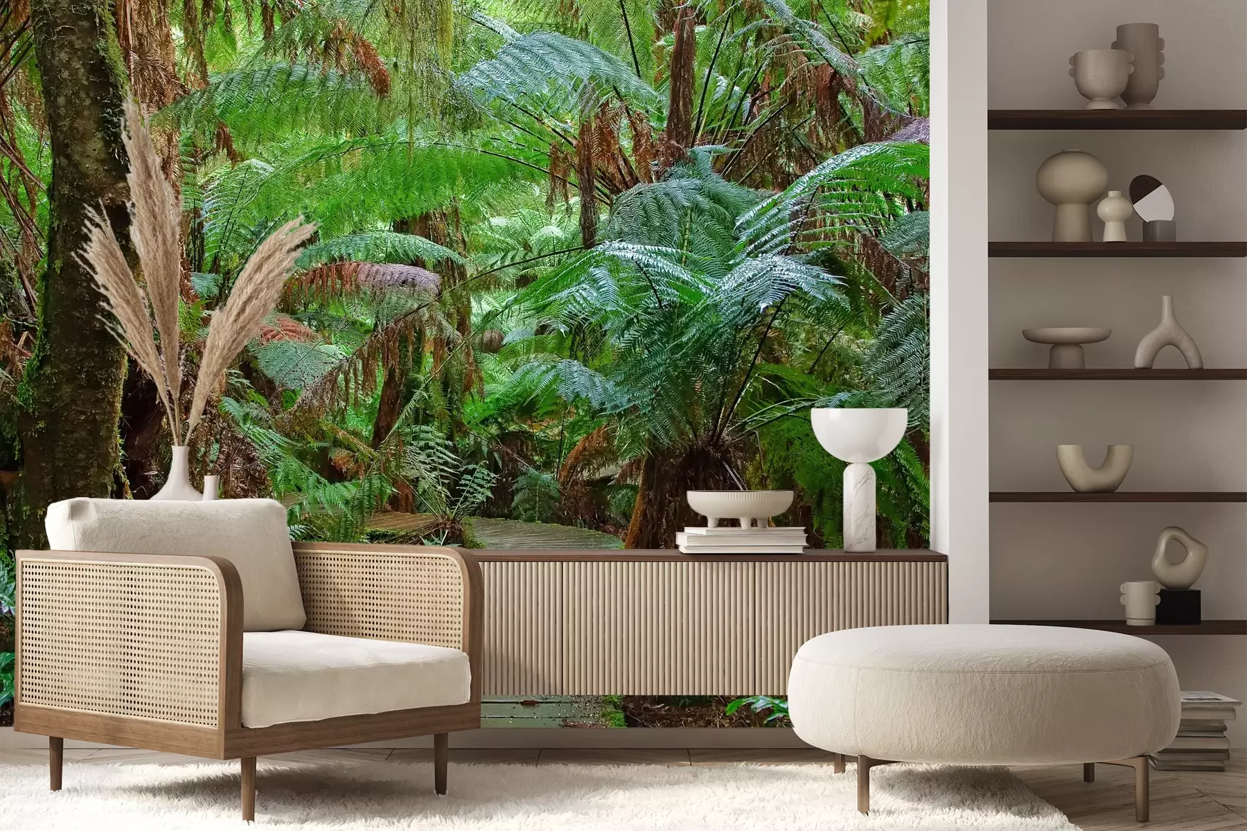 Das Material Premium+ besteht aus einer strukturierten Vinyl-Oberschicht und einem Trägermaterial (Vlies) mit einer Grammatur von 255 g/m², das kleine Unebenheiten der Wand zuverlässig kaschiert. Die feine Sandstruktur verleiht der Oberfläche eine luxuriöse Haptik, während das halbmatte Finish die Tiefe der Farben betont. Das Material ist dampfdurchlässig – so kann diese Fototapete auch in Küchen und Badezimmern eingesetzt werden. Die maximale Breite einer Tapetenbahn beträgt 100 cm. Bei größeren Abmessungen besteht die Fototapete aus mehreren gleich großen Bahnen. Der Kleber wird direkt auf die Wand aufgetragen, und die Fototapete wird auf Stoß angebracht, was für einen ästhetischen Effekt ohne sichtbare Fugen sorgt. Die Oberfläche ist pflegeleicht und kann bei Bedarf sanft mit einem feuchten Tuch abgewischt werden.