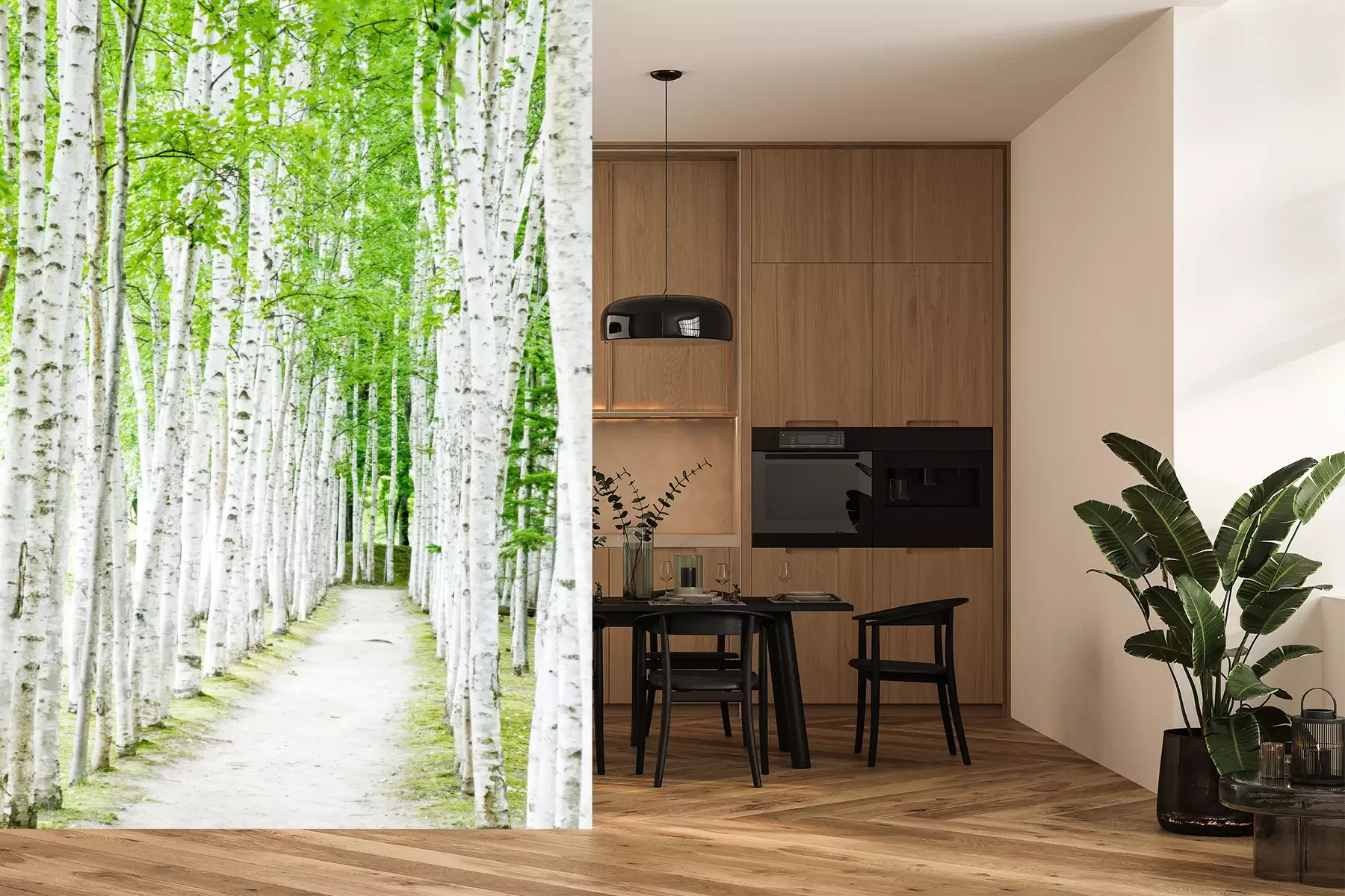 Das Material Premium+ besteht aus einer strukturierten Vinyl-Oberschicht und einem Trägermaterial (Vlies) mit einer Grammatur von 255 g/m², das kleine Unebenheiten der Wand zuverlässig kaschiert. Die feine Sandstruktur verleiht der Oberfläche eine luxuriöse Haptik, während das halbmatte Finish die Tiefe der Farben betont. Das Material ist dampfdurchlässig – so kann diese Fototapete auch in Küchen und Badezimmern eingesetzt werden. Die maximale Breite einer Tapetenbahn beträgt 100 cm. Bei größeren Abmessungen besteht die Fototapete aus mehreren gleich großen Bahnen. Der Kleber wird direkt auf die Wand aufgetragen, und die Fototapete wird auf Stoß angebracht, was für einen ästhetischen Effekt ohne sichtbare Fugen sorgt. Die Oberfläche ist pflegeleicht und kann bei Bedarf sanft mit einem feuchten Tuch abgewischt werden.