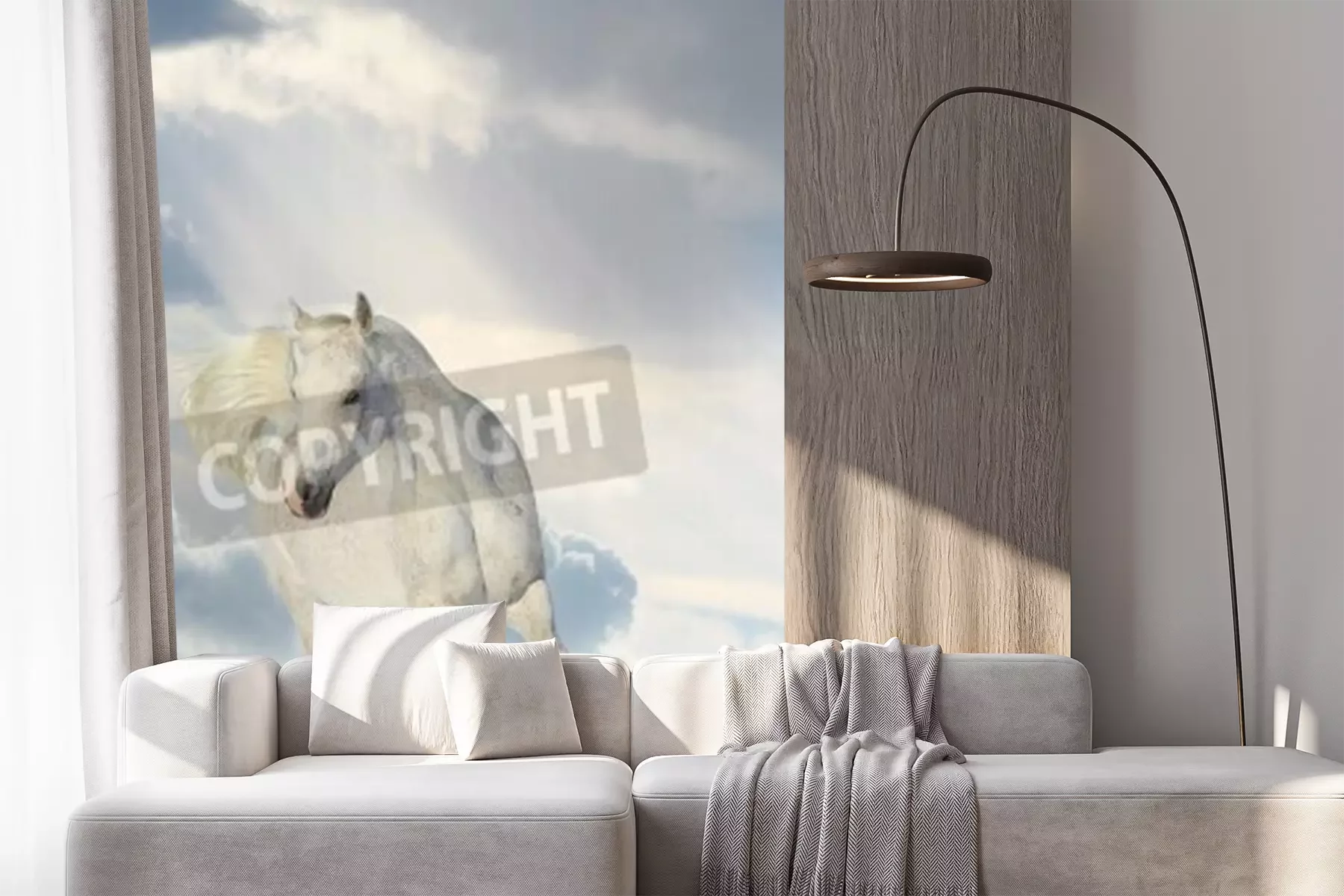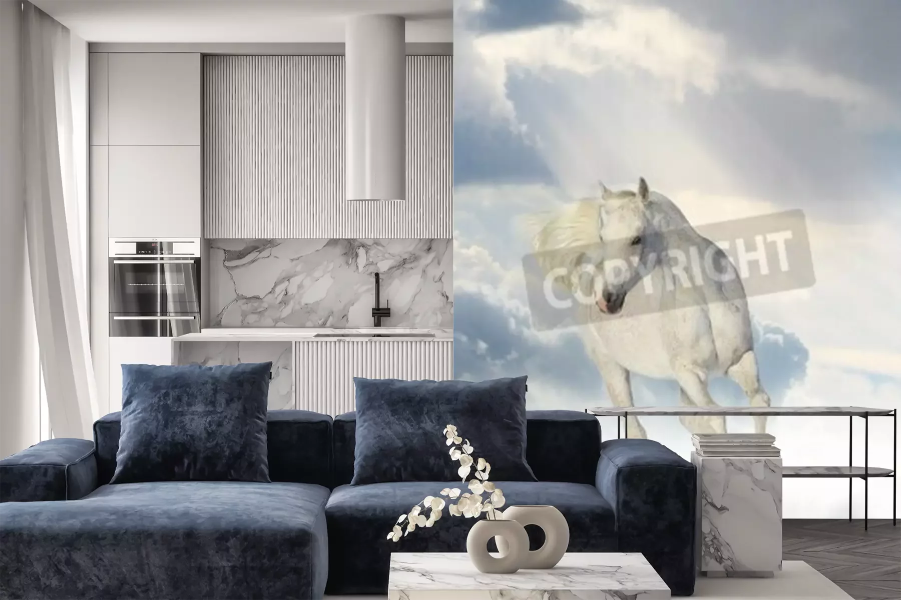Fototapete Pferd mit wolken und schnee im hintergrund