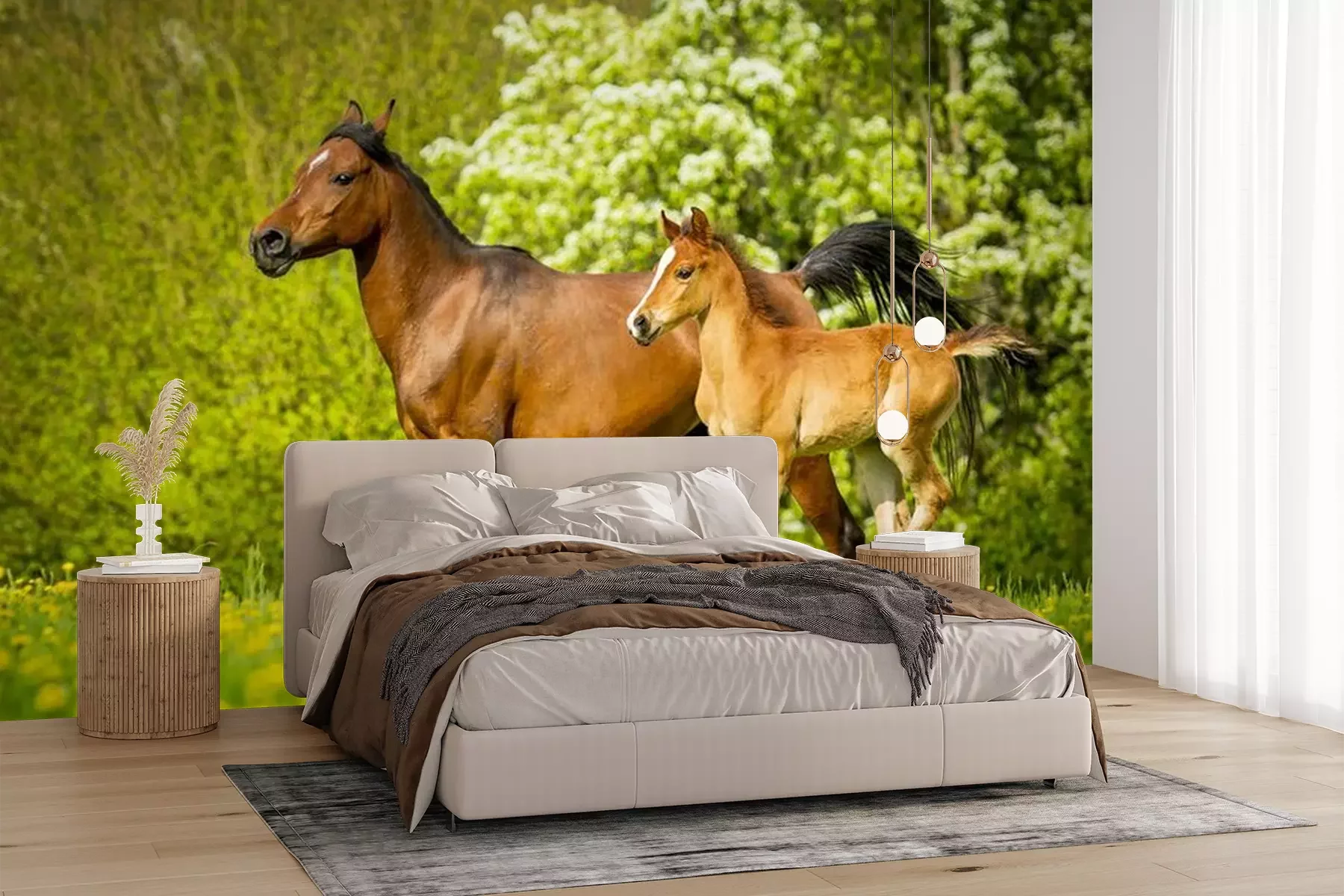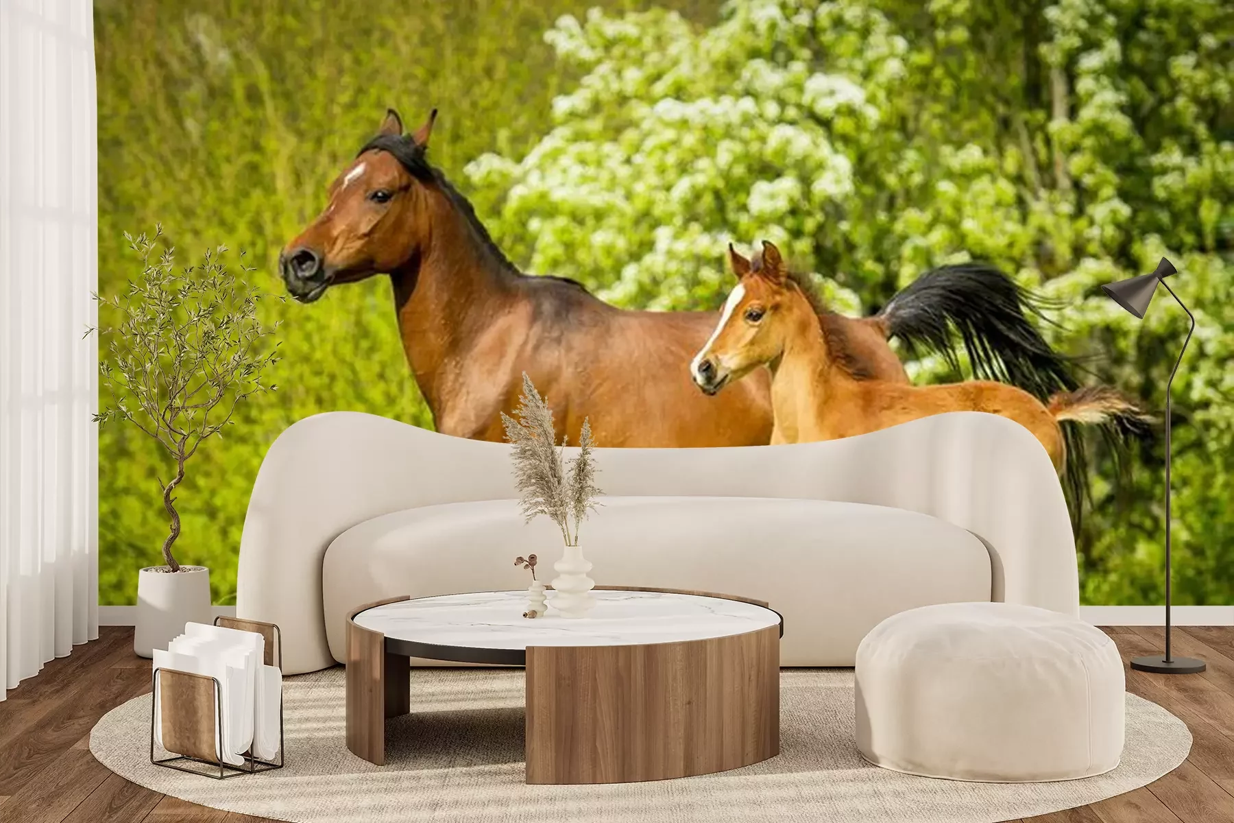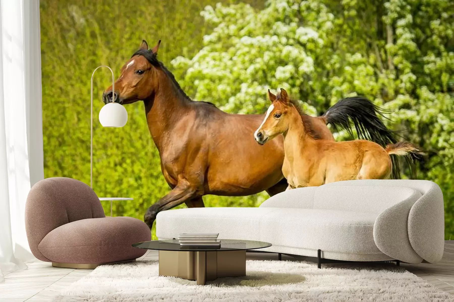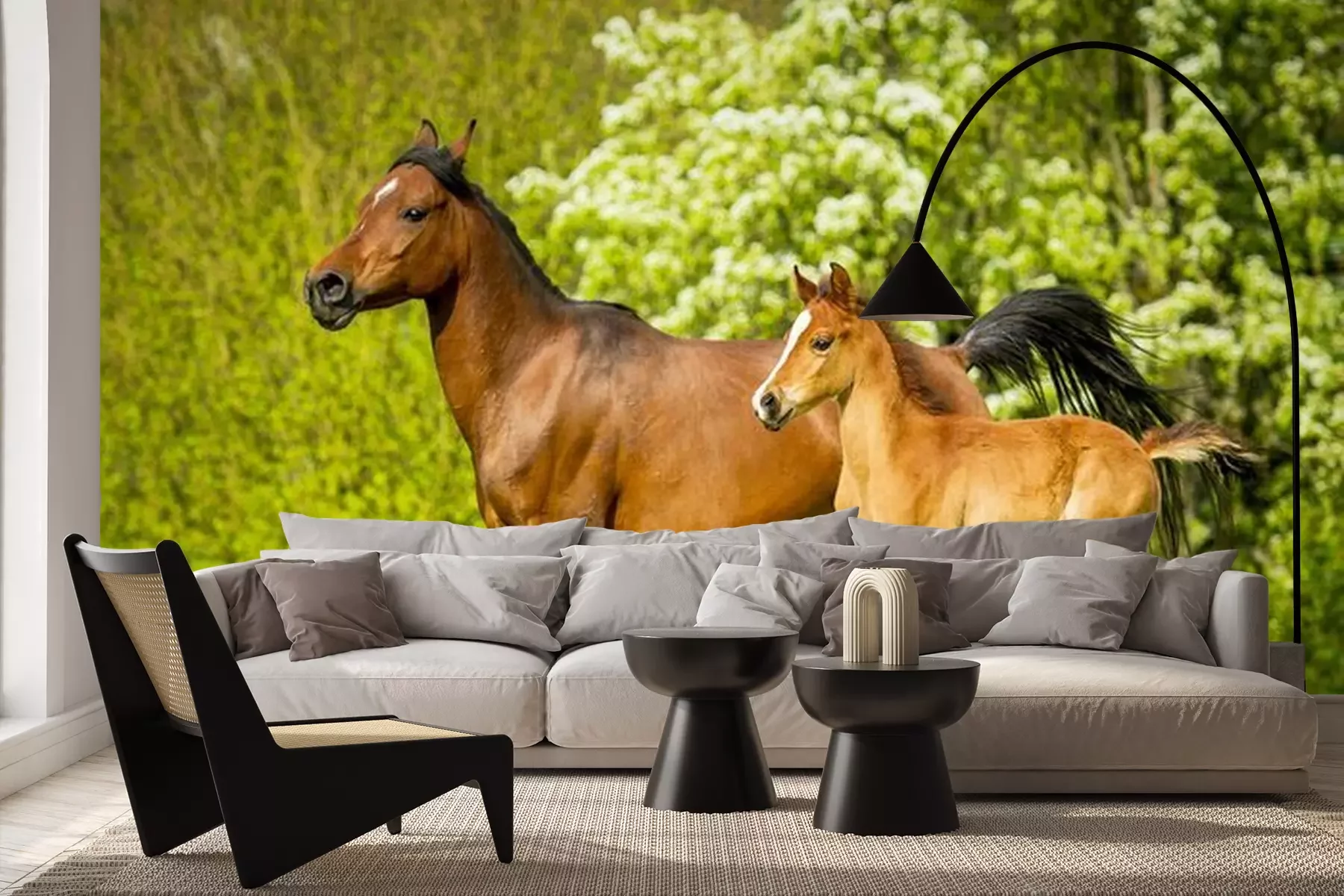 Das Material Premium+ besteht aus einer strukturierten Vinyl-Oberschicht und einem Trägermaterial (Vlies) mit einer Grammatur von 255 g/m², das kleine Unebenheiten der Wand zuverlässig kaschiert. Die feine Sandstruktur verleiht der Oberfläche eine luxuriöse Haptik, während das halbmatte Finish die Tiefe der Farben betont. Das Material ist dampfdurchlässig – so kann diese Fototapete auch in Küchen und Badezimmern eingesetzt werden. Die maximale Breite einer Tapetenbahn beträgt 100 cm. Bei größeren Abmessungen besteht die Fototapete aus mehreren gleich großen Bahnen. Der Kleber wird direkt auf die Wand aufgetragen, und die Fototapete wird auf Stoß angebracht, was für einen ästhetischen Effekt ohne sichtbare Fugen sorgt. Die Oberfläche ist pflegeleicht und kann bei Bedarf sanft mit einem feuchten Tuch abgewischt werden.