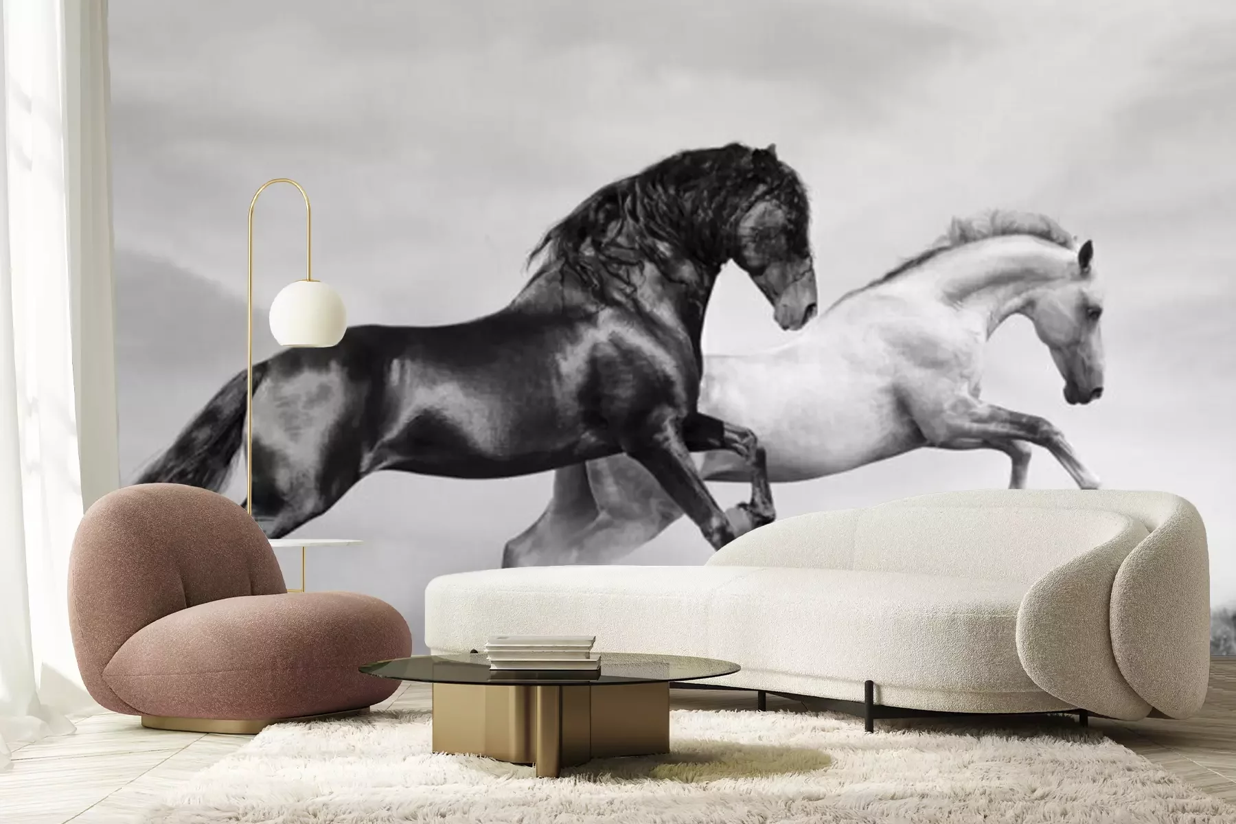 Drei weiße pferde im galoppProblemlose Lieferung durch vertrauenswürdige Spediteure