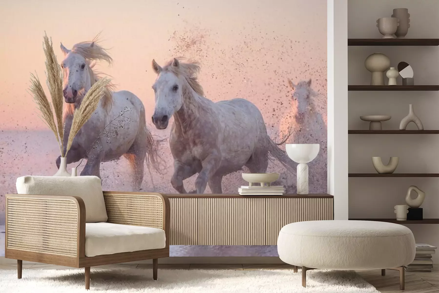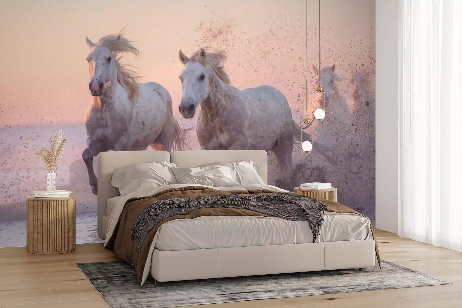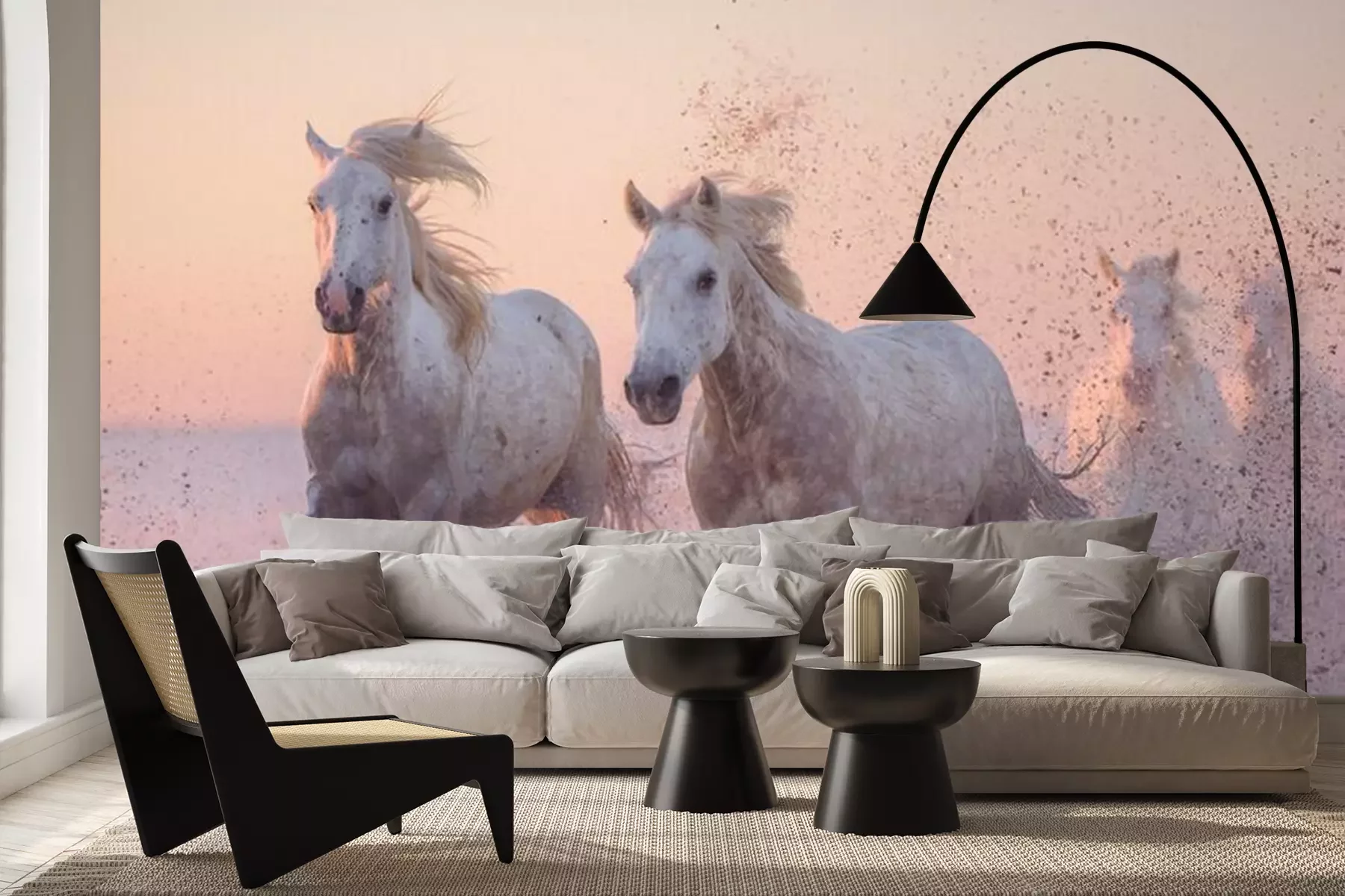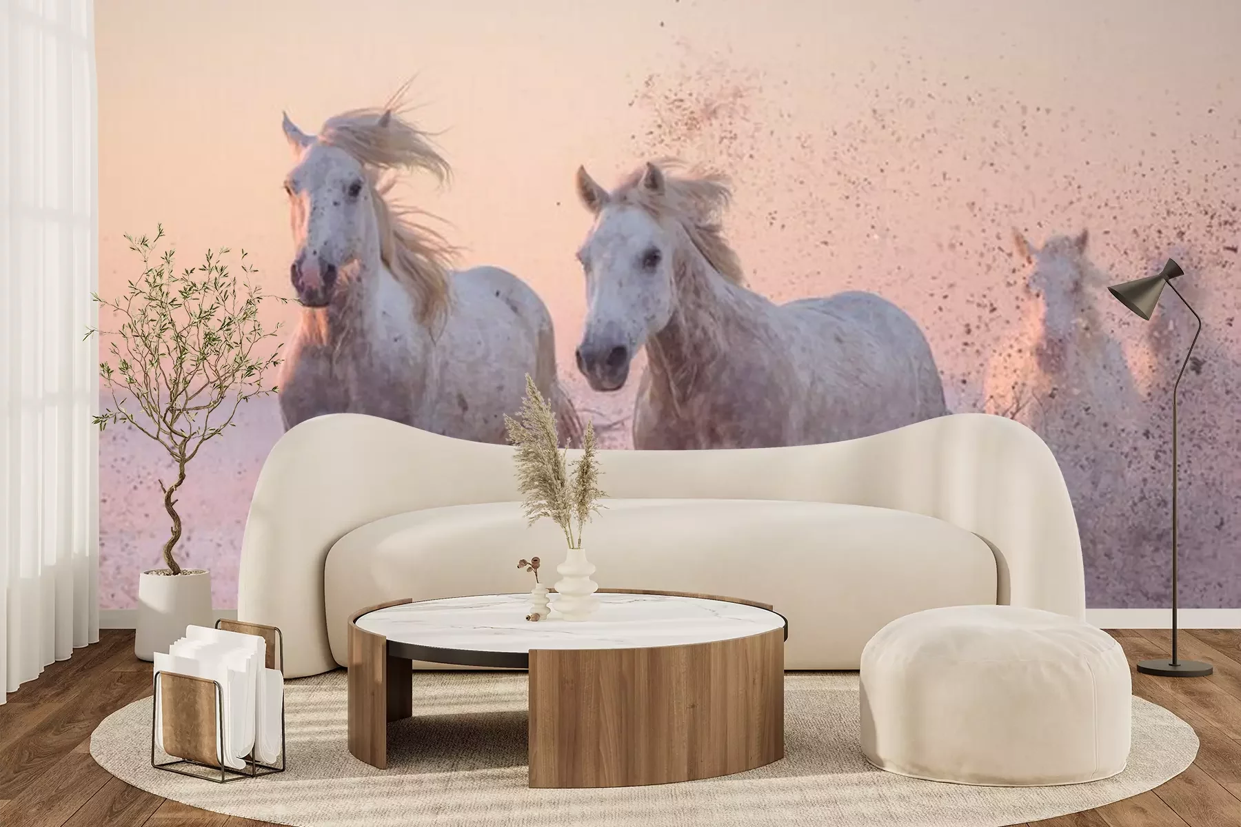 Fototapete Pferde mit pastellfarbenem himmel im hintergrund
