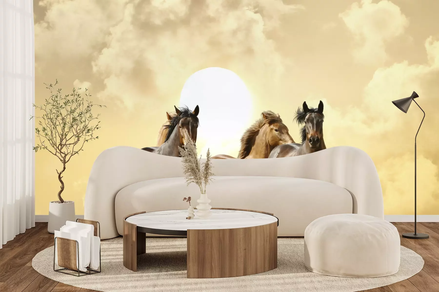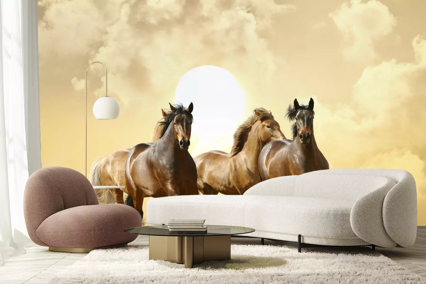 Fototapete Pferdeherde in der sonne