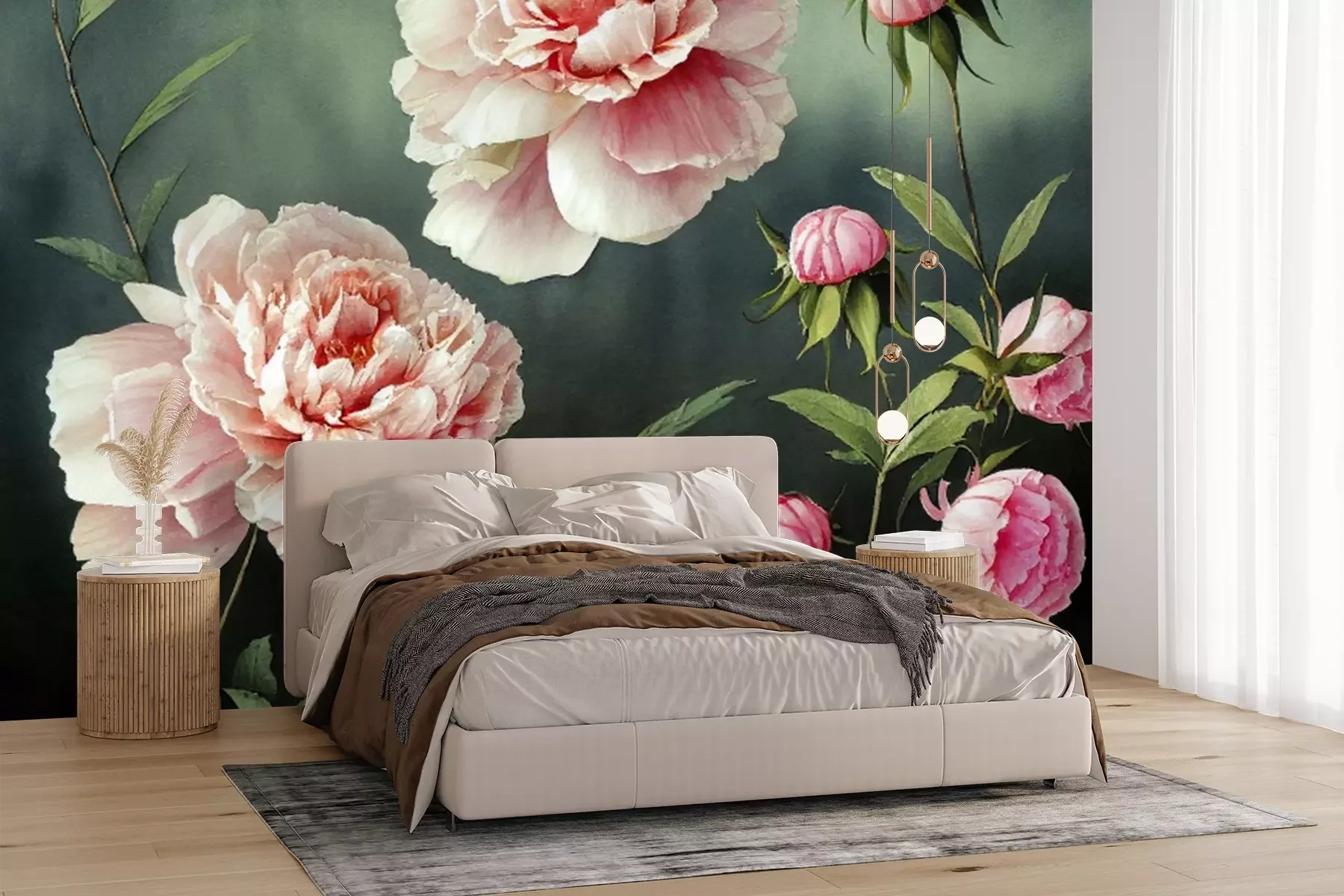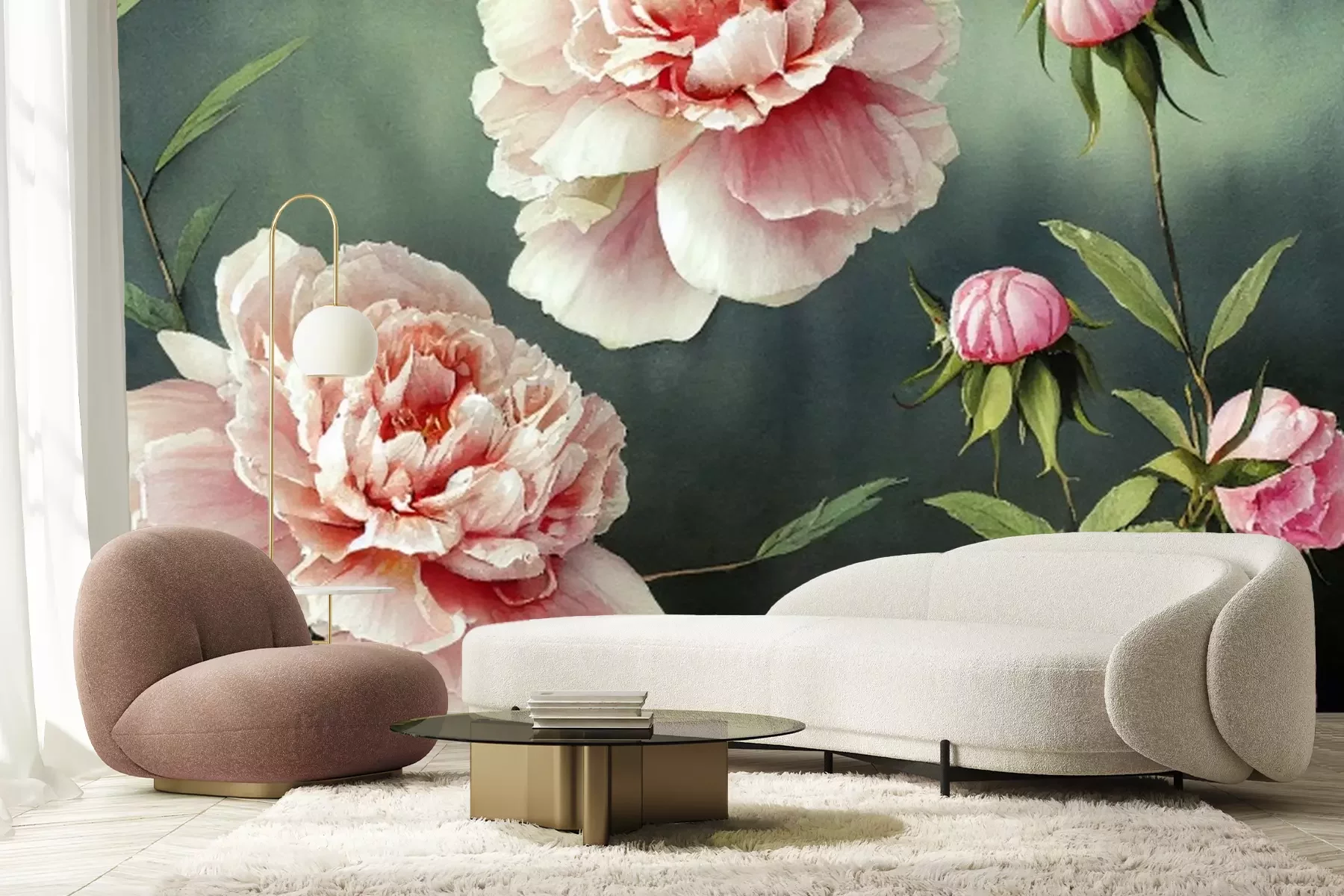 Fototapete Pfingstrosenblüte auf einem Zweig