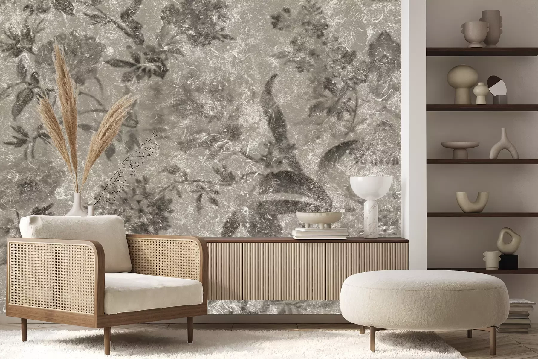 Das Material Premium+ besteht aus einer strukturierten Vinyl-Oberschicht und einem Trägermaterial (Vlies) mit einer Grammatur von 255 g/m², das kleine Unebenheiten der Wand zuverlässig kaschiert. Die feine Sandstruktur verleiht der Oberfläche eine luxuriöse Haptik, während das halbmatte Finish die Tiefe der Farben betont. Das Material ist dampfdurchlässig – so kann diese Fototapete auch in Küchen und Badezimmern eingesetzt werden. Die maximale Breite einer Tapetenbahn beträgt 100 cm. Bei größeren Abmessungen besteht die Fototapete aus mehreren gleich großen Bahnen. Der Kleber wird direkt auf die Wand aufgetragen, und die Fototapete wird auf Stoß angebracht, was für einen ästhetischen Effekt ohne sichtbare Fugen sorgt. Die Oberfläche ist pflegeleicht und kann bei Bedarf sanft mit einem feuchten Tuch abgewischt werden.