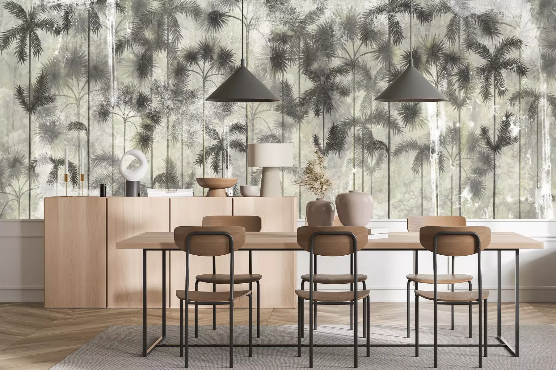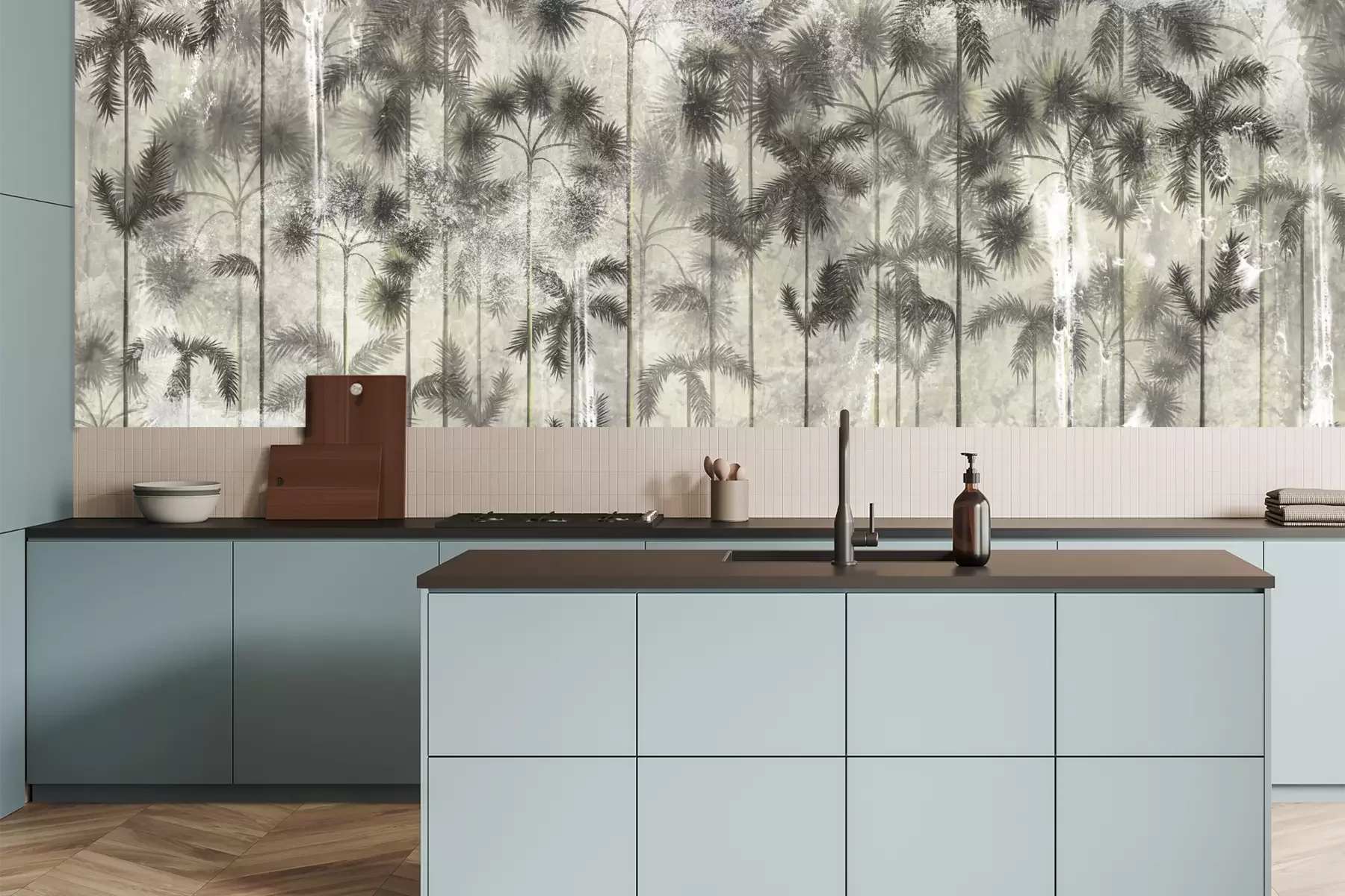 Das Material Premium+ besteht aus einer strukturierten Vinyl-Oberschicht und einem Trägermaterial (Vlies) mit einer Grammatur von 255 g/m², das kleine Unebenheiten der Wand zuverlässig kaschiert. Die feine Sandstruktur verleiht der Oberfläche eine luxuriöse Haptik, während das halbmatte Finish die Tiefe der Farben betont. Das Material ist dampfdurchlässig – so kann diese Fototapete auch in Küchen und Badezimmern eingesetzt werden. Die maximale Breite einer Tapetenbahn beträgt 100 cm. Bei größeren Abmessungen besteht die Fototapete aus mehreren gleich großen Bahnen. Der Kleber wird direkt auf die Wand aufgetragen, und die Fototapete wird auf Stoß angebracht, was für einen ästhetischen Effekt ohne sichtbare Fugen sorgt. Die Oberfläche ist pflegeleicht und kann bei Bedarf sanft mit einem feuchten Tuch abgewischt werden.