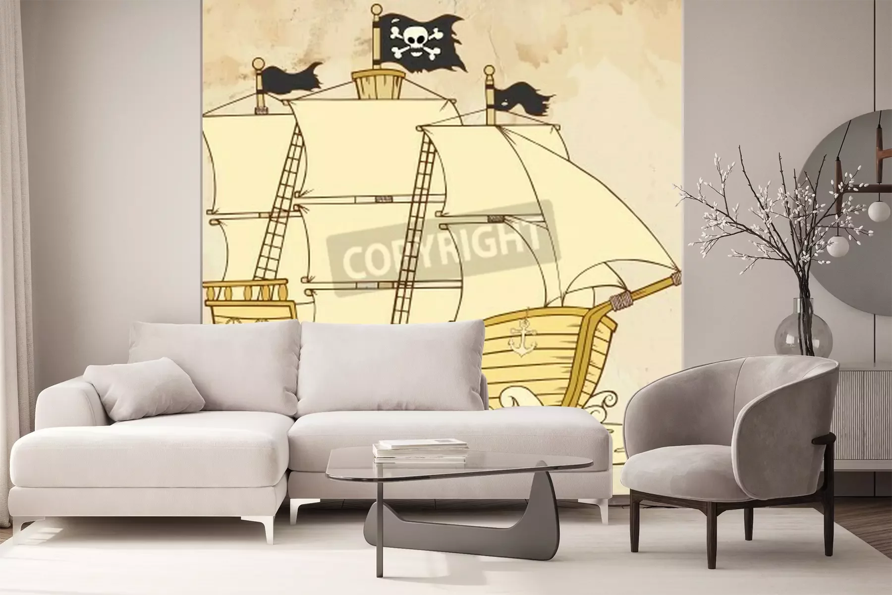Fototapete Piratenschiff auf gealtertem Hintergrund