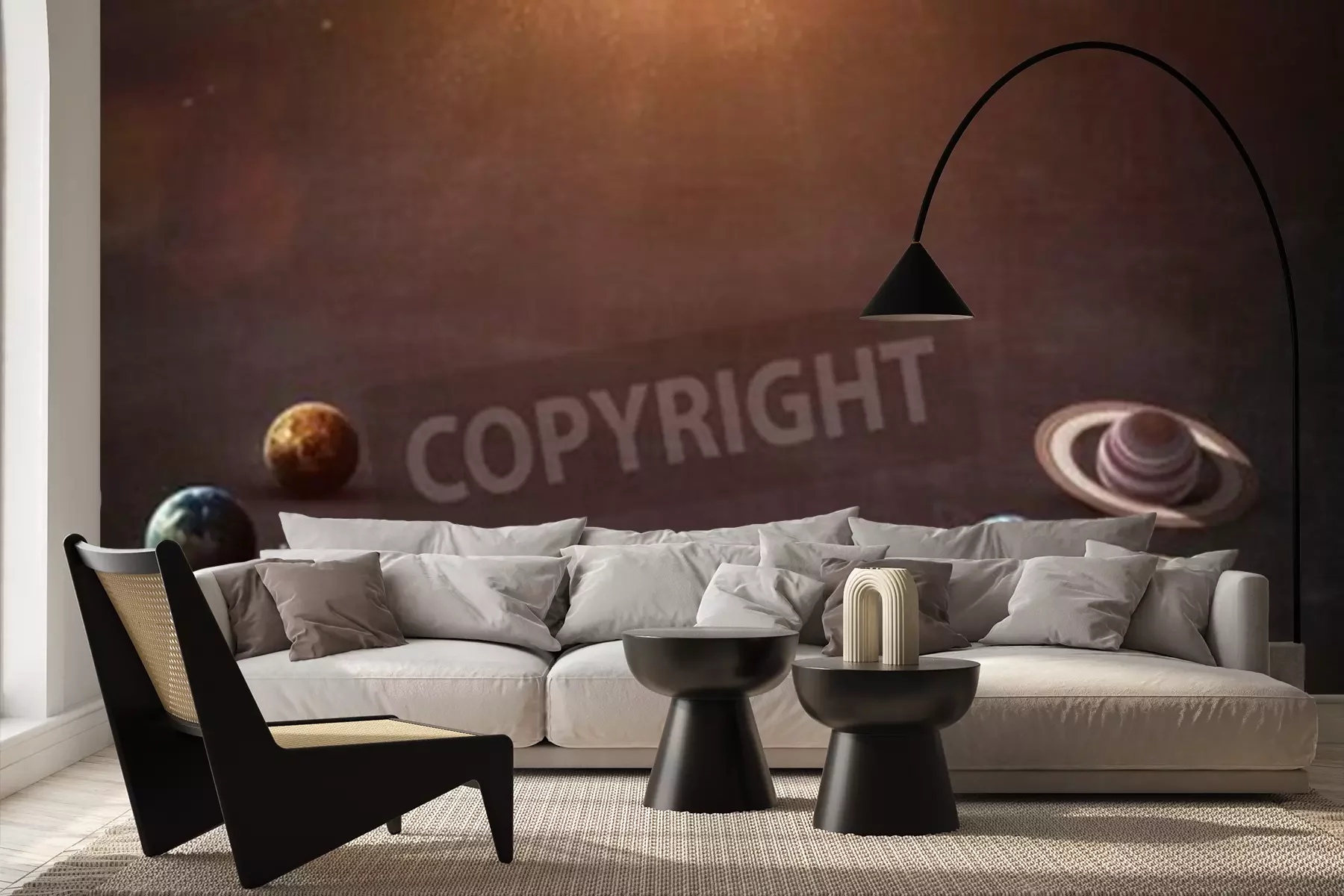 Fototapete Planeten des Sonnensystems im brauen Hintergrund
