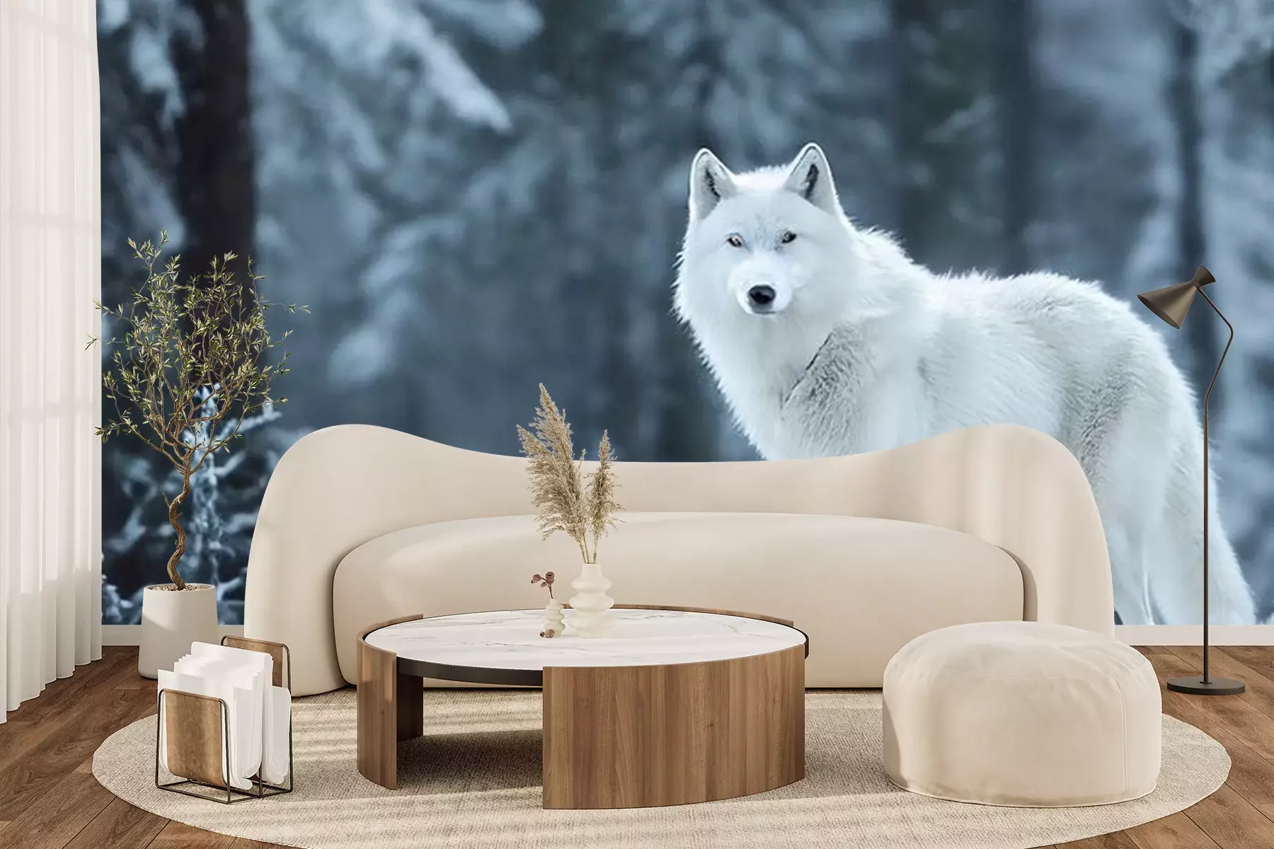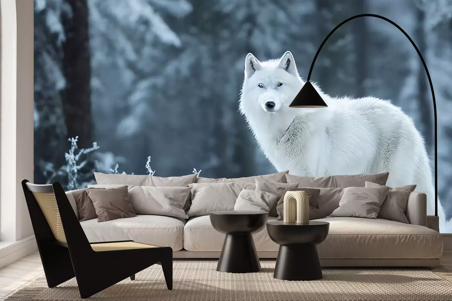 Fototapete Polarwolf im Winterwald