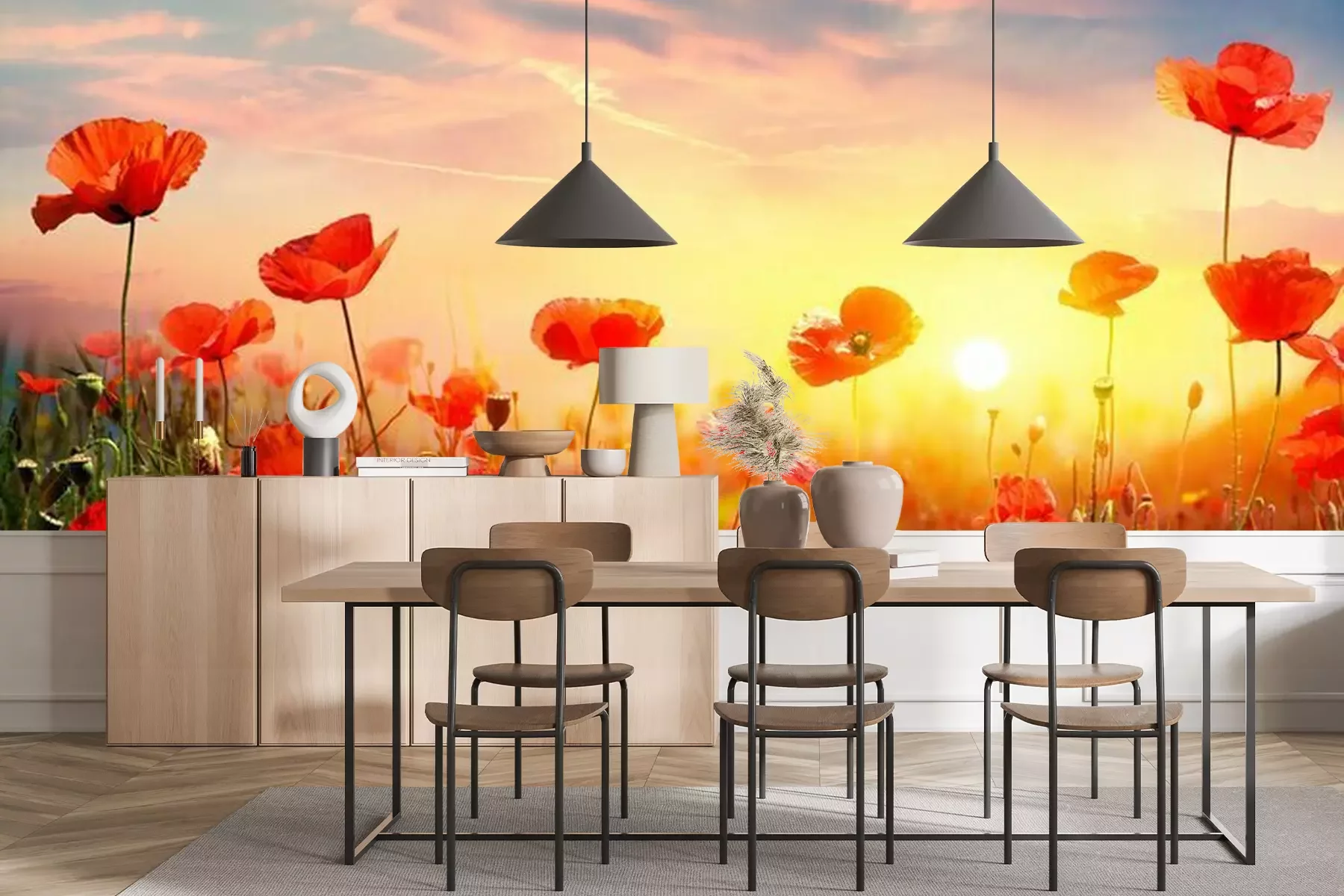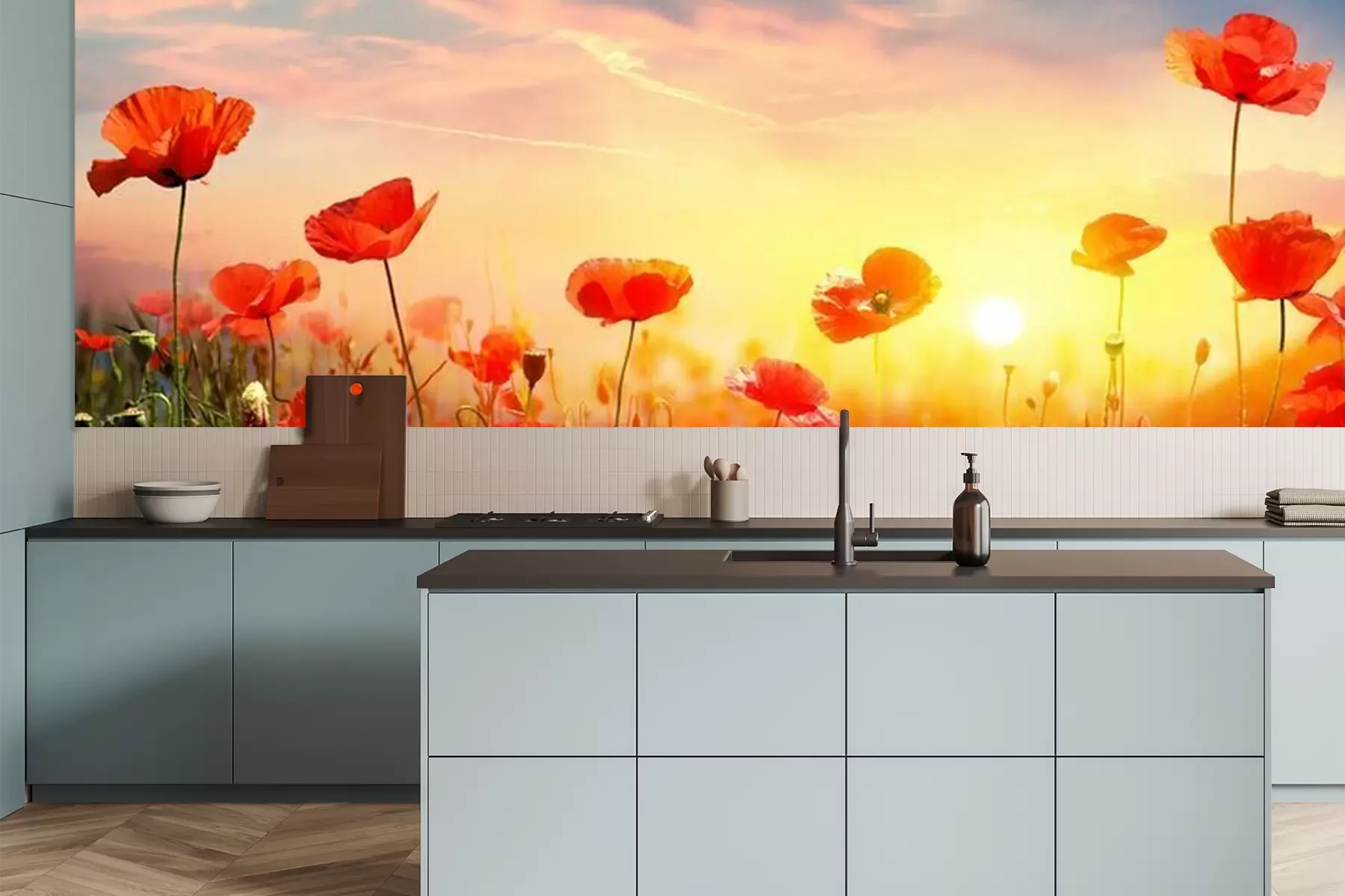 Mohnblumen auf einer Wiese im SonnenlichtFototapete