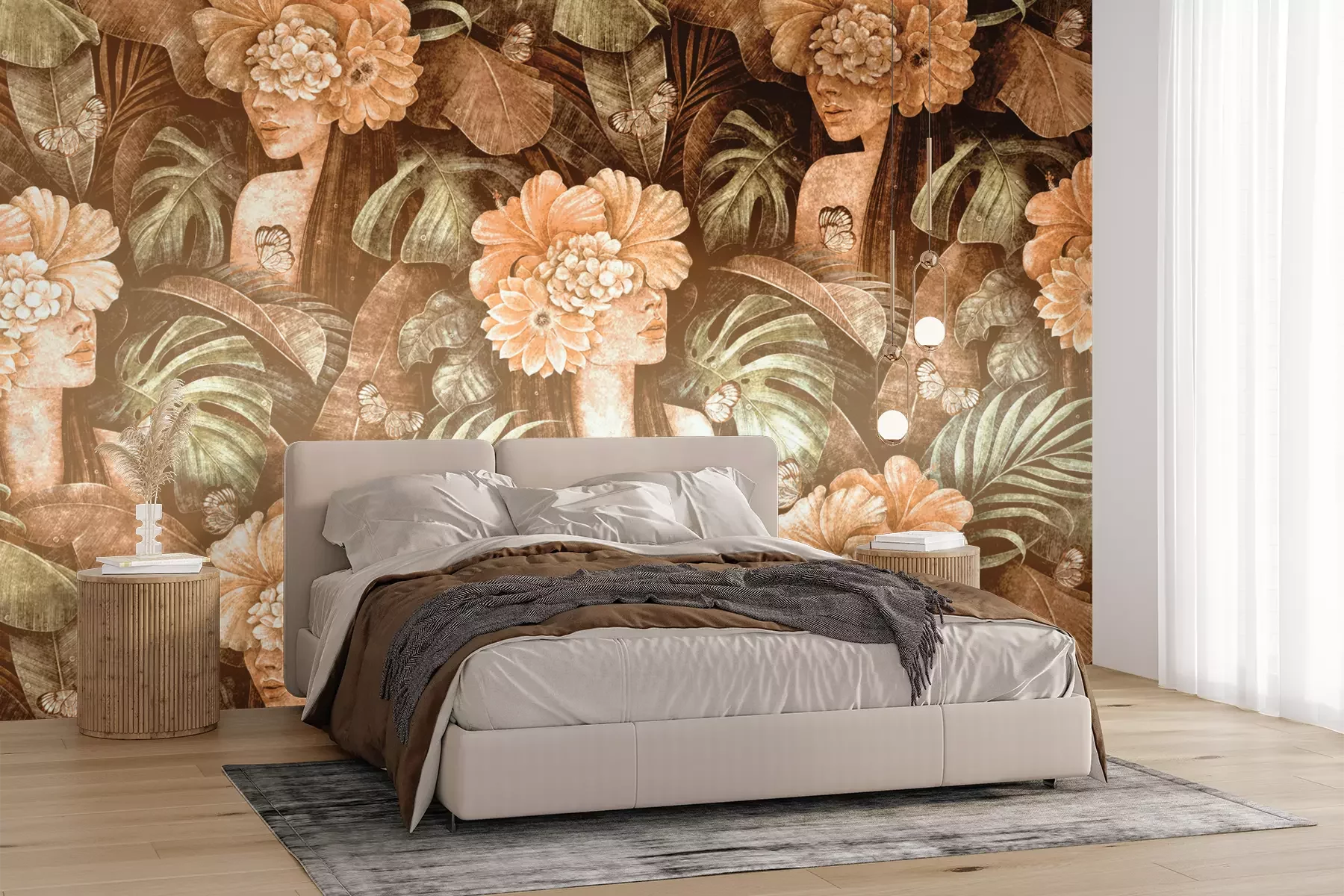 Das Material Premium+ besteht aus einer strukturierten Vinyl-Oberschicht und einem Trägermaterial (Vlies) mit einer Grammatur von 255 g/m², das kleine Unebenheiten der Wand zuverlässig kaschiert. Die feine Sandstruktur verleiht der Oberfläche eine luxuriöse Haptik, während das halbmatte Finish die Tiefe der Farben betont. Das Material ist dampfdurchlässig – so kann diese Fototapete auch in Küchen und Badezimmern eingesetzt werden. Die maximale Breite einer Tapetenbahn beträgt 100 cm. Bei größeren Abmessungen besteht die Fototapete aus mehreren gleich großen Bahnen. Der Kleber wird direkt auf die Wand aufgetragen, und die Fototapete wird auf Stoß angebracht, was für einen ästhetischen Effekt ohne sichtbare Fugen sorgt. Die Oberfläche ist pflegeleicht und kann bei Bedarf sanft mit einem feuchten Tuch abgewischt werden.