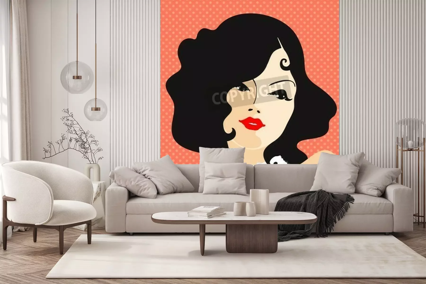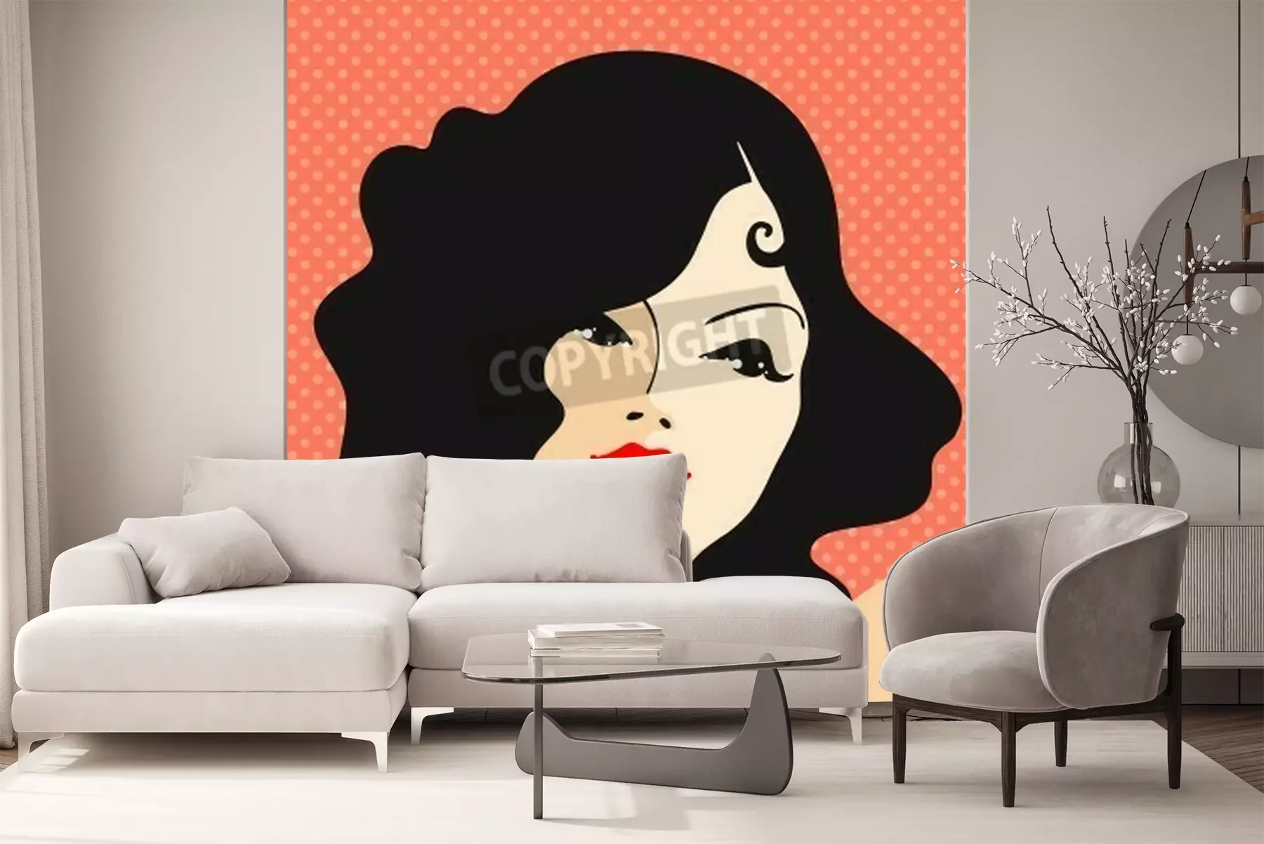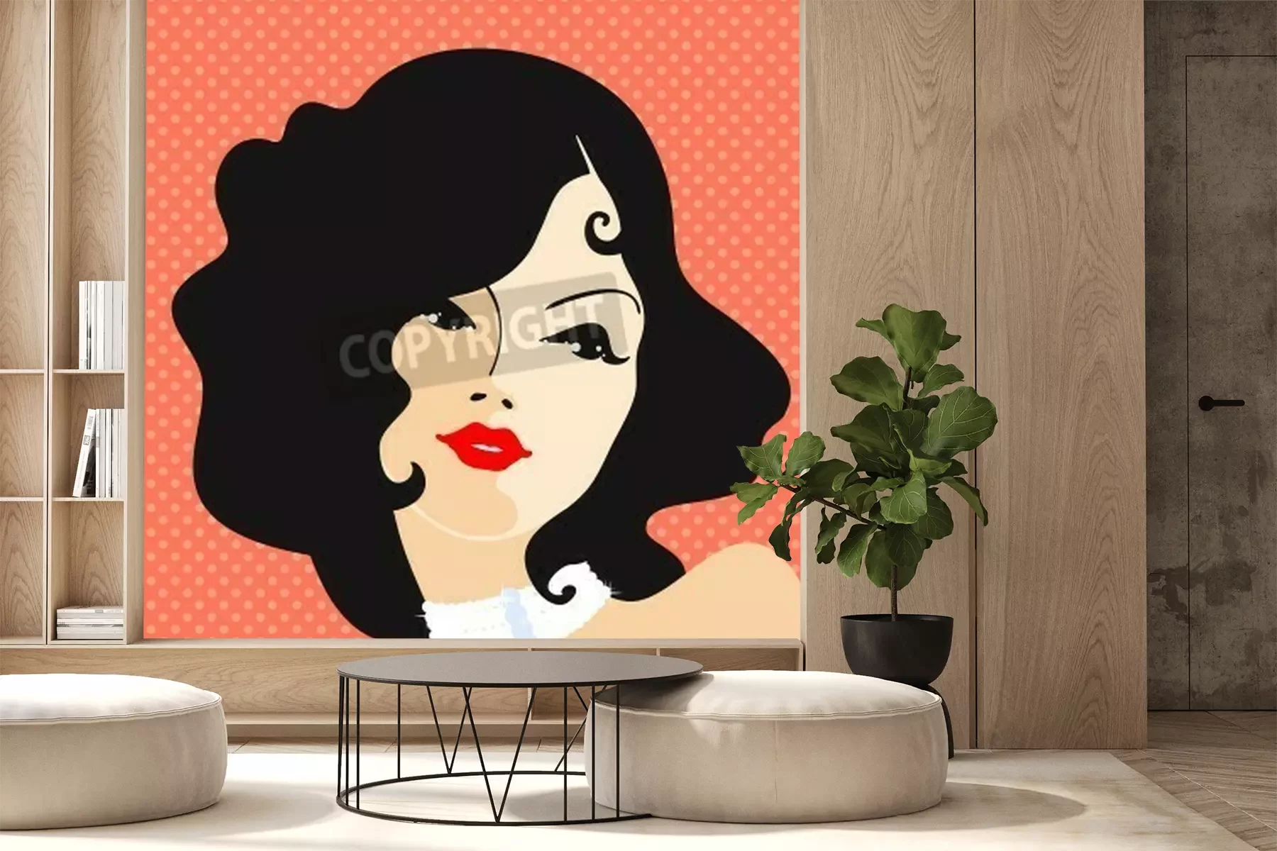 Fototapete Porträt einer schönen Frau auf rotem Hintergrund