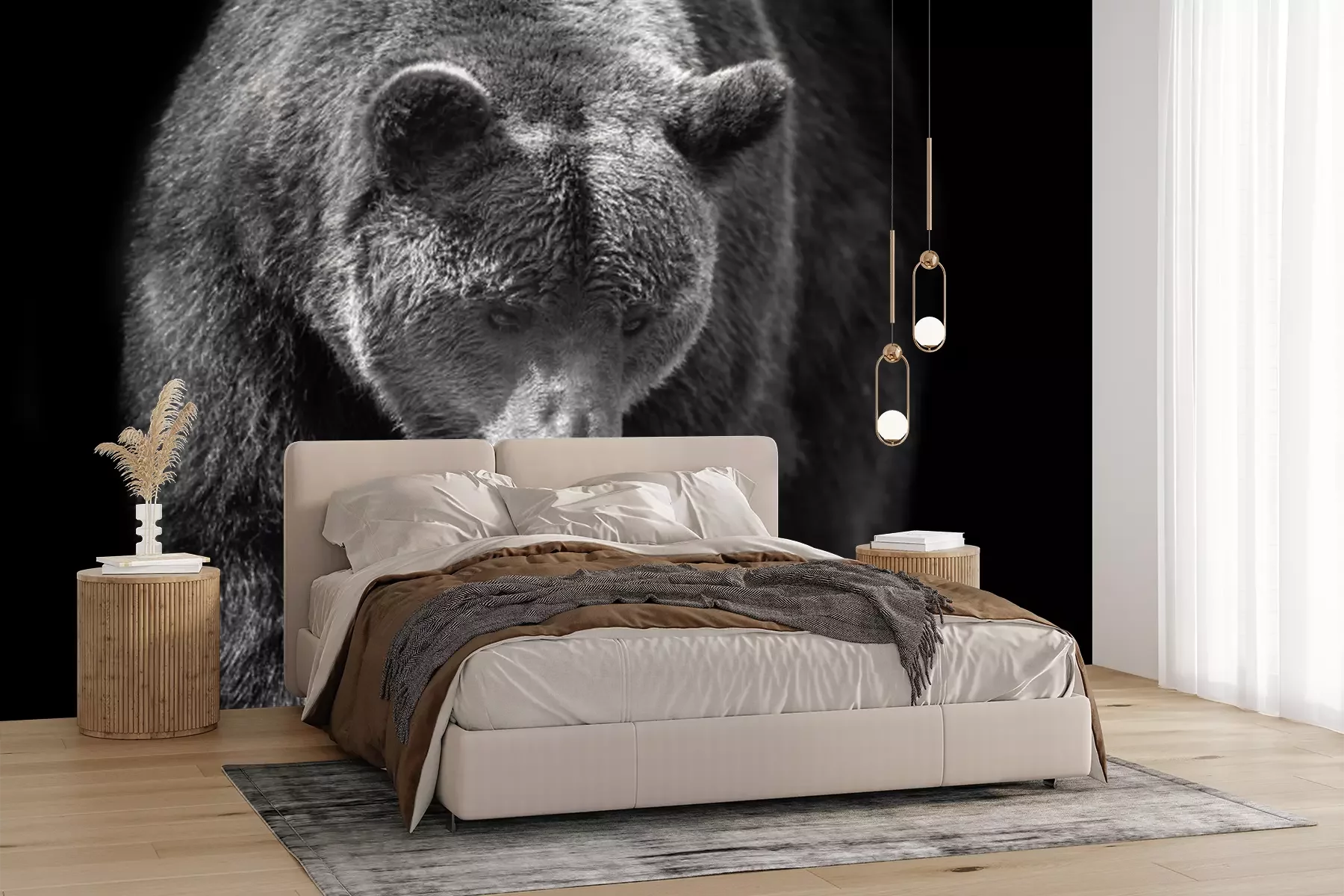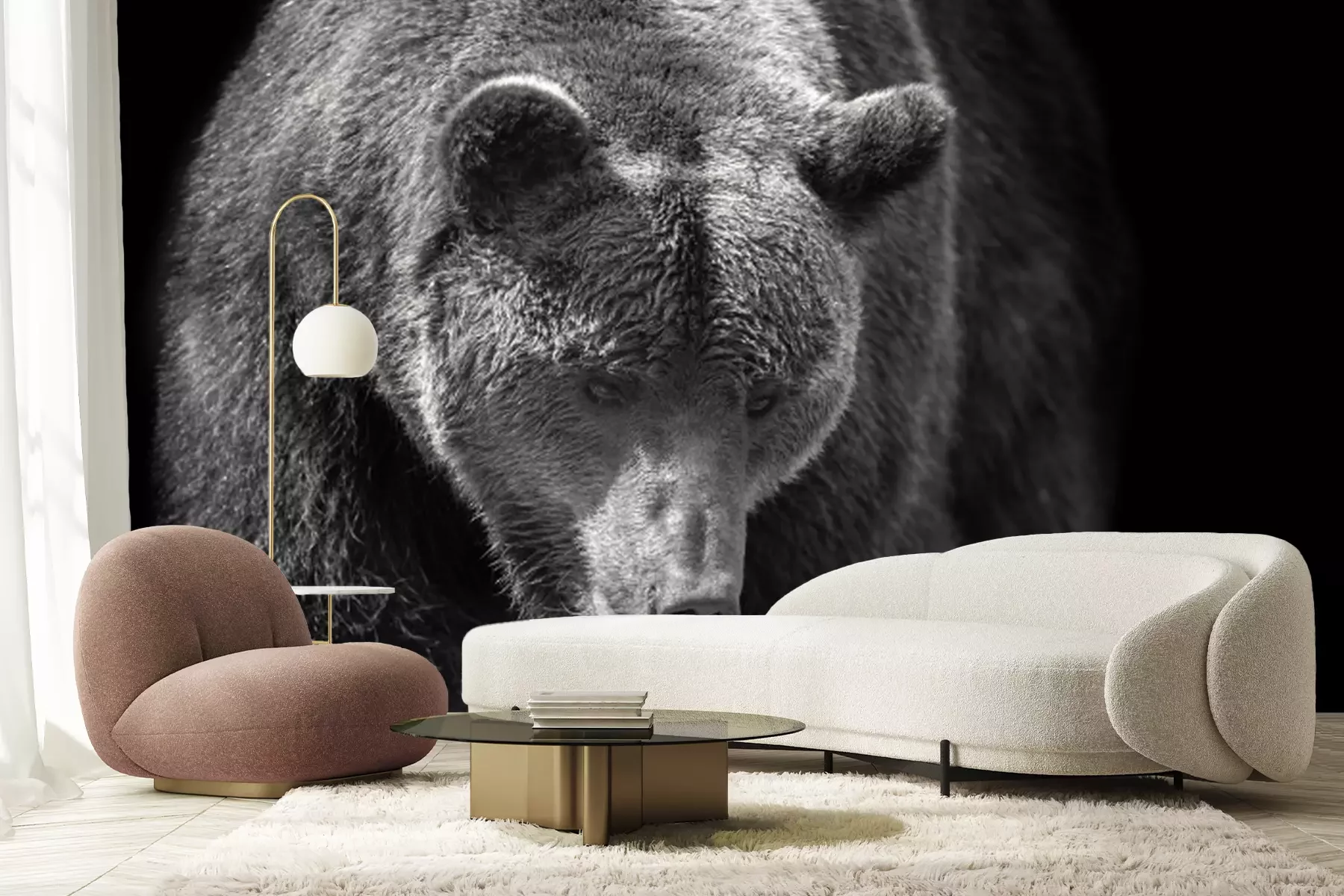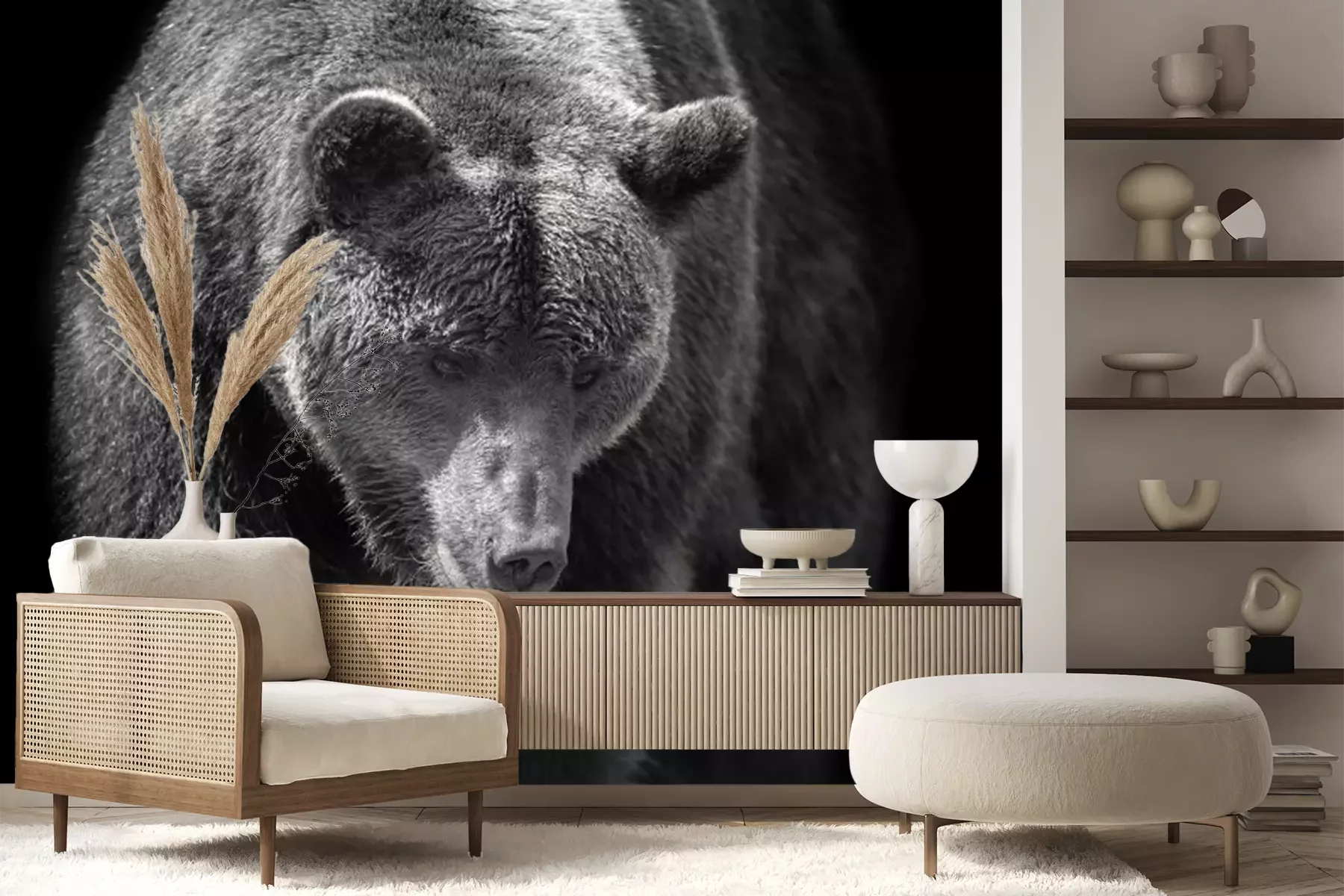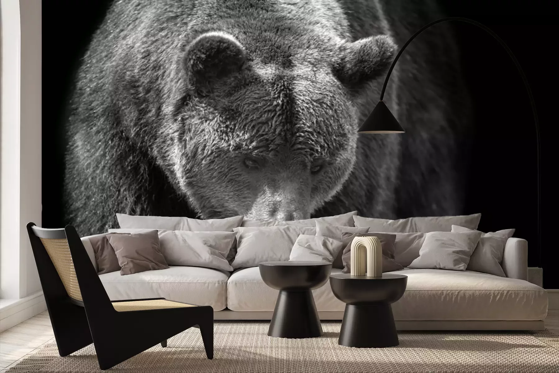 Fototapete Porträt eines Bären auf schwarzem Hintergrund