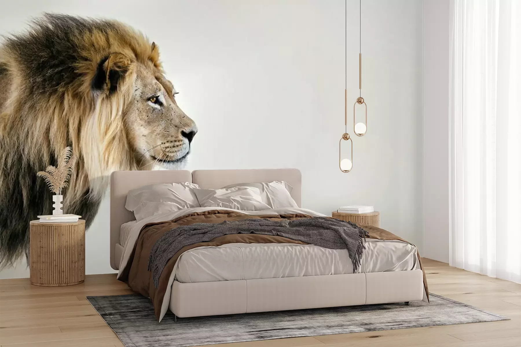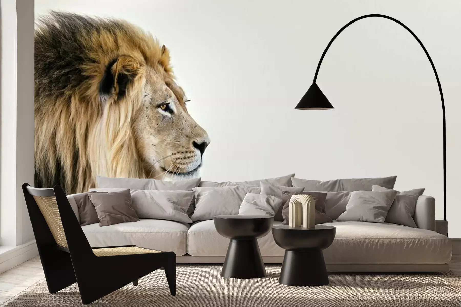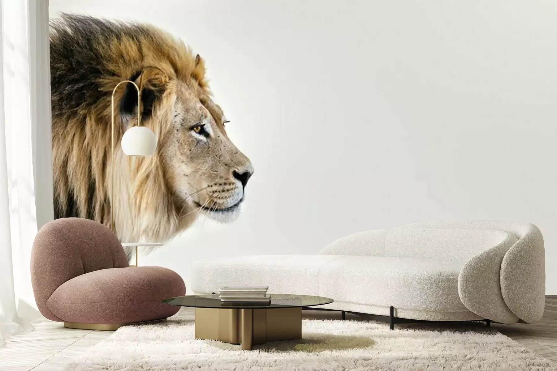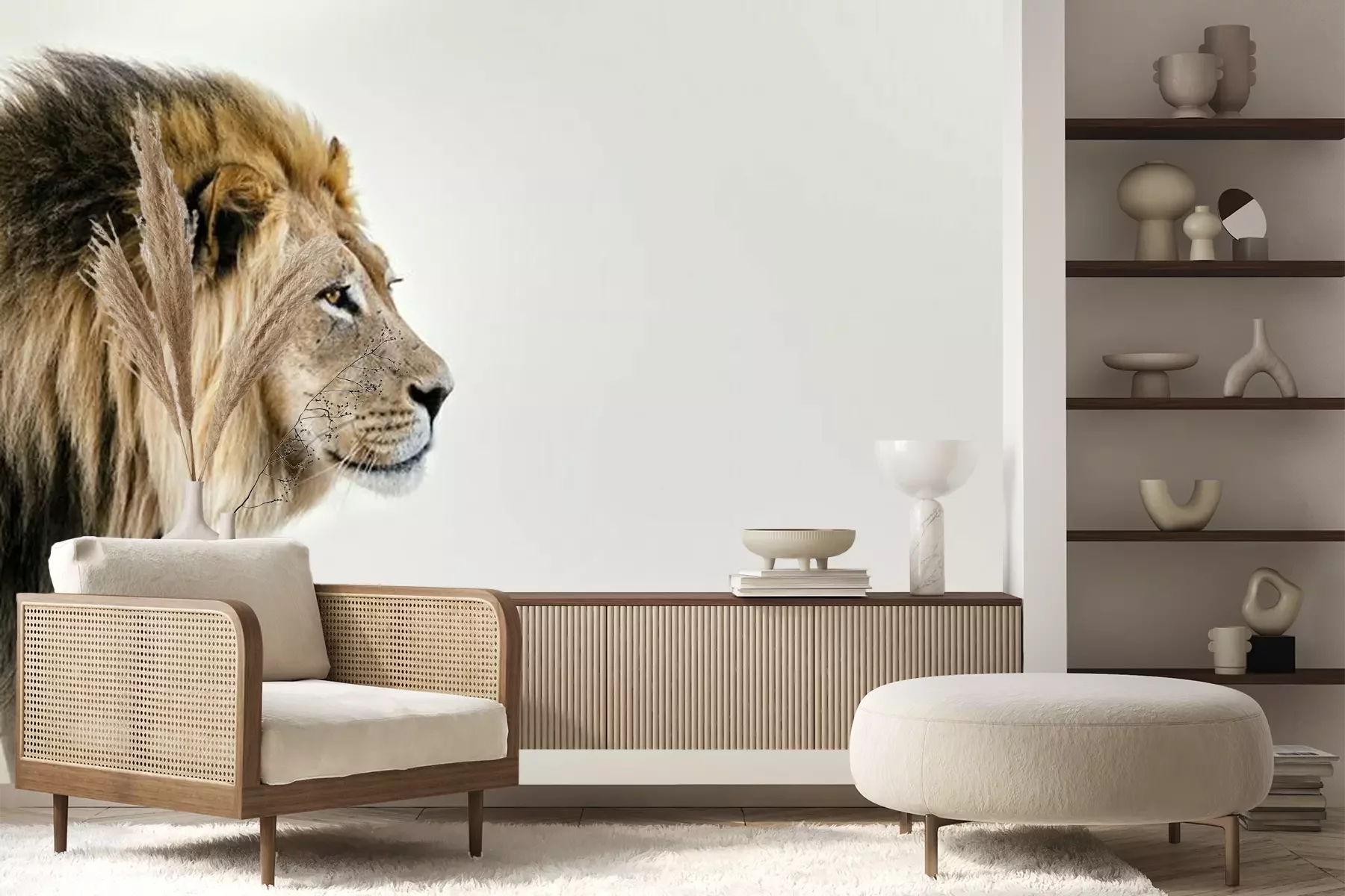 Fototapete Porträt eines Löwen auf beigem Hintergrund