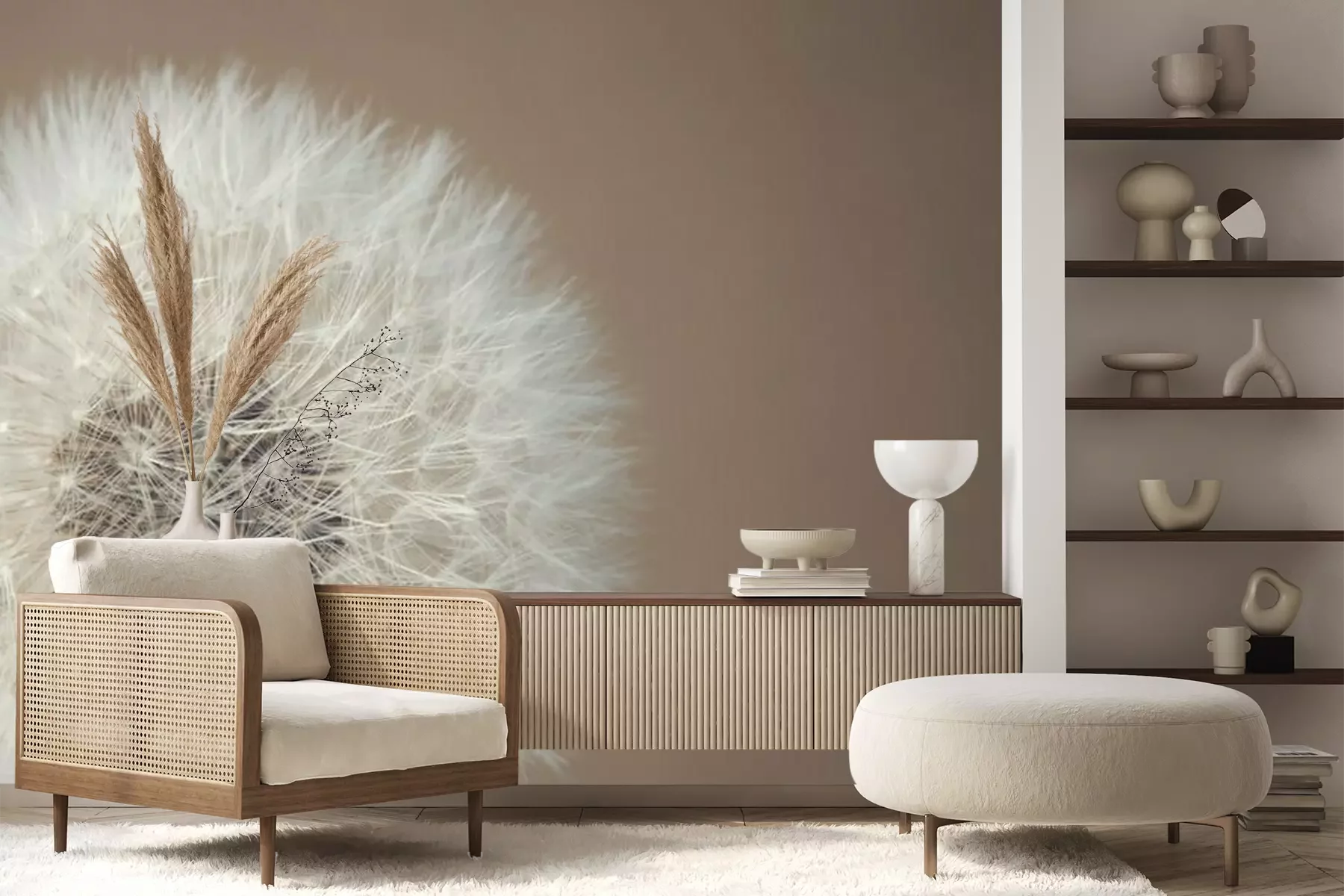 Fototapete Pusteblume auf dem Hintergrund in Beige